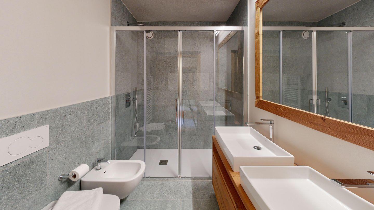 Zur Wohnanlage gehören ein Lift, eine Waschküche, ein Ski- und Veloraum sowie ein eigener Garagenparkplatz. Der Zugang zum gemeinschaftlichen Hallenbad im Haus ist inklusive – dieses bleibt lediglich im Mai und November geschlossen. Die Bushaltestelle, zahlreiche Restaurants, Einkaufsmöglichkeiten, Wanderwege und die Langlaufloipe sind in wenigen Gehminuten erreichbar.