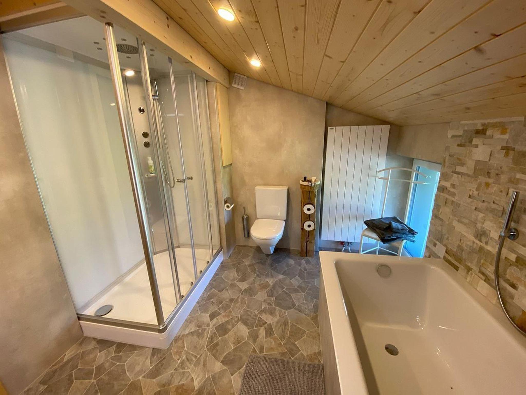 Auf der 16 M2 Terrasse, mit Ausblick ins Neckertal, können Sie den Sonnenuntergang mit der Gelassenheit der Alpakas genießen, und tagsüber das Arbeitsleben auf dem Bauernhof beobachten. Von der Küche aus erlaubt die Balkontür einen einfachen Zugang, um Ihre Mahlzeiten unter den Sternen auf einem Sitzbezug aus Alpakafell zu genießen.