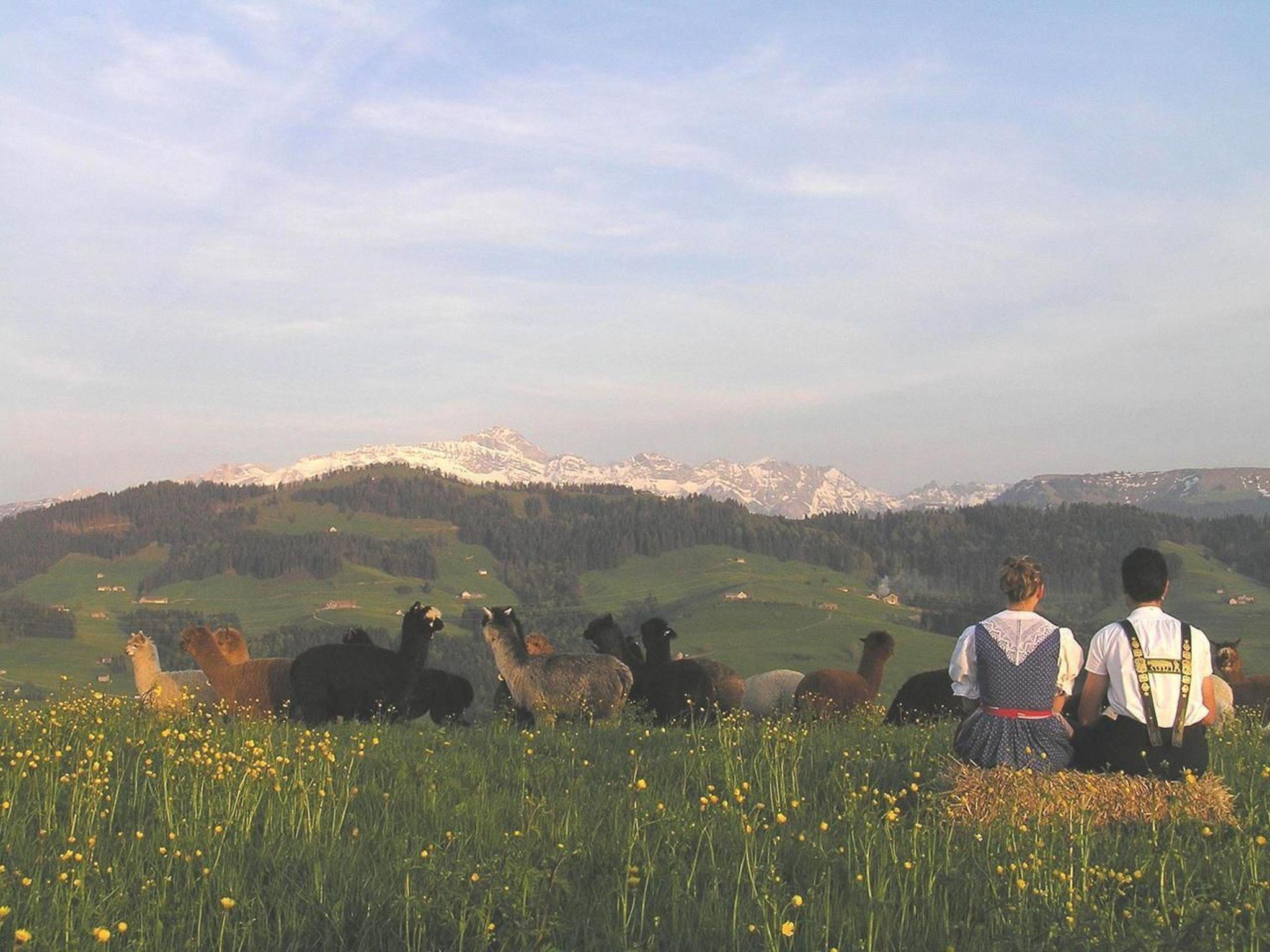 Unser traditionelles Toggenburger Haus wurde im 16. Jahrhundert erbaut und der Hof ist in der 4. Generation im Familienbesitz. Der Hauch Exotik reicht über unsere Alpakas hinaus bis zu unseren Mischkulturen aus der Schweiz, Australien und Japan. Unsere verschiedenen Herkunftsorte ermöglichen es uns, unseren internationalen Gästen unterstützende Vorschläge für lokale Ausflüge in fließendem Deutsch und Englisch, und mit Hilfe unserer Stiefmutter, auch in Japanisch zu unterbreiten.