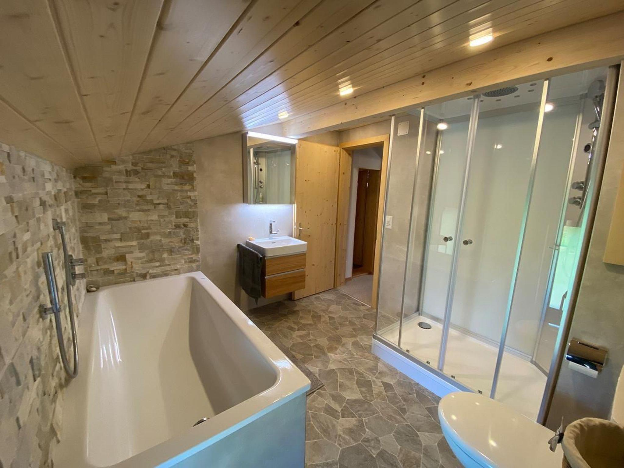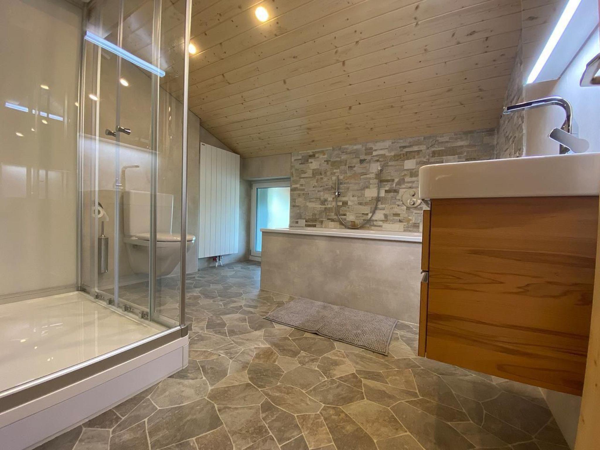 Das moderne Badezimmer ist die perfekte Oase für eine Auszeit. Die komfortable Badewanne lädt zum Entspannen ein und dank der neuartigen Rückenschräge liegen sie gemütlich wie im Liegestuhl. Die Dusche ist mit einer zusätzlichen Regendusch-Funktion ausgestattet und umhüllt den gesamten Körper mit warmen und sanften Wasserstrahlen.