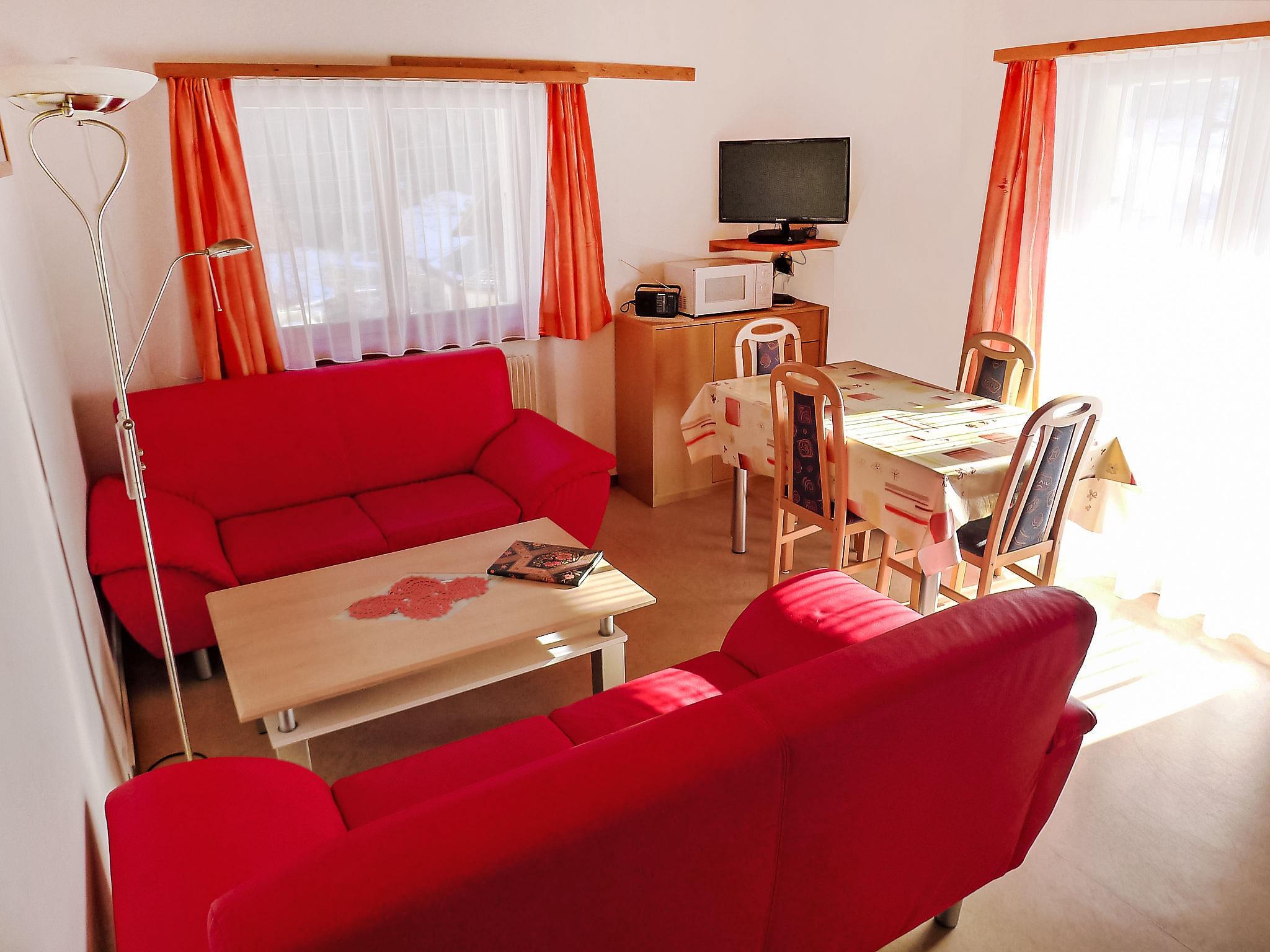 3-Zimmer-Wohnung 49 m2, im Erdgeschoss. Komfortabel und gemütlich eingerichtet: Wohn-/Esszimmer mit Sat-TV (Flachbildschirm), Radio. 1 Doppelzimmer. Ausgang zum Gartensitzplatz. 1 Zimmer mit 2 Betten. Offene Küche (Backofen, Geschirrspüler, 4 Glaskeramikplatten, Mikrowelle, Racletteofen, Fondue Set (Chinoise, Käse)). Dusche/WC. Gartensitzplatz, Südlage. Terrassenmöbel. Herrliche Sicht auf die Berge. Zur Verfügung: Internet (Wireless LAN, gratis). Parkplatz in 30 m. Bitte beachten: Nichtraucher-Unterkunft.