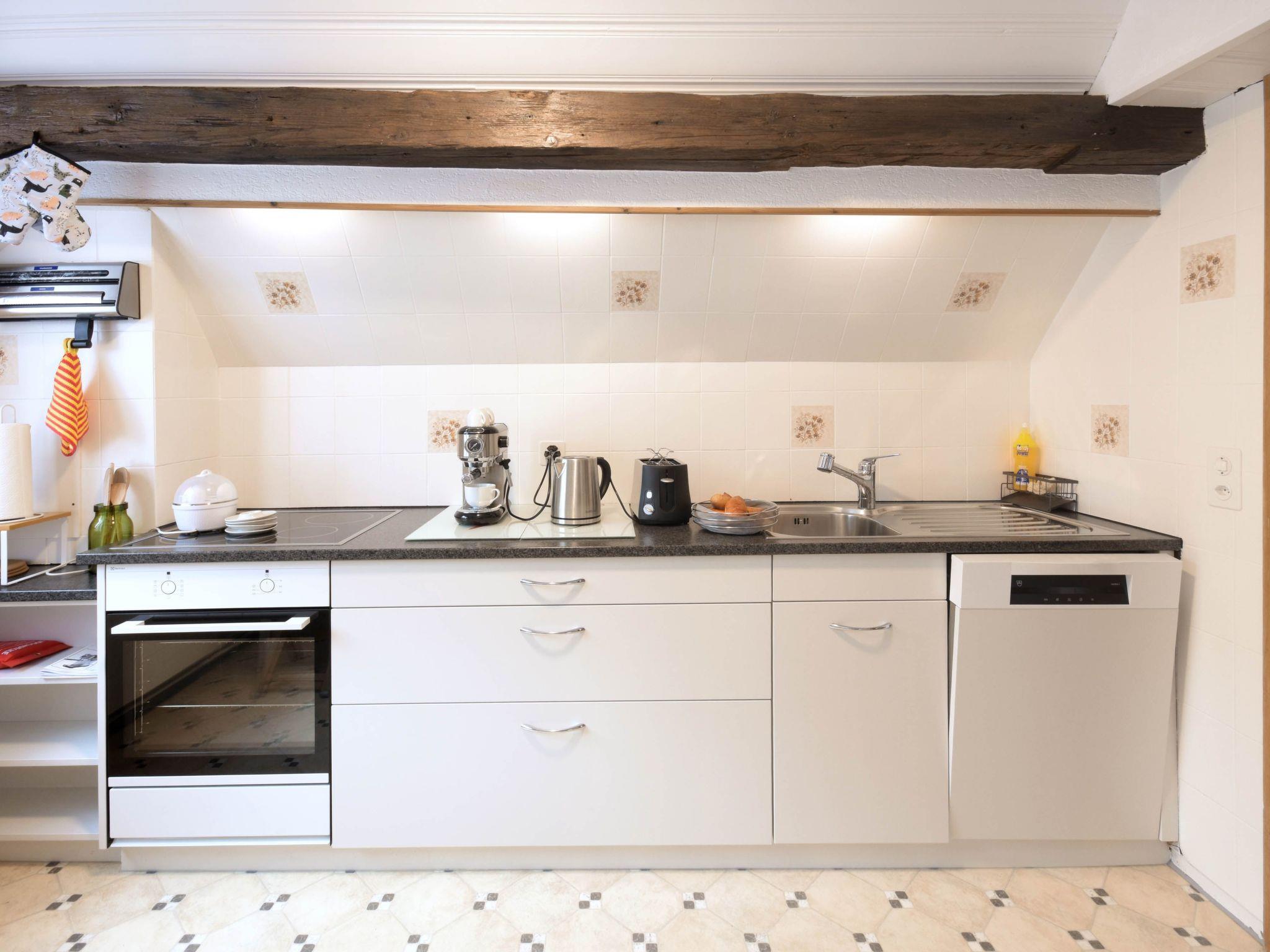 Küche mit Glaskeramikkochfeld, Backofen, Geschirrspüler und mehr, die es Ihnen ermöglicht, bequem Ihre Lieblingsgerichte zuzubereiten.