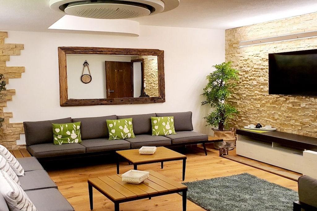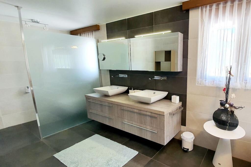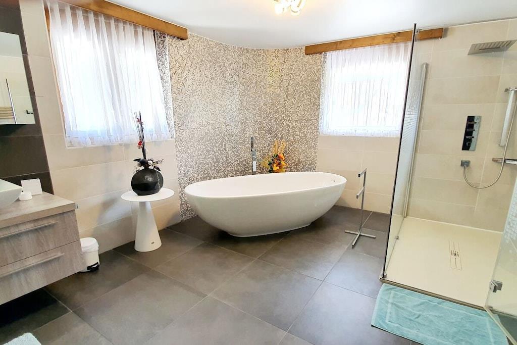 Dieses grosszügige Haus ist sehr geeignet für Gäste und Langzeitmieter, die viel Platz und Bequemlichkeit lieben... Die Villa Romantica ist einzigartig in ihrer Bauweise. Die rundbogenförmigen Fenster und Türen ziehen sich durch das ganze Haus und verleiht ein sehr wohliges und romantisches Ambiente. Umgeben von den traumhaften Walliser Bergen, und beschenkt mit den meisten Sonnentagen der Schweiz, macht das Wallis mit seinen unzählbaren Ausflugsmöglichkeiten zu einem Traumferiendomizil. Die Veranda ist für Genuss pur! Beste Lage für Ausflüge in alle Richtungen - Städte, Dörfer und Seen: Leukerbad, Grans Montana, Montreux, Öschinensee, Thun, Bern, Interlaken, Jungrau, Blausee, Saas-Fee, Zermatt (Matterhorn), Domodossola (Italien), etc.