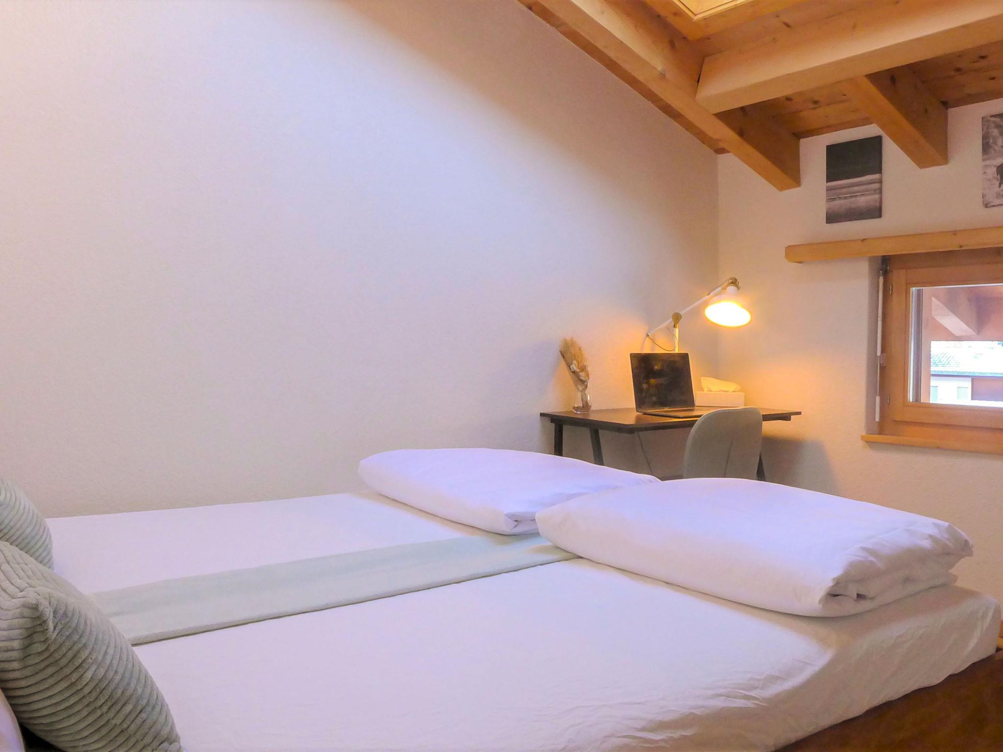 "Arbgrat", 3-Zimmer-Wohnung 90 m2 im 2. Stock, Südlage. Geräumig und hell, schön und geschmackvoll eingerichtet: Wohn-/Schlafzimmer mit 1 Doppeldiwanbett (140 cm, Länge 200 cm), Schwedenofen, Esstisch und TV. Ausgang zum Balkon, Richtung Süden. 1 Doppelzimmer mit 1 Doppelbett (2 x 90 cm, Länge 200 cm). Ausgang zum Balkon, Richtung Norden. 1 Doppelzimmer mit 1 Doppelbett (2 x 90 cm, Länge 200 cm). Offene Küche (Backofen, Geschirrspüler, 4 Glaskeramikplatten, Toaster, Wasserkocher, elektrische Kaffeemaschine, Racletteofen, Fondue Set (Käse)) mit Bar. Bad/WC, Dusche/WC. Balkon, Südlage. Balkonmöbel. Sicht auf die Berge. Zur Verfügung: Internet (Wireless LAN, gratis). Bitte beachten: Nichtraucher-Unterkunft.