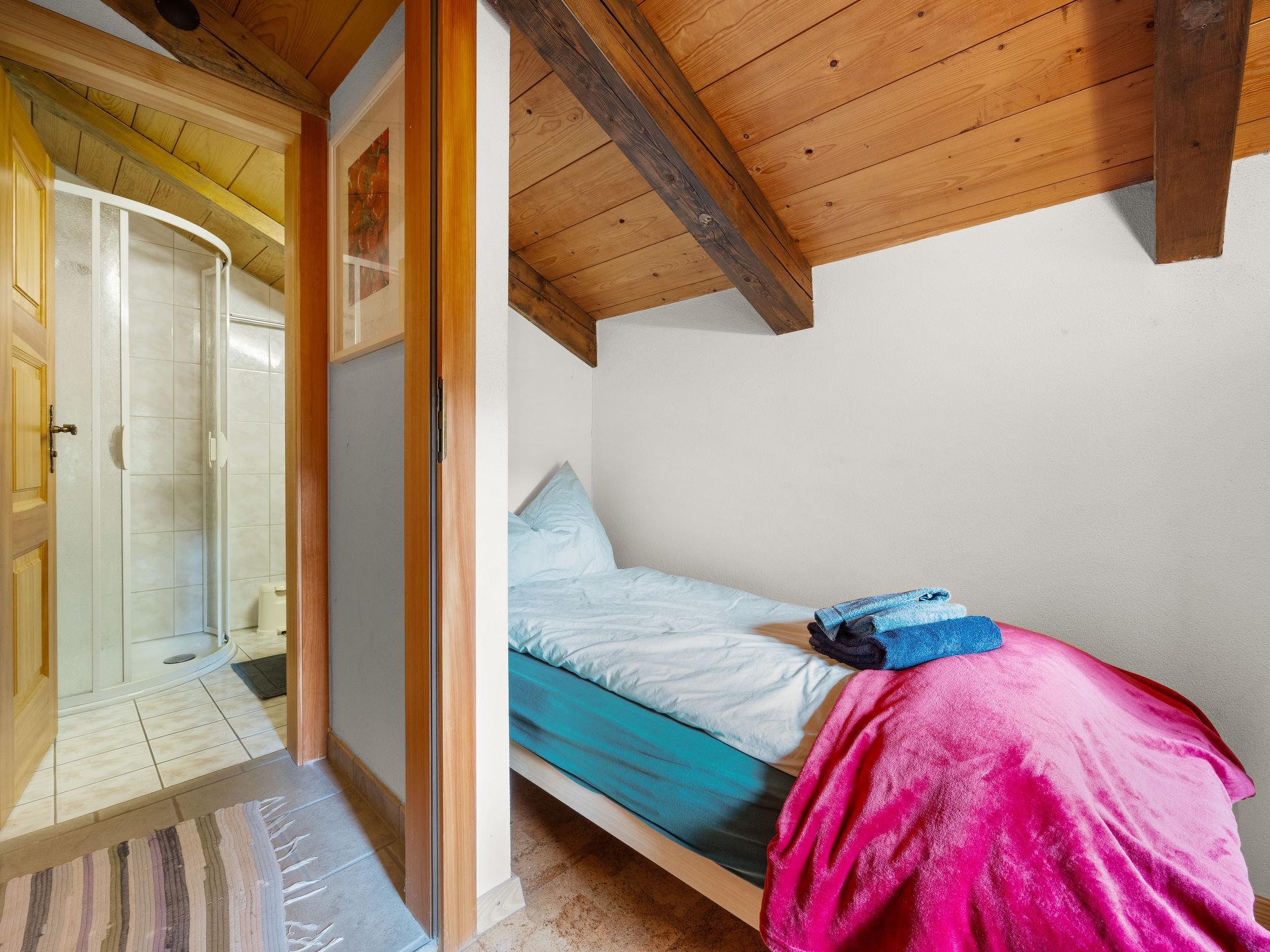 "Lätthaus Rot", 3-Zimmer-Haus 75 m2 auf 2 Stockwerken. Einfach und komfortabel eingerichtet: Wohn-/Esszimmer mit Schwedenofen, Esstisch, Digital-TV, E-Heizung und Boiler. Ausgang zum Garten, zur Terrasse. Offene Küche (Backofen, Geschirrspüler, 4 Glaskeramikplatten, Toaster, Wasserkocher, elektrische Kaffeemaschine, Racletteofen, Fondue Set (Käse)). Sep. WC. E-Heizung. Obergeschoss: (Wendeltreppe) 1 Doppelzimmer mit 1 Doppelbett (180 cm, Länge 200 cm). 1 Zimmer mit 1 Bett (90 cm, Länge 200 cm). Dusche/WC. Natursteinboden. Terrassenmöbel, Gartengrill, Liegestühle. Sicht auf die Landschaft. Zur Verfügung: Waschmaschine. Internet (Wireless LAN, gratis). Parkplatz beim Haus, im Winter in 100 m. Bitte beachten: Nichtraucher-Haus.