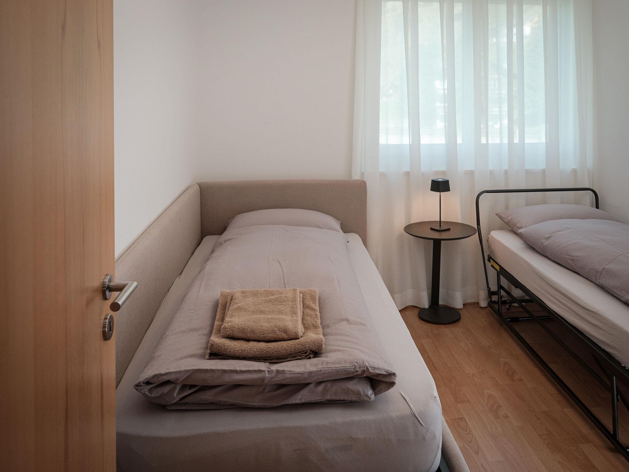 "Da Vinci", 4-Zimmer-Wohnung 93 m2, Südlage. Geräumig, schön und stilvoll eingerichtet: Wohnzimmer mit TV. Ausgang zum Balkon, Richtung Süden. 1 Zimmer mit 1 Doppelbett (1 x 160 cm, Länge 200 cm). Ausgang zum Balkon, Richtung Westen. 1 Zimmer mit 2 Betten (90 cm, Länge 200 cm). 1 Zimmer mit 2 Betten (90 cm, Länge 200 cm). Offene Küche (Backofen, Geschirrspüler, 4 Glaskeramikplatten, Mikrowelle, Tiefkühler, elektrische Kaffeemaschine). Bad/WC, Dusche/WC. Heizung. Südlage, Westlage. Balkonmöbel. Seitliche Sicht auf die Berge. Zur Verfügung: Internet (Wireless LAN, gratis). Garage. Geeignet für Familien. Bei Belegung mit weniger Personen als der maximalen Personenzahl stehen nicht alle Schlafzimmer zur Verfügung.