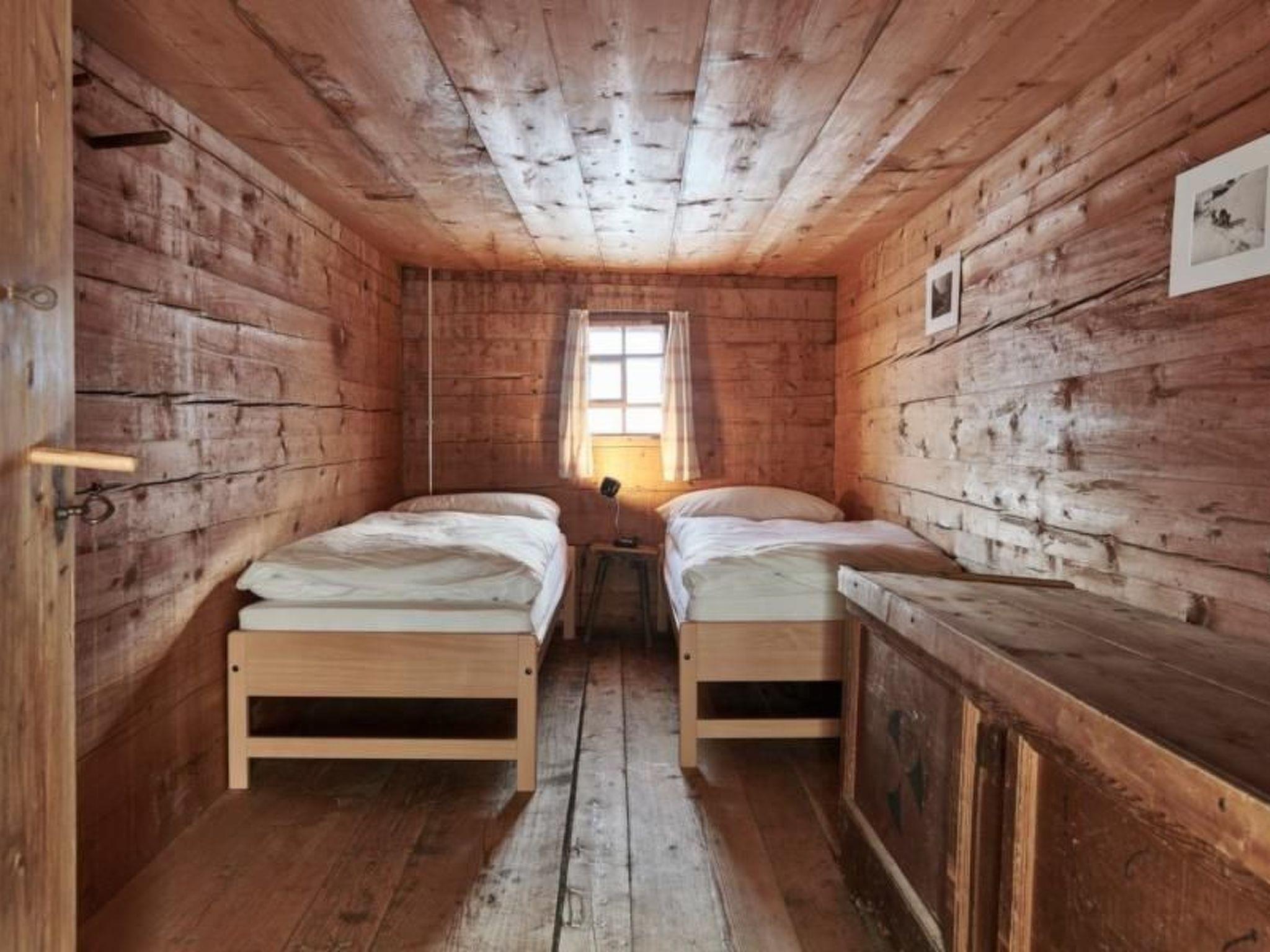 Anzahl Personen 10: Es ist ein Babybett (bis 2 Jahre) vorhanden. Das Haus bietet Platz für zehn Gäste (plus Baby). Es stehen drei Doppelzimmer, ein Dreierzimmer und ein Einzelzimmer zur Verfügung. Das Haus steht an leichter Hanglage. Der Eingang liegt im Hochparterre. Dort findet sich eine Wohnküche und die Stube mit angrenzendem Einzelzimmer. Im 2. Stockwerk finden sich die drei Doppelzimmer und das Dreierzimmer. Die Böden bestehen aus Holz und Stein, weshalb wir gute Hausschuhe empfehlen.
