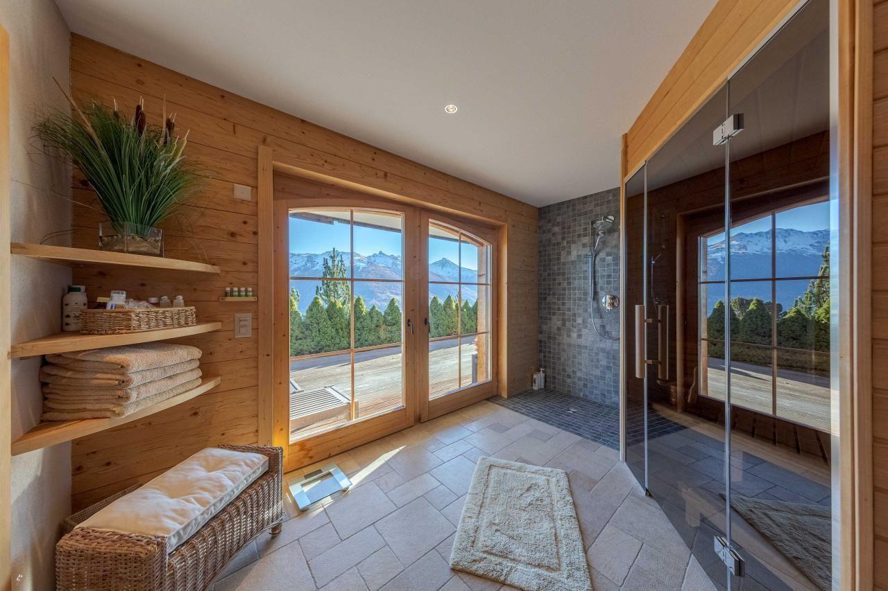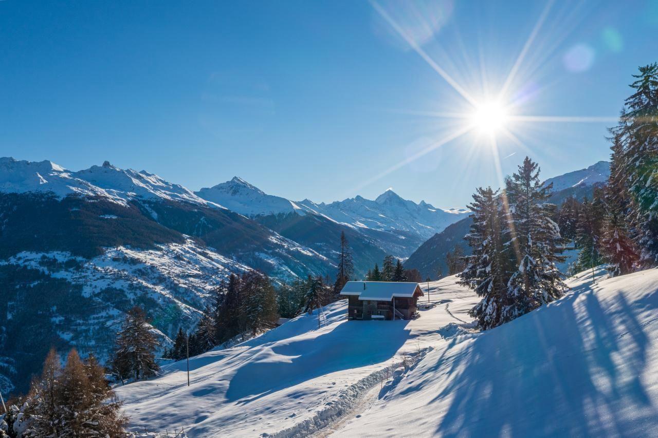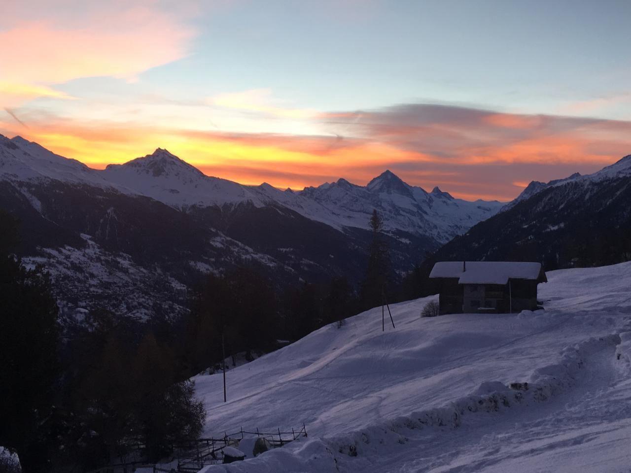 Es wurde in einer ruhigen Umgebung gebaut und schmiegt sich an den Berg mit einem Wald auf der Rückseite und einem atemberaubenden Panoramablick über das Val d'Hérens und das Rhonetal bis hin zu den Berner Alpen auf der Vorderseite. Beobachten Sie, wie die Sonne oder der Mond hinter den Bergen aufgeht oder untergeht und dabei vier 4000er-Gipfel, darunter das Matterhorn und die Dent Blanche, beleuchtet.
