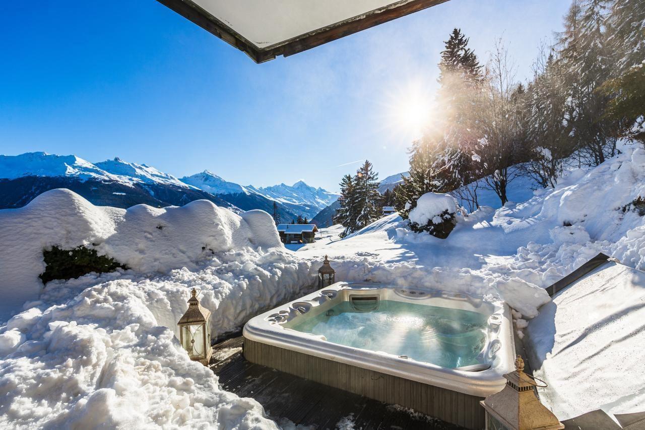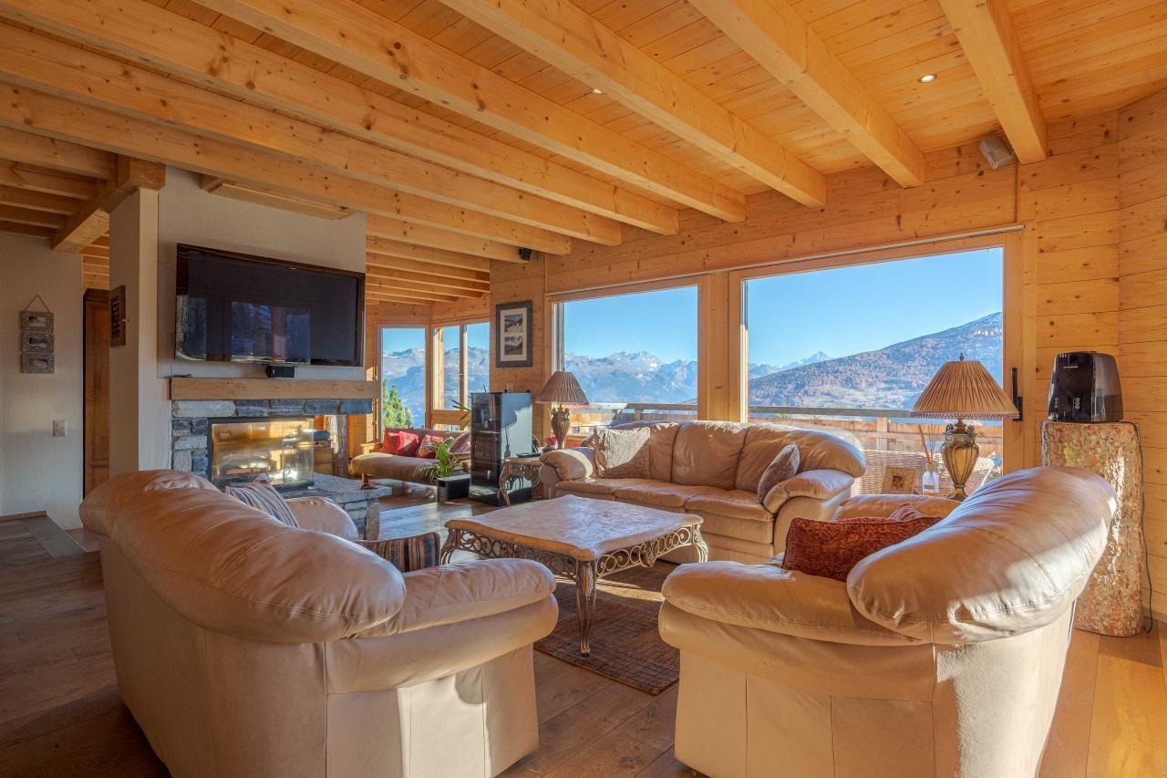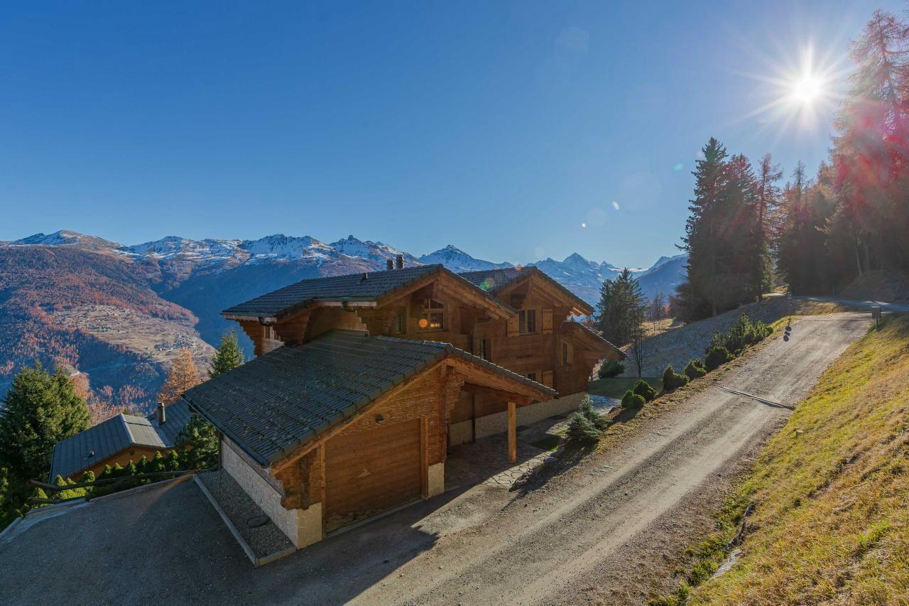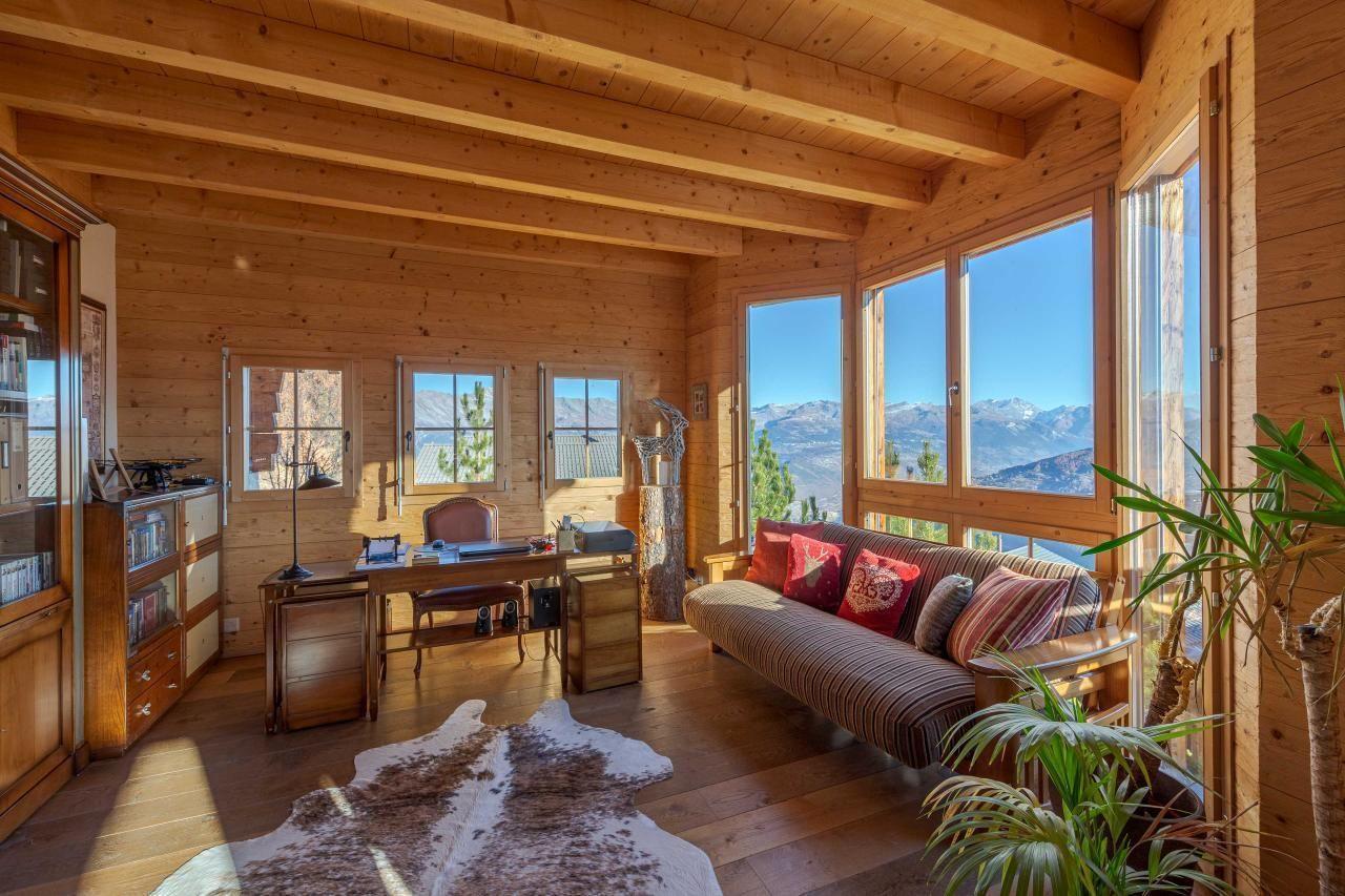 Es wurde in einer ruhigen Umgebung gebaut und schmiegt sich an den Berg mit einem Wald auf der Rückseite und einem atemberaubenden Panoramablick über das Val d'Hérens und das Rhonetal bis hin zu den Berner Alpen auf der Vorderseite. Beobachten Sie, wie die Sonne oder der Mond hinter den Bergen aufgeht oder untergeht und dabei vier 4000er-Gipfel, darunter das Matterhorn und die Dent Blanche, beleuchtet.