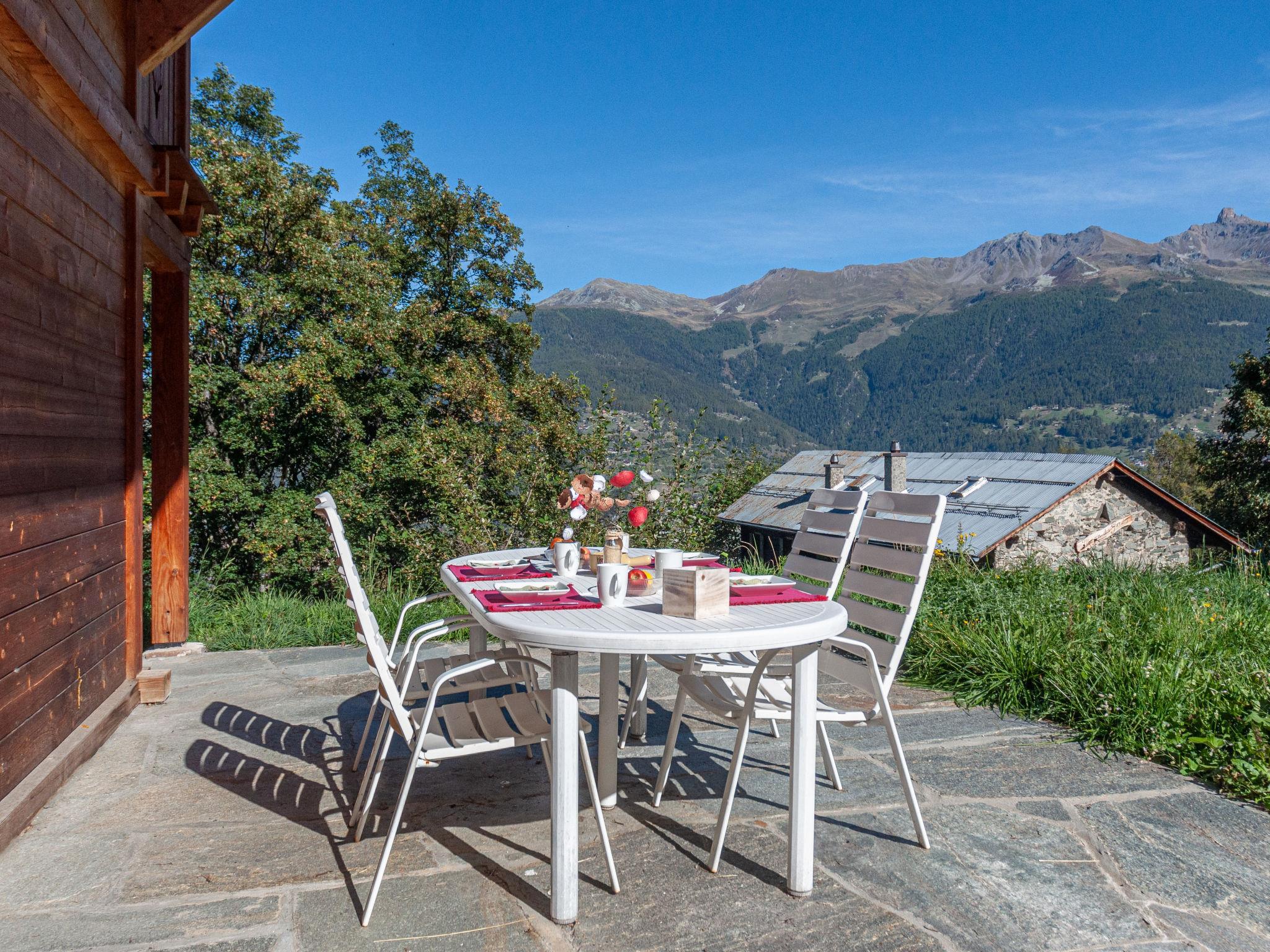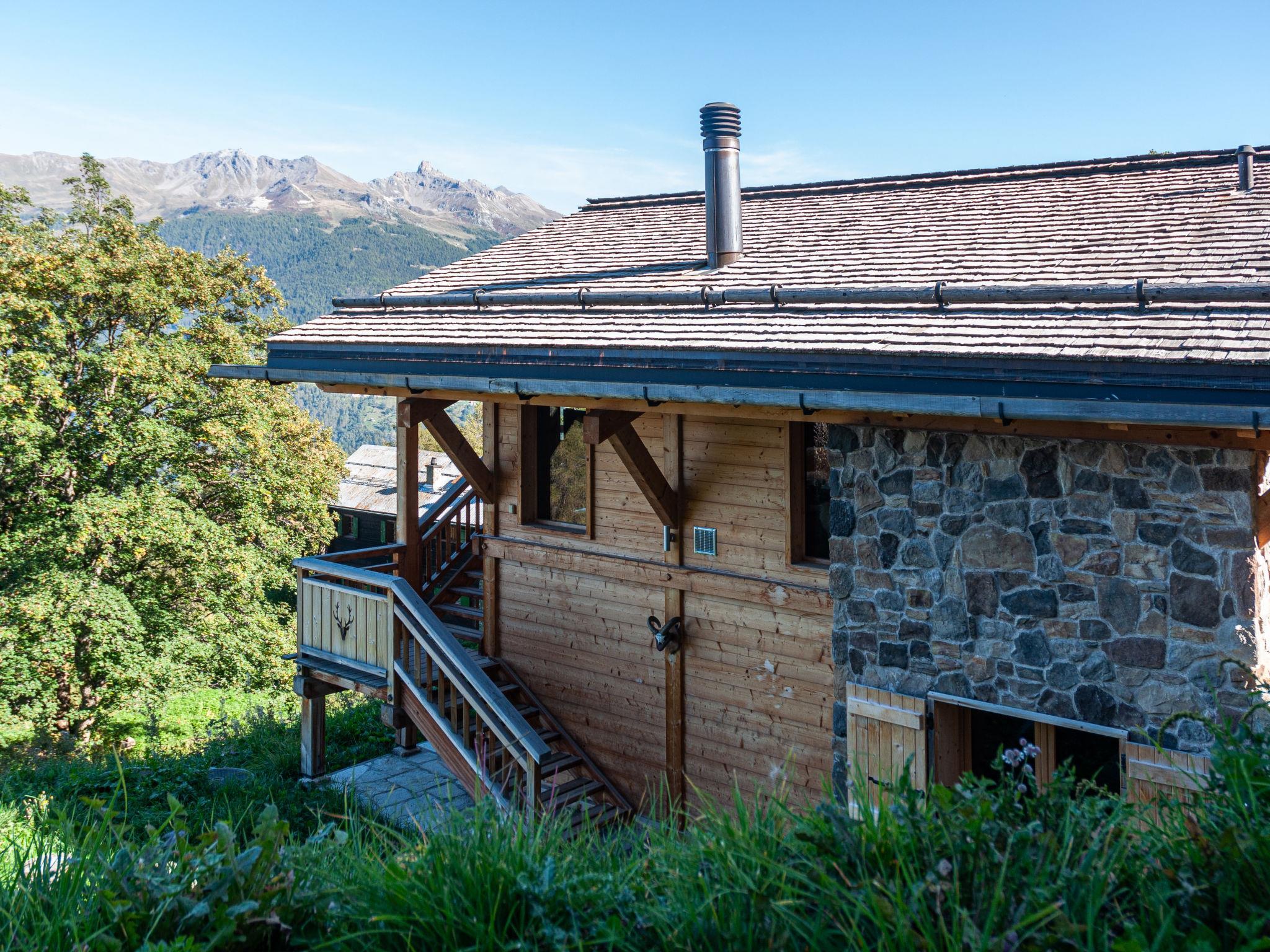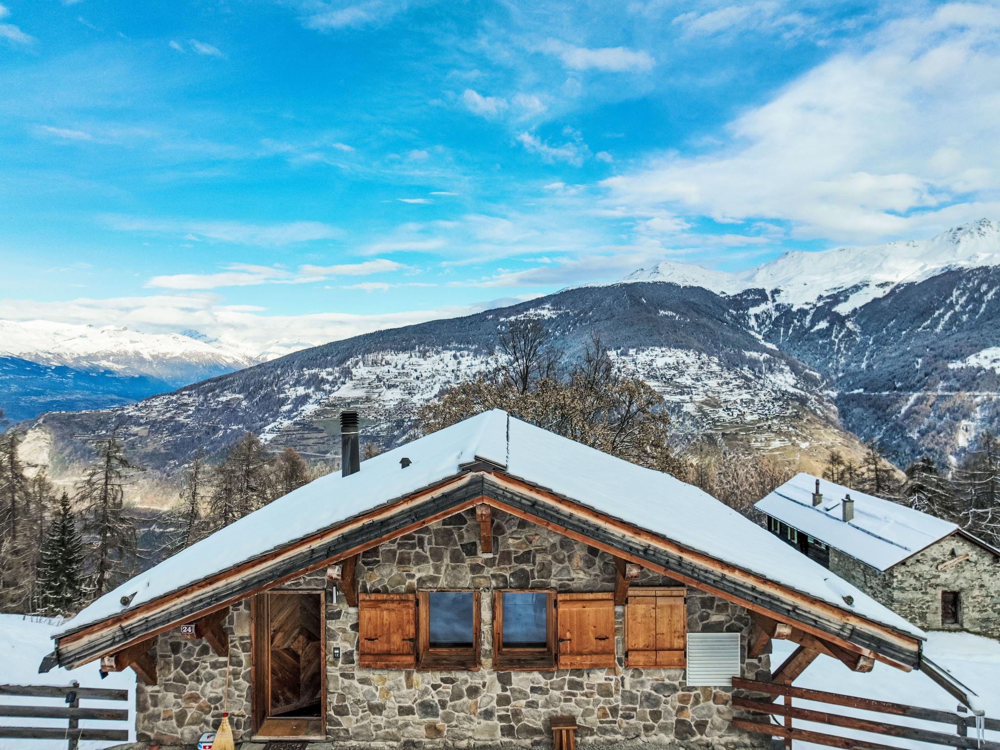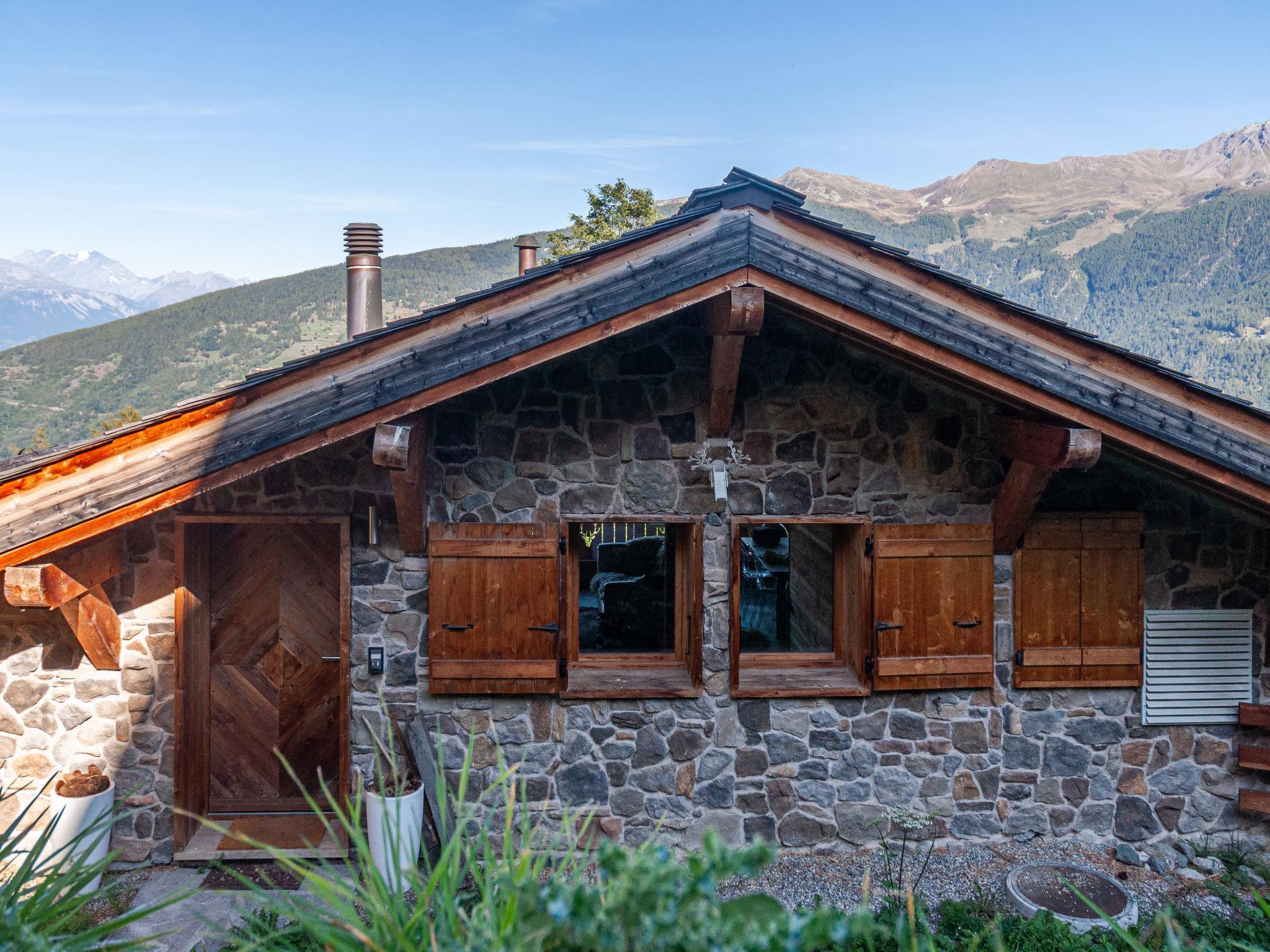 Sehr komfortables Chalet "Skyfall", auf 2 Stockwerken, umgeben von Wiesen. 3.6 km vom Zentrum von des Collons, 5.6 km vom Zentrum von Veysonnaz, 18 km vom Zentrum von Sion, ruhige Lage, im Grünen. Zur Alleinbenutzung: naturbelassenes Grundstück. Terrasse, Gartenmöbel. Im Hause: Waschmaschine, Wäschetrockner. 100 m lange steile Zufahrt. Im Winter bitte Schneeketten mitbringen. Treppenweg (5 Stufen) bis zum Haus. Parkplatz (für 2 Autos) beim Haus, im Winter 100 m. Lebensmittelgeschäft 3.6 km, Restaurant 3.6 km, Bäckerei 5.6 km, Bushaltestelle "Les Masses, Ferme pédagogique" 700 m, Bahnstation "Sion" 18 km. Sessellift 1.5 km. Bekannte Skigebiete sind gut erreichbar: 4 Vallées Télésiège Trabanta-Les Collons 3.6 km, 4 Vallées Télésiège des Masses 1.5 km, 4 Vallées Télécabine Veysonnaz 5.6 km. Bitte beachten: Fahrzeug empfohlen. Der Besitzer akzeptiert keine Jugendgruppen.