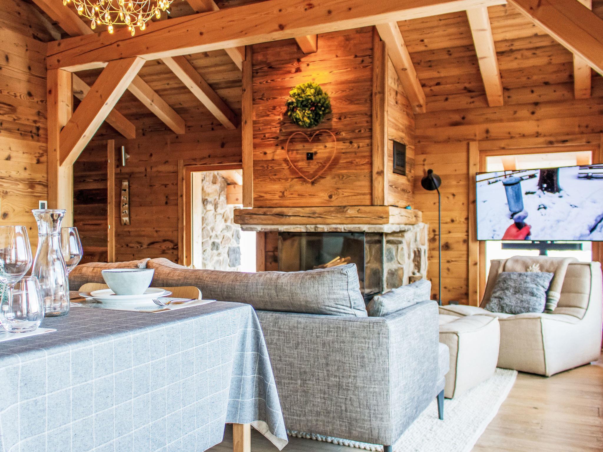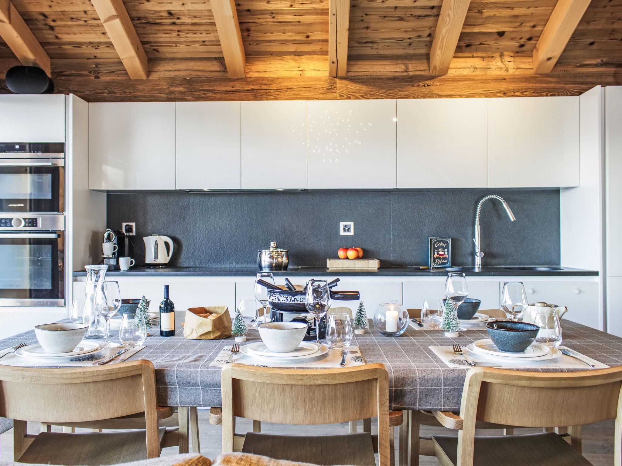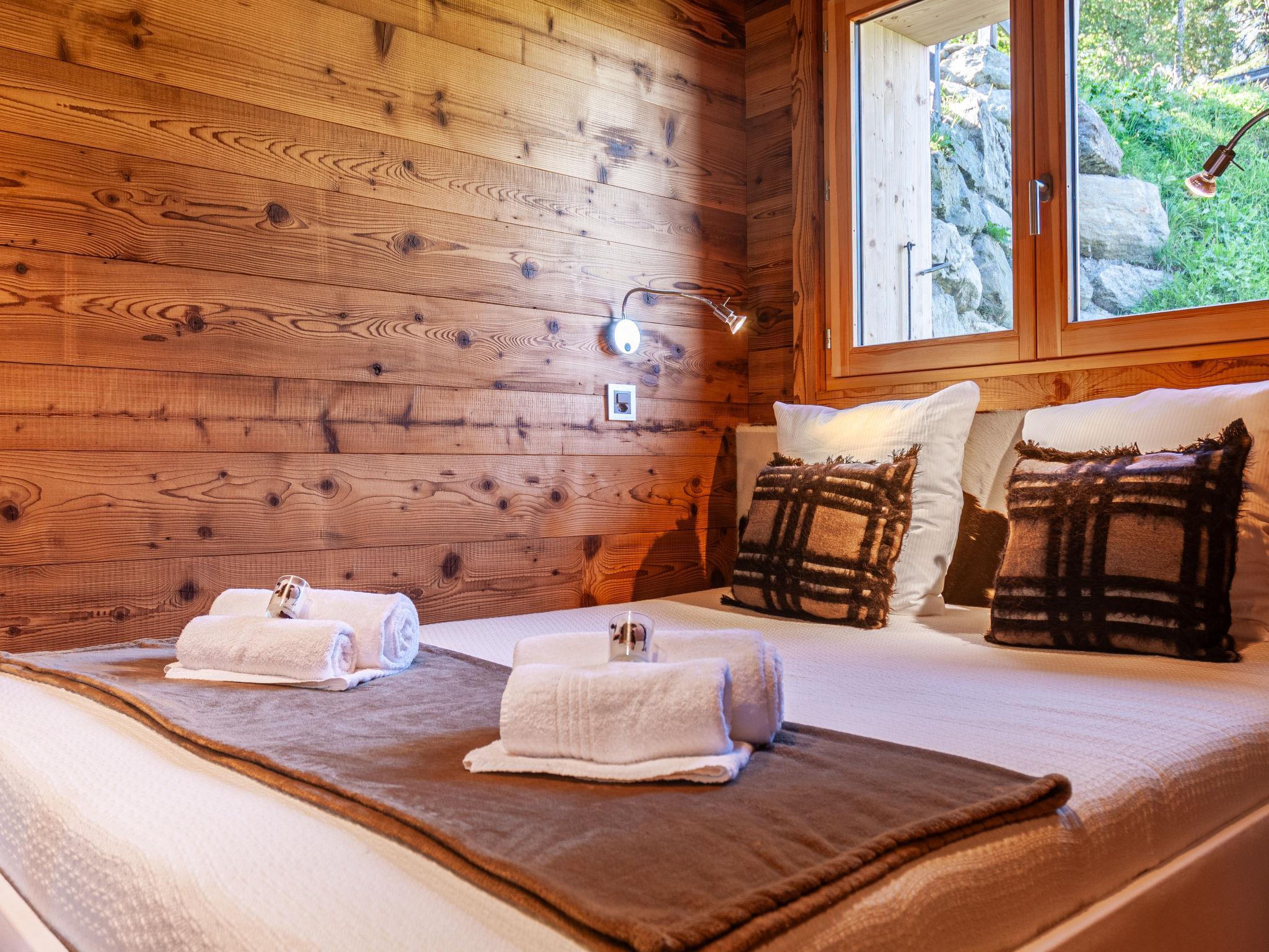 "Skyfall", 4-Zimmer-Chalet 120 m2 auf 2 Stockwerken. Sehr komfortabel und schön eingerichtet: Wohn-/Esszimmer mit offenem Kamin und Kabel-TV. Ausgang zum Balkon. Offene Küche (Backofen, Geschirrspüler, 4 Induktionskochplatten, Toaster, Wasserkocher, Tiefkühler, elektrische Kaffeemaschine, Kapseln für die Kaffeemaschine (Nespresso) extra, Racletteofen, Kombinationsmikrowelle, Fondue Set (Käse)). Sep. WC. Unteres Geschoss: 2 Zimmer, jedes Zimmer mit 1 franz. Bett (180 cm, Länge 200 cm). 1 Zimmer mit 1 franz. Bett (160 cm, Länge 200 cm). Bad/Dusche, sep. WC. Fussbodenheizung. Grosser Balkon, Ostlage, grosse Terrasse, Südlage. Terrassenmöbel. Schöne Sicht auf die Berge und die Landschaft. Zur Verfügung: Waschmaschine, Wäschetrockner, Kinderhochstuhl, Babybett bis 2 Jahre. Internet (WLAN). Parkplatz (1 Auto) beim Haus, im Winter in 100 m. Bitte beachten: Nichtraucher-Unterkunft.