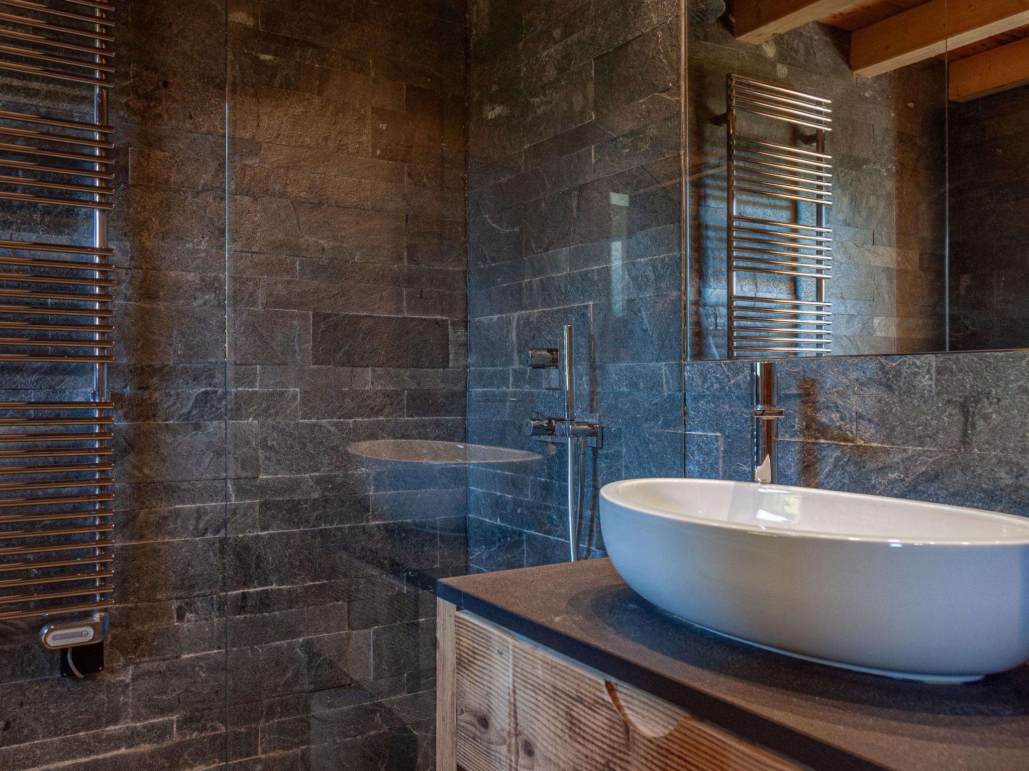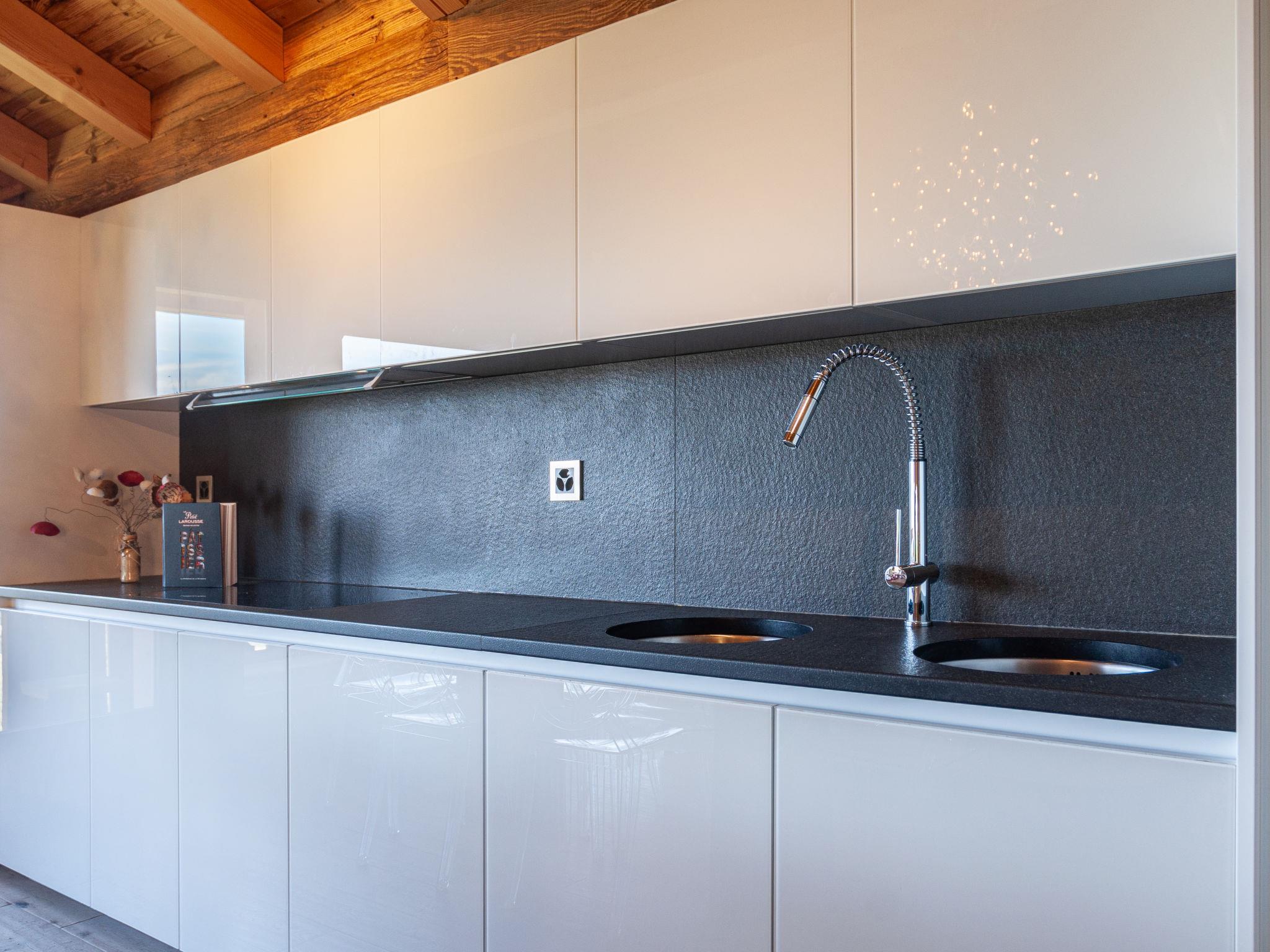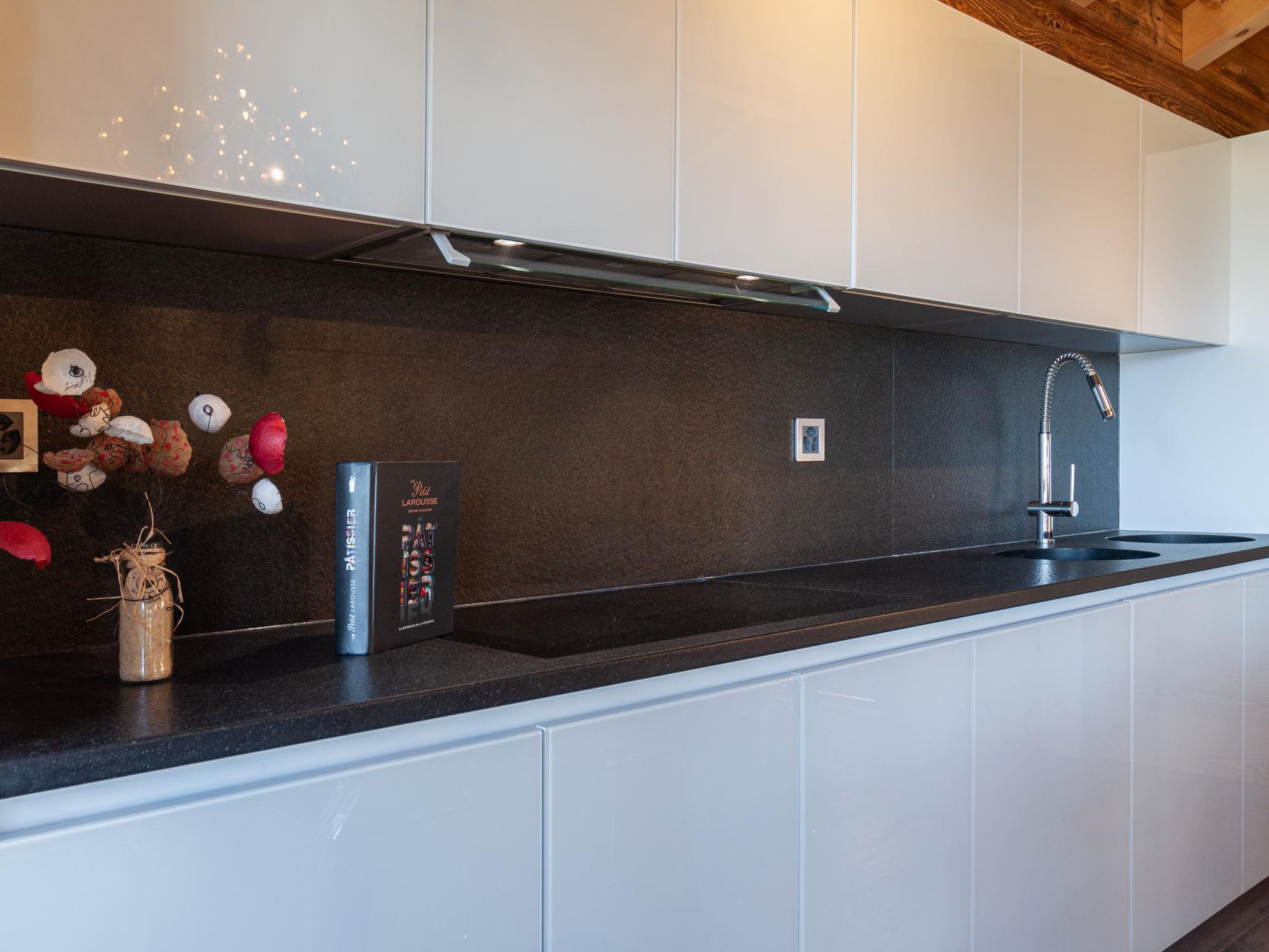 "Skyfall", 4-Zimmer-Chalet 120 m2 auf 2 Stockwerken. Sehr komfortabel und schön eingerichtet: Wohn-/Esszimmer mit offenem Kamin und Kabel-TV. Ausgang zum Balkon. Offene Küche (Backofen, Geschirrspüler, 4 Induktionskochplatten, Toaster, Wasserkocher, Tiefkühler, elektrische Kaffeemaschine, Kapseln für die Kaffeemaschine (Nespresso) extra, Racletteofen, Kombinationsmikrowelle, Fondue Set (Käse)). Sep. WC. Unteres Geschoss: 2 Zimmer, jedes Zimmer mit 1 franz. Bett (180 cm, Länge 200 cm). 1 Zimmer mit 1 franz. Bett (160 cm, Länge 200 cm). Bad/Dusche, sep. WC. Fussbodenheizung. Grosser Balkon, Ostlage, grosse Terrasse, Südlage. Terrassenmöbel. Schöne Sicht auf die Berge und die Landschaft. Zur Verfügung: Waschmaschine, Wäschetrockner, Kinderhochstuhl, Babybett bis 2 Jahre. Internet (WLAN). Parkplatz (1 Auto) beim Haus, im Winter in 100 m. Bitte beachten: Nichtraucher-Unterkunft.