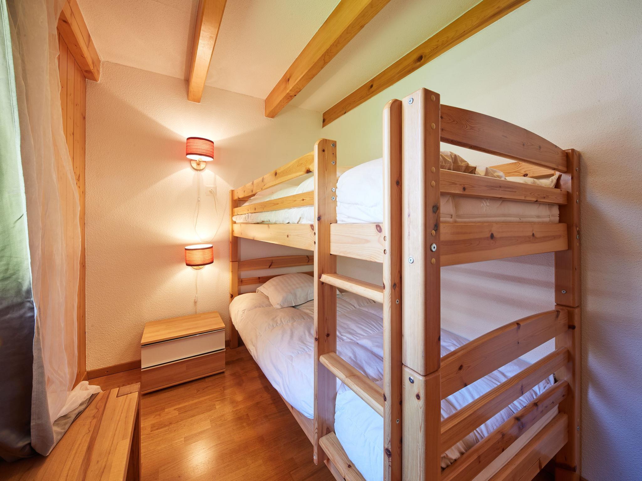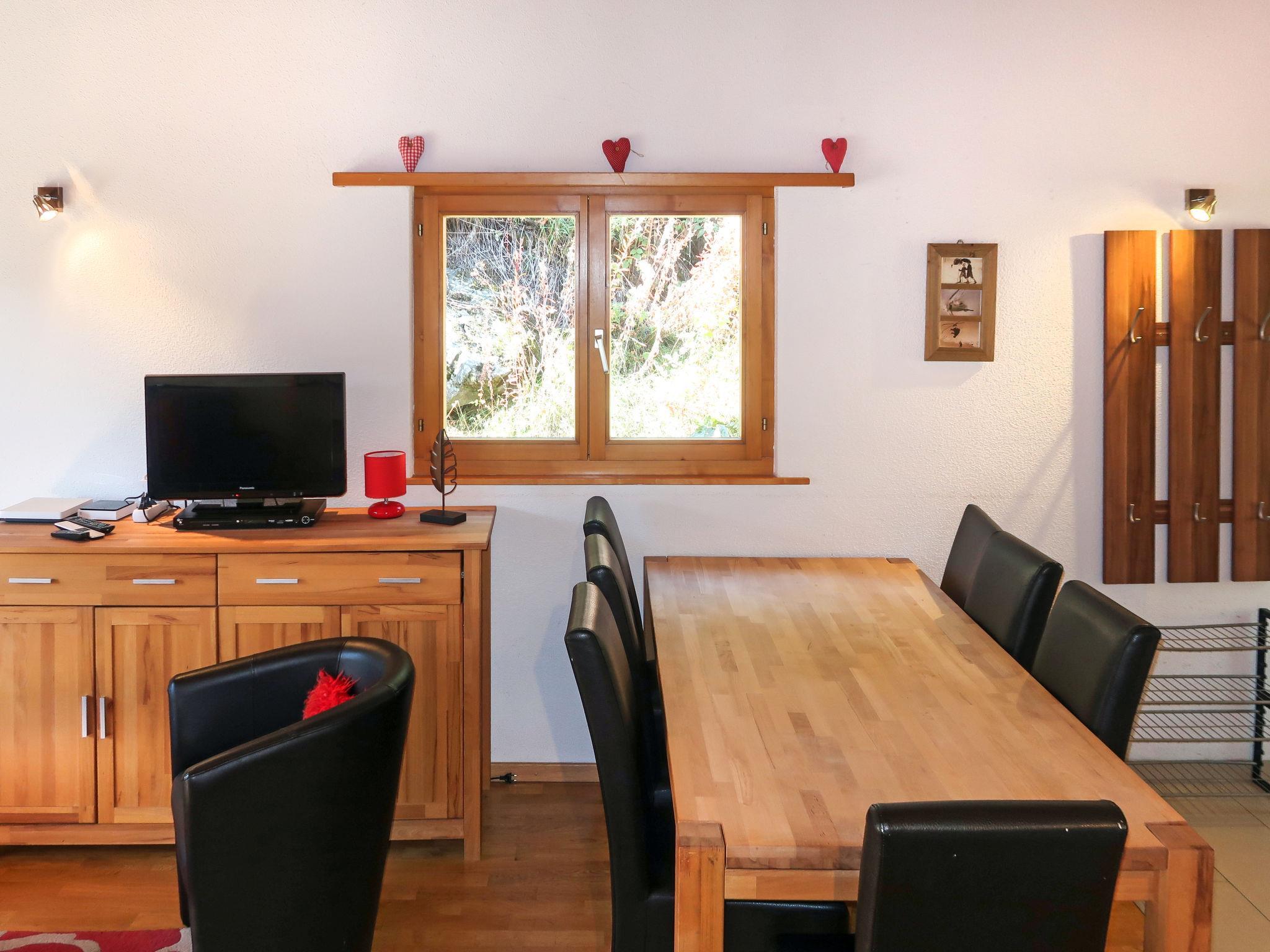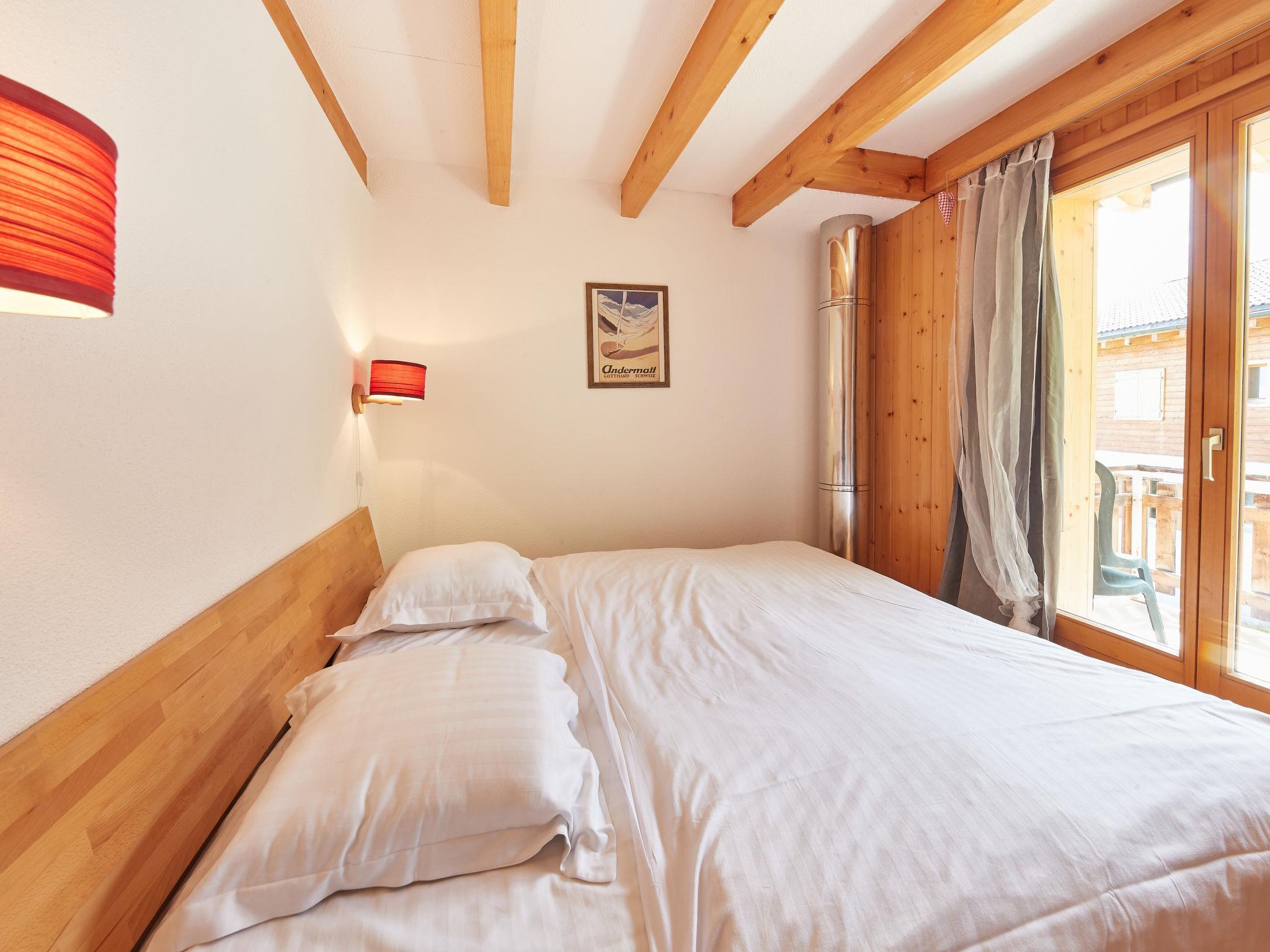 "Grives", 3-Zimmer-Wohnung 64 m2 auf 2 Stockwerken. Zweckmässig und komfortabel eingerichtet: Wohn-/Esszimmer mit Schwedenofen und TV. Ausgang zum Balkon. 1 Zimmer mit 1 franz. Bett. Ausgang zum Balkon. 1 Kinderzimmer mit 1 x 2 Etagenbetten. Offene Küche (Backofen, Geschirrspüler, 4 Glaskeramikplatten, Mikrowelle, elektrische Kaffeemaschine). Bad/WC. Dachgeschoss: (Leiter) abgeschrägte, offene Galerie mit 2 Doppelbetten. Dusche/WC. Balkon. Panoramasicht. Zur Verfügung: Internet (Wireless LAN). Bitte beachten: Nichtraucher-Unterkunft. Maximal 1 Haustier/Hund erlaubt. Anstelle eines abgeschlossenen Schlafzimmers befinden sich manche Schlafplätze in einem offenen Bereich (Galerie, Nische etc.).