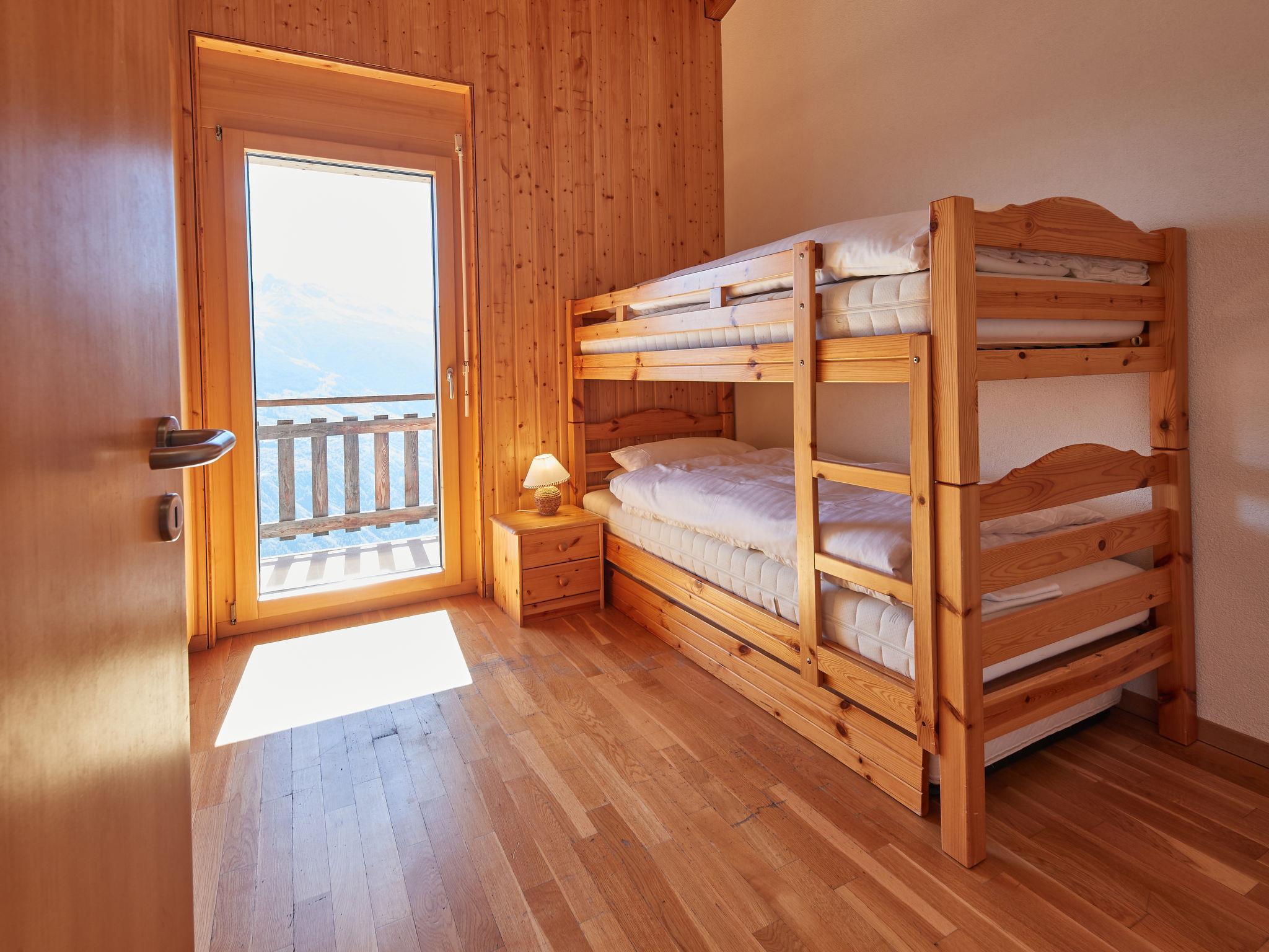 "Les Cîmes 8", 5-Zimmer-Wohnung 110 m2 auf 2 Stockwerken im 6. Stock. Komfortabel und geschmackvoll eingerichtet: Wohn-/Schlafzimmer, auf 2 Ebenen mit 1 Doppeldiwanbett und Esstisch. Ausgang zum Balkon. 1 Zimmer mit 1 franz. Bett (140 cm, Länge 200 cm). Ausgang zum Balkon. 1 Zimmer mit 1 x 2 Etagenbetten (90 cm, Länge 200 cm). Ausgang zum Balkon. 1 Zimmer mit 1 Doppelbett (180 cm, Länge 200 cm). Ausgang zum Balkon. 1 abgeschrägtes Zimmer mit 2 Betten. Galerie mit TV. Offene Küche (Backofen, Geschirrspüler, 4 Glaskeramikplatten, Mikrowelle, elektrische Kaffeemaschine, Fondue Set (Käse)). Bad/WC, 2 Duschen/WC, Whirlbadewanne. Parkettboden. Balkon 50 m2. Panoramasicht. Zur Verfügung: Internet (Wireless LAN, gratis). Bitte beachten: Nichtraucher-Unterkunft. Maximal 1 Haustier/Hund erlaubt. Anstelle eines abgeschlossenen Schlafzimmers befinden sich manche Schlafplätze in einem offenen Bereich (Galerie, Nische etc.).
