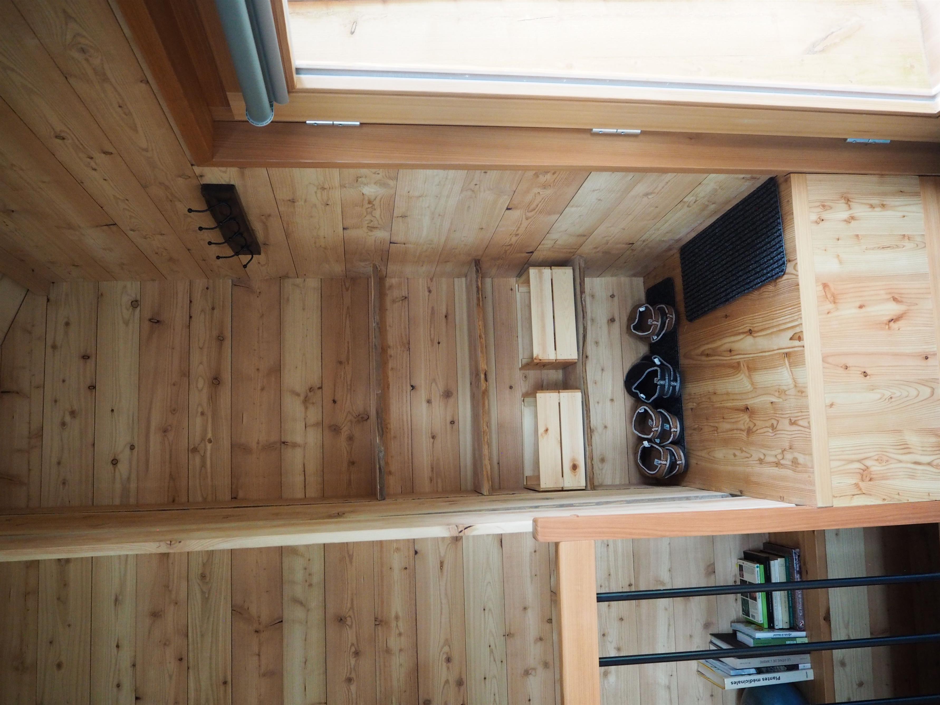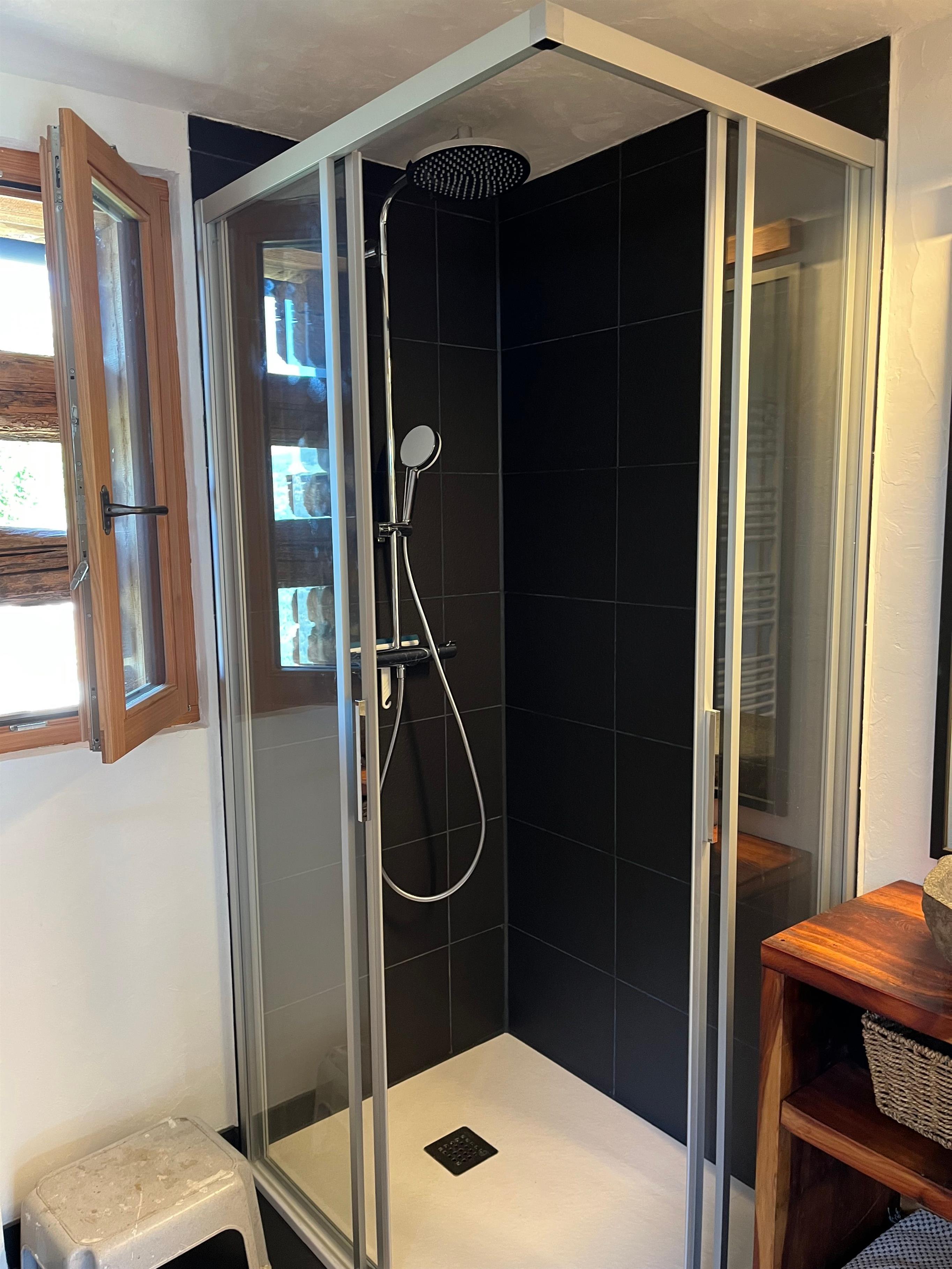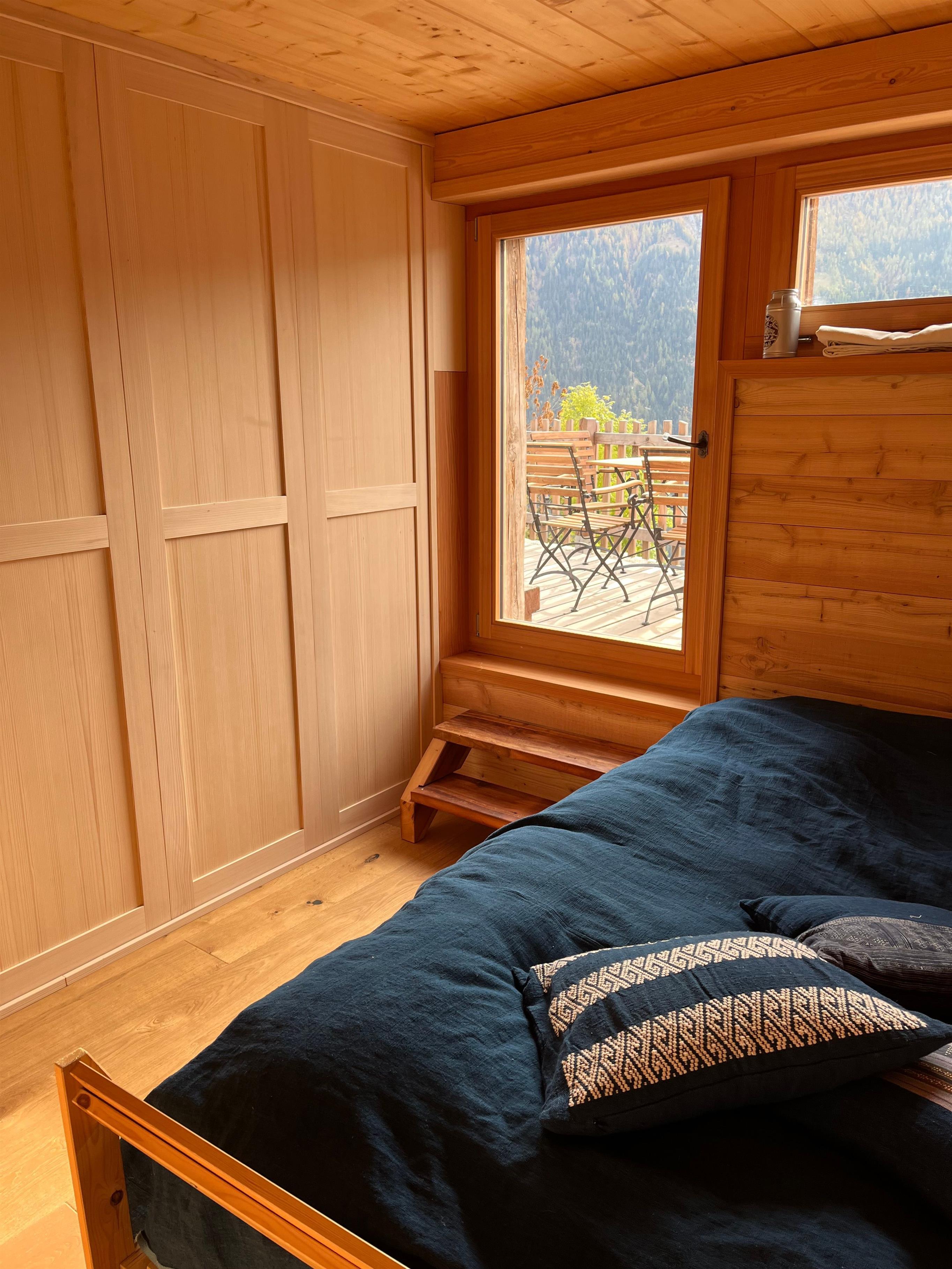Der Stallbereich für die Kühe wird für die Schlafbereiche umgebaut. Auf'étage, la partie réservée pour le foin est devenue le salon cuisine. Nous avons pensé les ouvertures pour profiter du panorama sur les montagnes et surtout pour reçevoir le soleil en hiver. En été, la grande ouverture orientée ouest vous met aux premières loges pour admirer les dernières couleurs du coucher de soleil avant la nuit. Lors de la construction, une attention particulière a été apportée pour éviter le plus possible les matériaux issus de la chimie et nocifs pour la santé (plastiques, colles et peintures).
