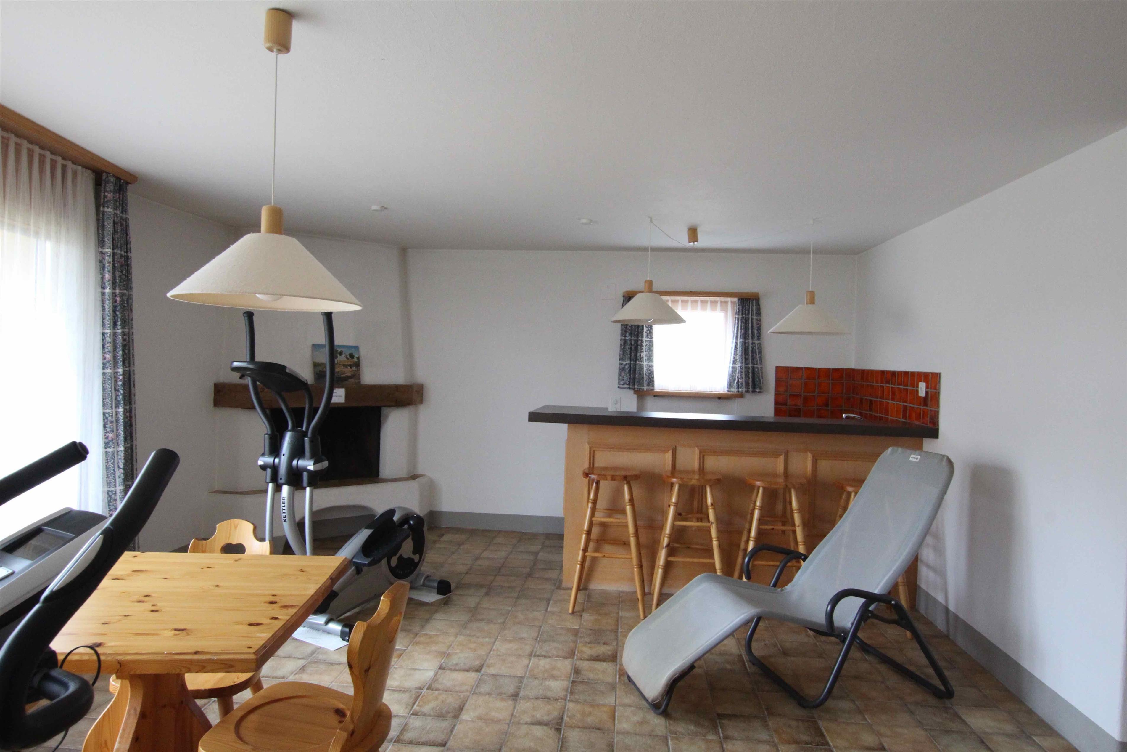 Die helle und freundliche Wohnung liegt in einem Mehrfamilienhaus am oberen Ortsrand von Tschierv.