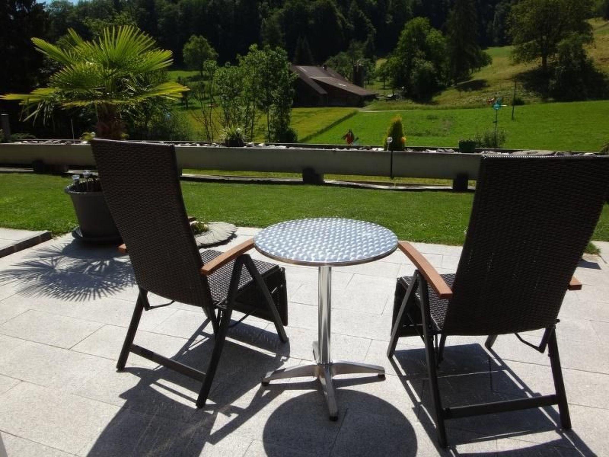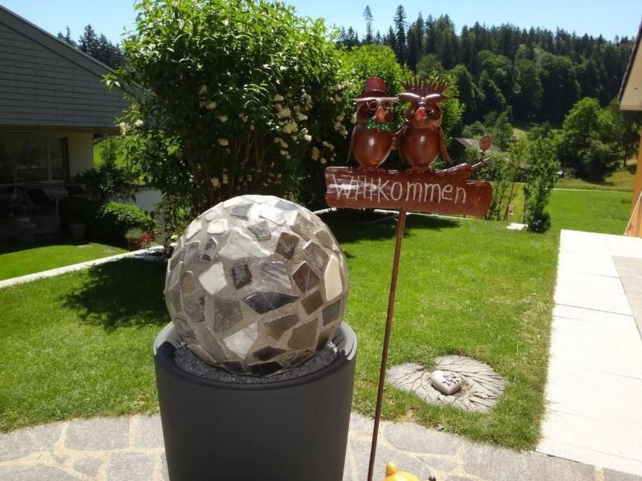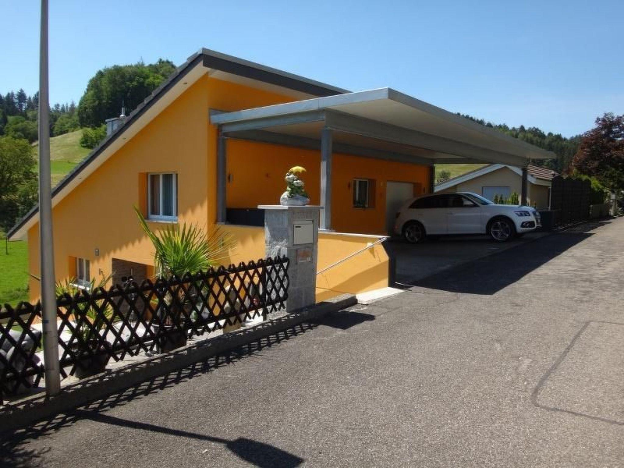 Moderne Ferienwohnung mit aussen Whirlpool (ganz jährig benutzbar - geheizt, von 8.00 bis 22.00 Uhr) und Erlebnis-Dusche (April - Oktober benutzbar) mit Sonnen-Terrasse gedeckter Sitplatz und herrlicher Aussicht auf Wald und Wiesen vom Schlafzimmer, Wohnzimmer, Sitzplatz oder vom Whirlpool aus. Eine richtige Wohlfühloase.