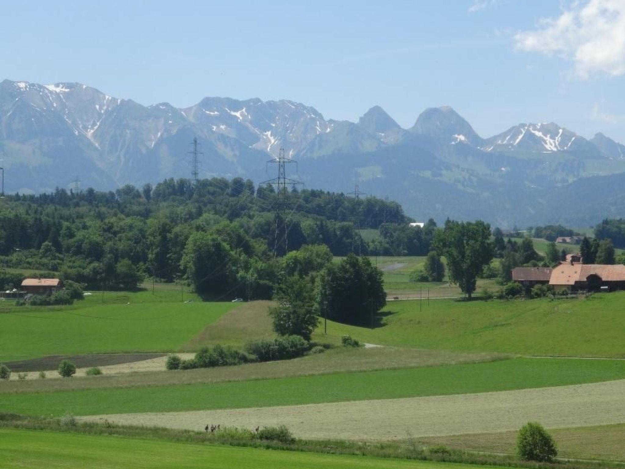 Der Außenbereich unseres Bauernhofs lädt zu zahlreichen Aktivitäten ein. Genießen Sie die herrliche Sicht auf die Stockhorn-Niesen Bergkette sowie Eiger, Mönch und Jungfrau. Es gibt viel Platz zum Spielen für die Kinder, einen Sitz- und Grillplatz für gemütliche Stunden im Freien und die Möglichkeit, an ruhigem Bächlein Entspannung zu finden. Ein Spielplatz auf dem Hof und die Nähe zu unseren Tieren, darunter Mutterkühe, Rinder, Kälber, Hund, Katzen, Kaninchen, Ziegen und Hühner, machen jeden Tag zu einem Abenteuer.