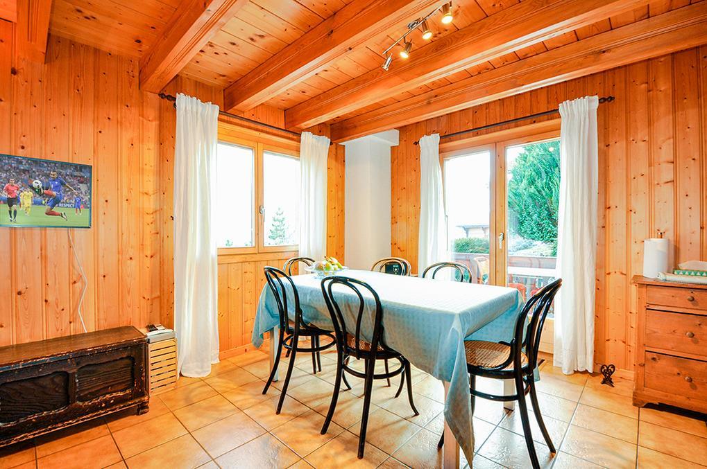 Haus: Schönes Walliser Chalet mit Kamin. 4-Zimmer-Haus mit 80 qm Wohnfläche über 2 Etagen. Sehr gepflegte, gemütlich-rustikale Einrichtung, komplett holzvertäfelt. Internetzugang über W-Lan. Waschmaschine. Keller mit Schuhregalen. Nichtraucherhaus. Balkon/Terrasse mit Sitzmöbeln. Kleiner Garten. Fußbodenheizung, Wärmepumpe. 1 Pkw-Stellplatz vorhanden. Separate Wohnung im Tiefparterre.
