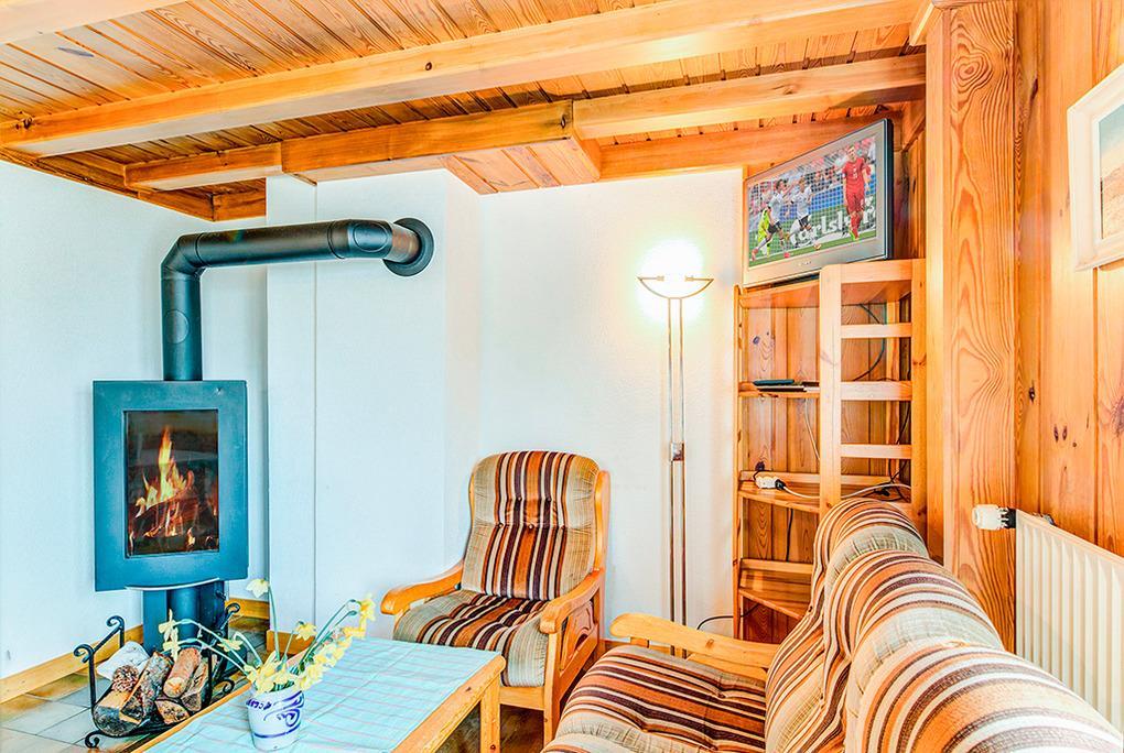 Haus: Schönes Chalet mit Kaminofen. 4-Zimmerwohnung, ca. 90 qm Wohnfläche über 2 Etagen, nur für Nichtraucher. Kostenloser Internetzugang über W-Lan. Gemütliches Ambiente durch Holzvertäfelung. E-Heizung. Warmwasser über 150 l E-Boiler. Separate Fewo im Parterre. Gemeinschafts-Skiraum.