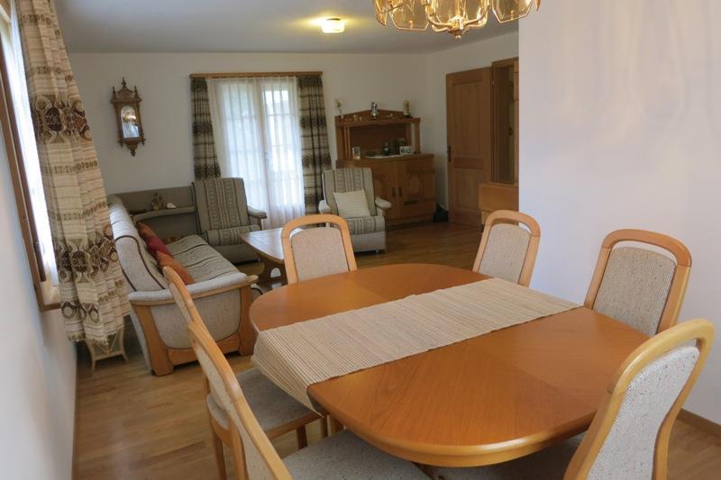 Die Wohnung ist hell und familienfreundliche eingerichtet. Das grosse Wohnzimmer mit gemütlicher Couch und Tisch ist mit TV, Radio und WLAN ausgestattet.