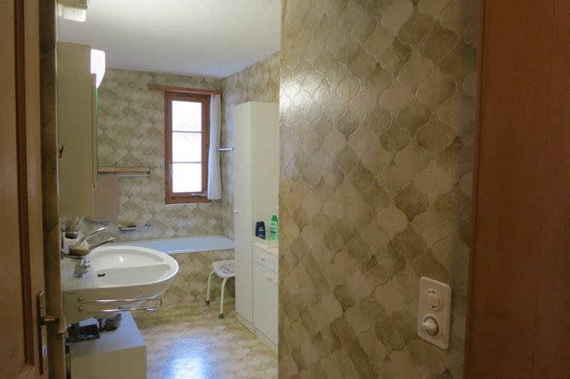 Das Badezimmer beinhaltet nebst dem WC und Lavabo eine Badewanne sowie eine separate Dusche. Frotteewäsche bitte selber mitbringen.