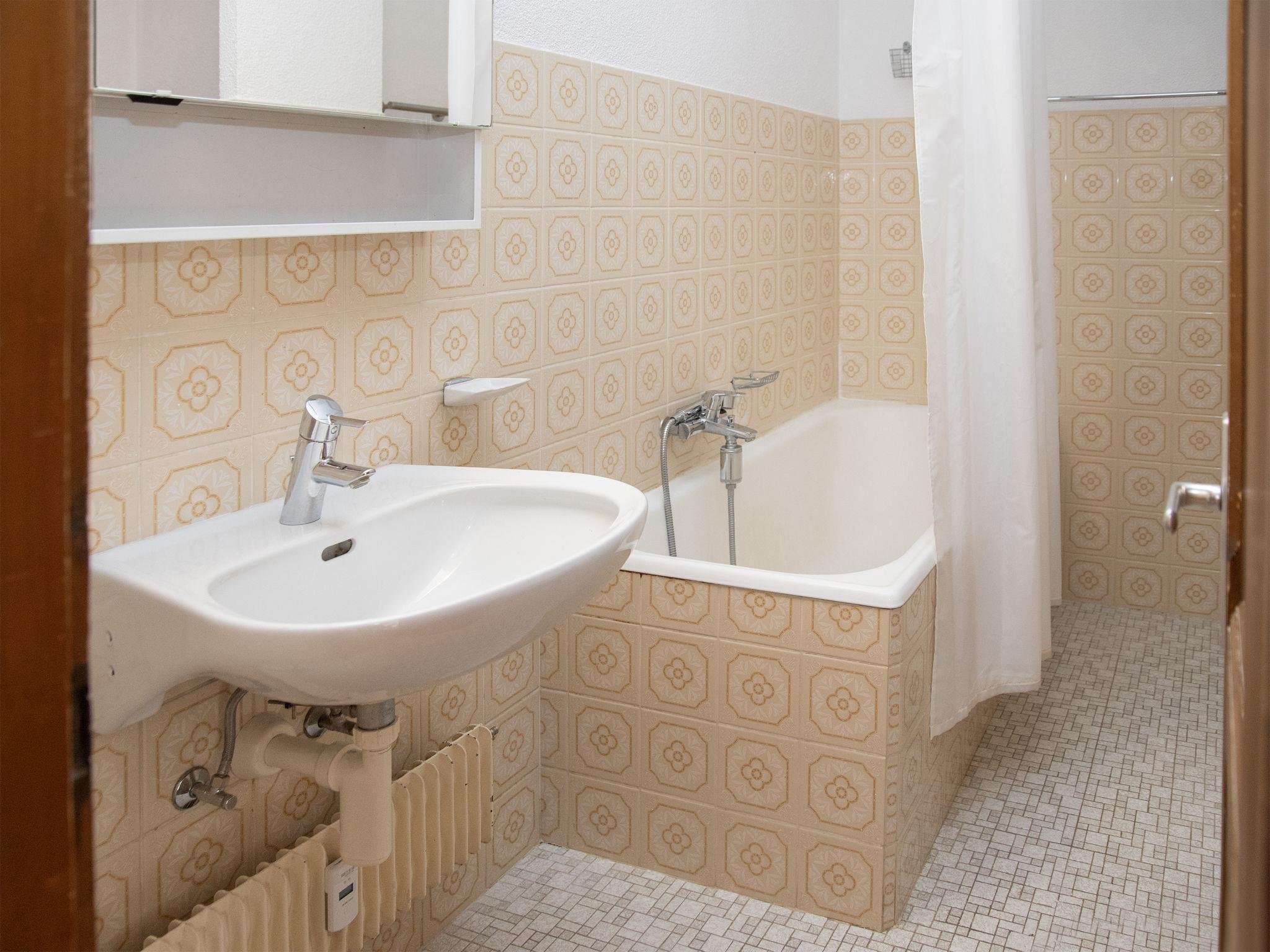 "Galaxie 003", 2-Zimmer-Wohnung 42 m2, im erhöhten Erdgeschoss. Objekt geeignet für 2 Erwachsene. Geräumig, komfortabel und schön eingerichtet: 1 Zimmer mit 1 Bett (160 cm, Länge 200 cm). Wohn-/Esszimmer. Ausgang zur Terrasse. Kochnische (3 Kochplatten, Backofen, Toaster, Wasserkocher, elektrische Kaffeemaschine, Kapseln für die Kaffeemaschine (nespresaso) extra, Fondue Set (Käse)) mit Bad/WC. Parkettboden. Balkon, Südlage. Schöne Sicht auf die Berge. Zur Verfügung: Haartrockner. Bitte beachten: Nichtraucher-Unterkunft.