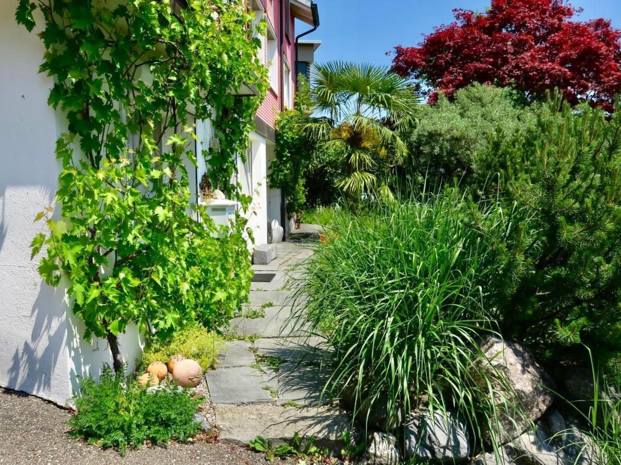 Wohnküche mit Glaskeramikherd. Kein TV, aber WLAN-Anschluss (Wireless). Parkplatz in 15m Entfernung. Aus den Fenstern haben Sie freie Sicht in die Berge, und die Wohnungstür führt direkt in den mit Palmen bewachsenen Garten, der zu Ihrer freien Benützung offensteht.