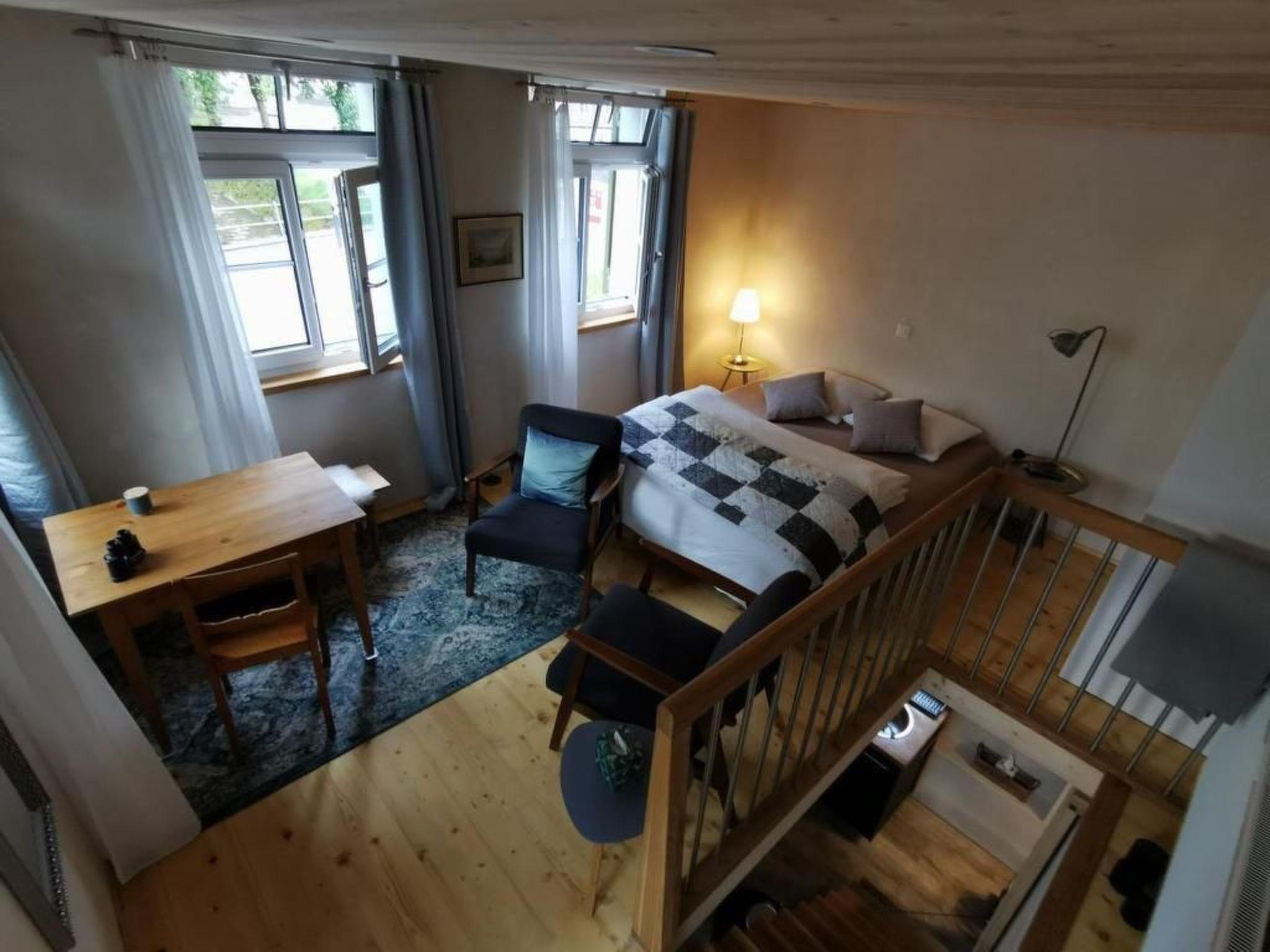 Das 2-stöckige Studio bietet speziellen Charme und Ausblick auf den Dorfkern.
