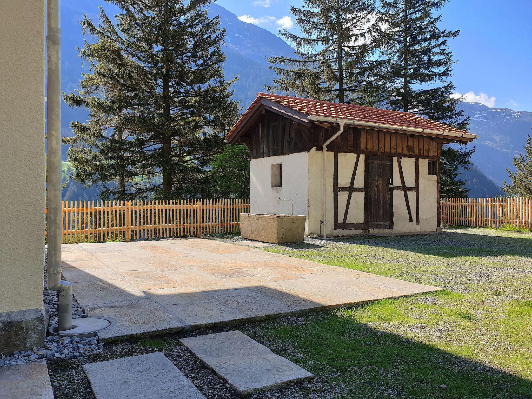 Die wunderbare Terrasse vor dem Haus bietet bei schönem Wetter ganztags Sonne. Mit dem Gartenmobiliar aus dem Nebengebäude lassen sich warme Tage geniessen und an der Feuerstelle Grilladen zubereiten.