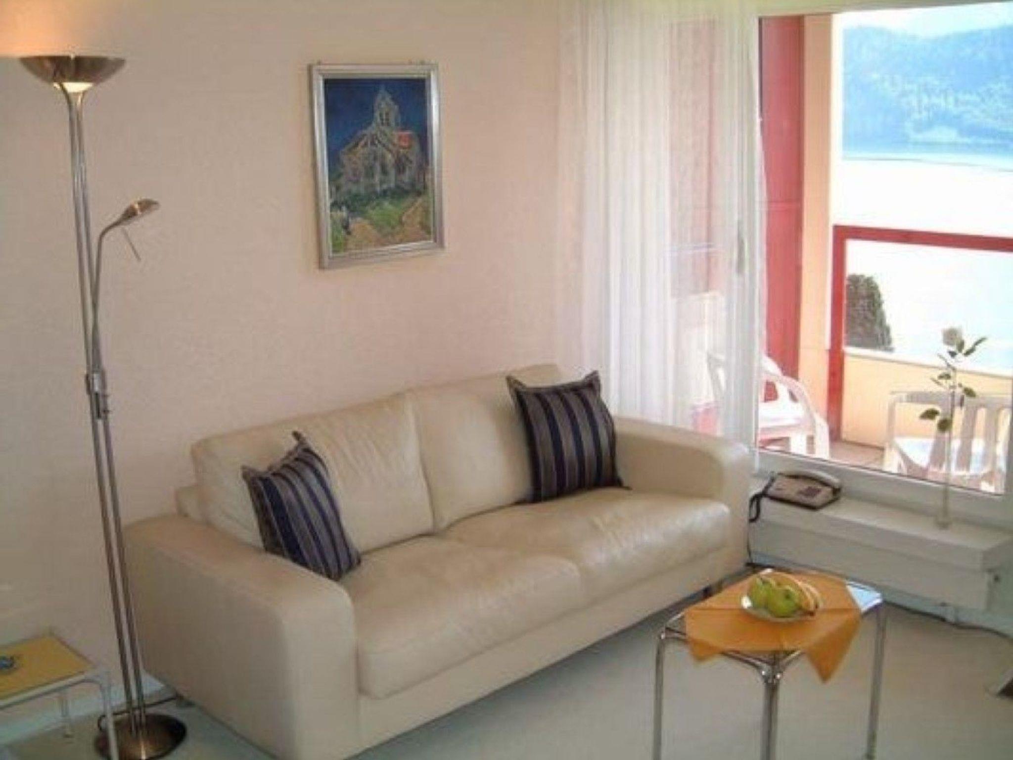 Appartement Alpenblick ****, 1 Zimmerwohnung, Grundfläche zirka 28 m2, mit möbliertem Balkon, prächtige Panoramasicht auf See und Berge, ruhige zentrale Lage. Die Wohnung ist bestückt mit 1 Bett für 2 Personen, Tisch mit 2 Stühlen, Polstermöbel, 3-türiger Schrank, Kabel-Farb-TV, Telefon, Internet. Elektrische Küche mit 2 Platten-Kochherd, Kühlschrank mit Tiefkühlabteil, Kaffefiltermaschine, alles komplett eingerichtet. WC-Dusche. Das Haus verfügt über ein Hallenbad 28 Grad Wassertemperastur,Sauna, Bio Sauna, Solarium, Wärmekabine und 3 Gemeinschaftswaschküchen. Im Haus finden Sie ein Restaurant. Für Gästemit einem Motorfahrzeug steht in der Einstellhalle ein Garagenplatz zum Preis von Fr. 7.- pro Nacht zur Verfügung. Einkaufsmöglichkeiten, Bushaltestelle und Bankomat finden Sie zirka 50 Meter vom Haus entfernt.