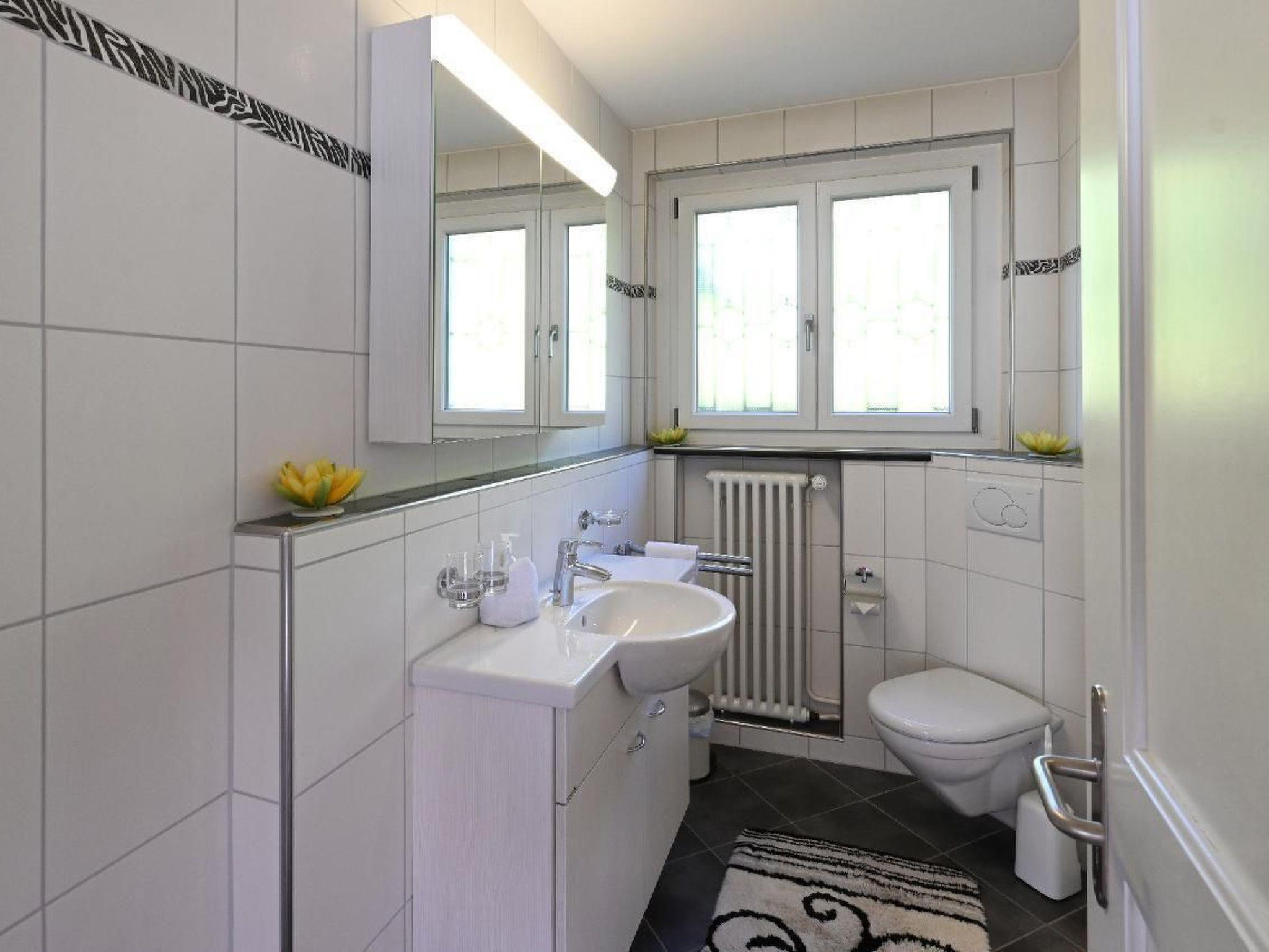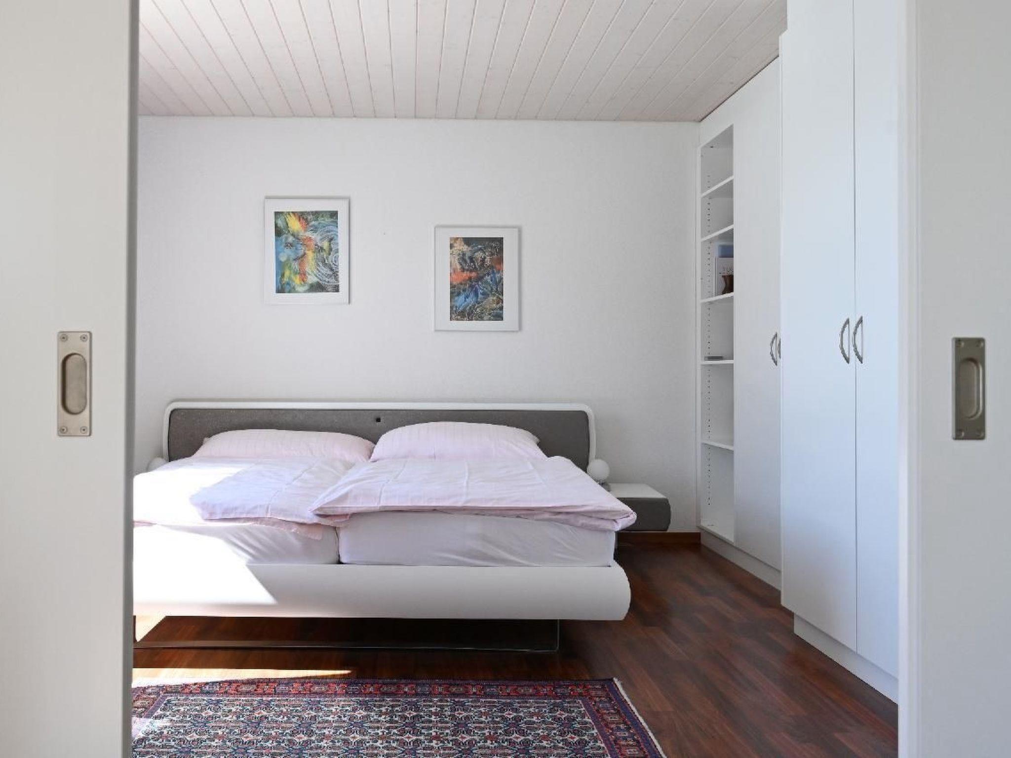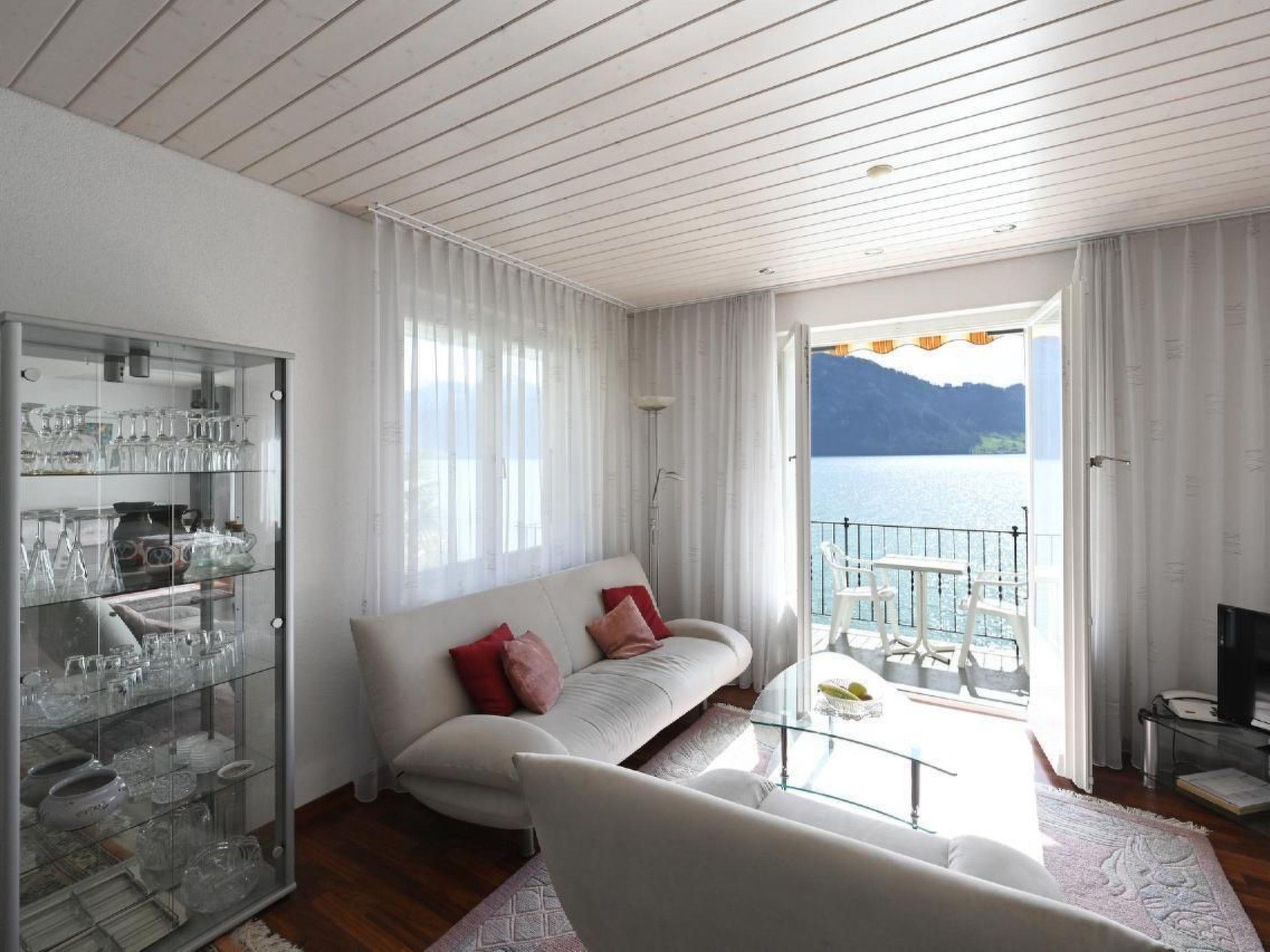 Haus Stirnemann ist durch die Zubringerstrasse vom See getrennt, an ruhiger Lage. 2-Zimmer-Nichtraucher-Ferienwohnung, Grundfläche zirka 66 m2 auf der zweiten Etage mit prächtiger Panoramasicht auf See und Berge. Die Wohnung ist mit 4 Sternen klassifiziert. Die Wohnung umfasst 1 Schlafzimmer mit einem Bett mit 2 Matrazen, grosser Einbauschrank. Wohnzimmer mit Esstisch und 4 Stühlen, Polstermöbel, Radio, Farb-Kabel-TV und Internet. Vor dem Wohnzimmer,möblierter Balkon. Eine offene, elektrische Küche mit 4-Platten Ceran-Kochfeld, Backofen,Kühlschrank mit Tiefkühlabteil, Geschirrspüler, Kaffee- filtermaschine, alles komplett eingerichtet.Dusche-WC mit Waschmaschine. Ein privater Parkplatz, oder Garagenplatz in Einstellhmalle ist für unsere Gäste reserviert Unseren Gästen steht die Liegewiese am See zur Mitbenutzung zur Verfügung.