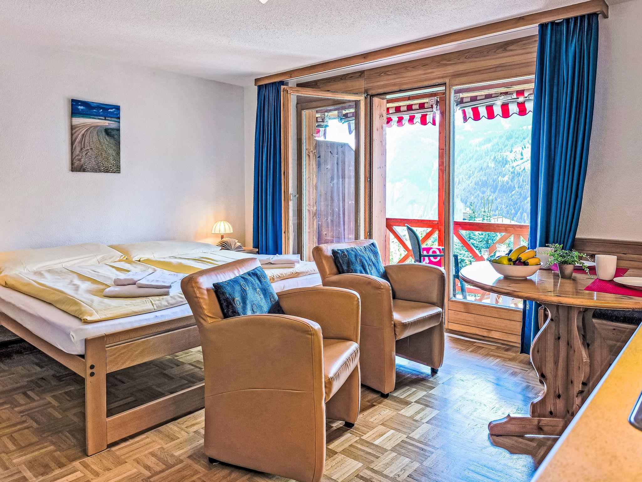 "Rose Studio Y", 1-Zimmer-Wohnung 20 m2 im 2. Stock. Schön eingerichtet: Wohn-/Esszimmer mit 1 Doppelbett und Kabel-TV (Flachbildschirm). Ausgang zum Balkon. Kochnische (2 Glaskeramikplatten, Toaster, Wasserkocher, elektrische Kaffeemaschine, Kapseln für die Kaffeemaschine (Nespresso) extra, Kombinationsmikrowelle). Dusche/WC. Fussbodenheizung. Balkon, Südwestlage. Terrassenmöbel. Sehr schöne Panoramasicht auf die Berge und das Tal. Zur Verfügung: Haartrockner. Internet (WLAN, gratis). Maximal 1 Haustier/Hund erlaubt.