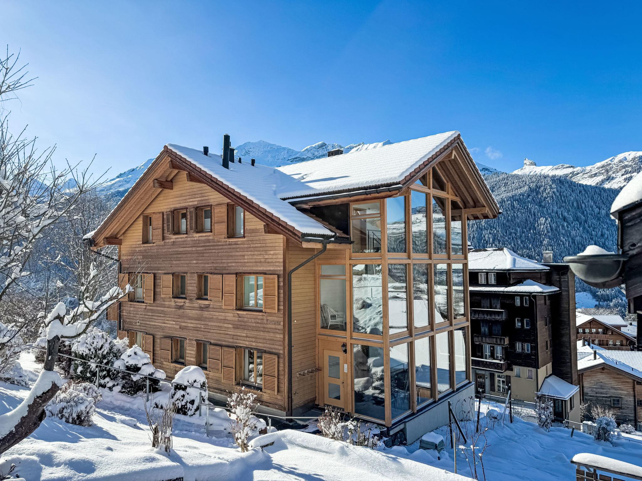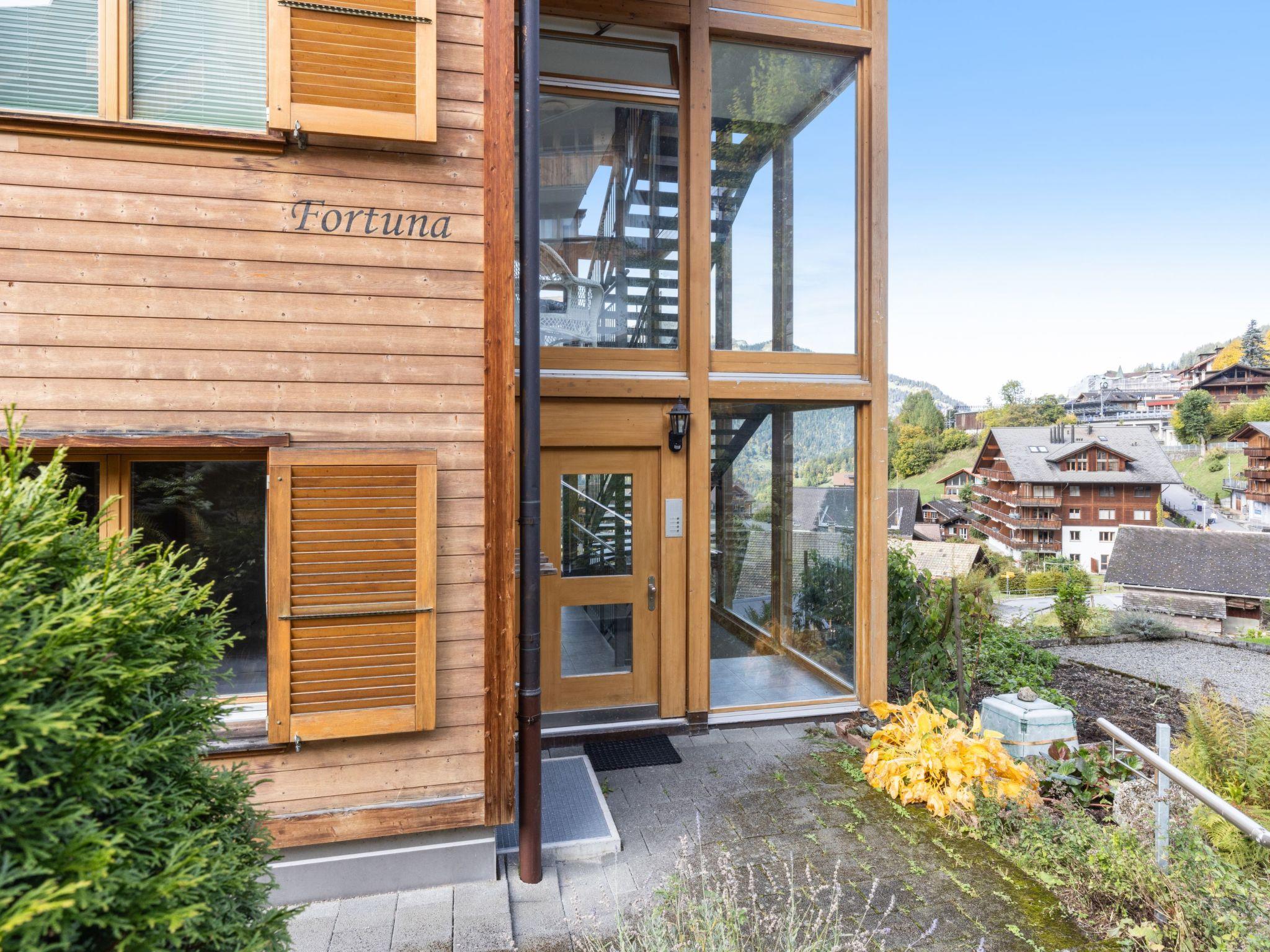 Appartementhaus "Fortuna", Baujahr 2006. 400 m vom Zentrum von Wengen, am Hang, exzellente Lage: Absolut zentral und dennoch ruhig. Im Hause: Zentralheizung, Waschmaschine, Wäschetrockner (zur Mitbenutzung). Einkaufsservice vor Anreise möglich. Einkaufsgeschäft, Supermarkt 400 m, Restaurant 200 m, Bar, Bäckerei 400 m, Zentrum zu Fuss in 5 Minuten erreichbar, Bushaltestelle "Lauterbrunnen (by train)" 3.4 km, Bahnstation "Wengen" 400 m, Freibad 700 m. Luftseilbahn, Skisportanlagen 400 m, Kinderspielplatz 200 m. Bekannte Seen in der Umgebung sind gut erreichbar: Thunersee 13 km, Brienzersee 13 km. Bitte beachten: autofreie Ferienanlage. Die Anreise erfolgt mit der Bergbahn. Anreise ist nur mit dem Zug ab Lauterbrunnen möglich – 14 Min. Fahrzeit.