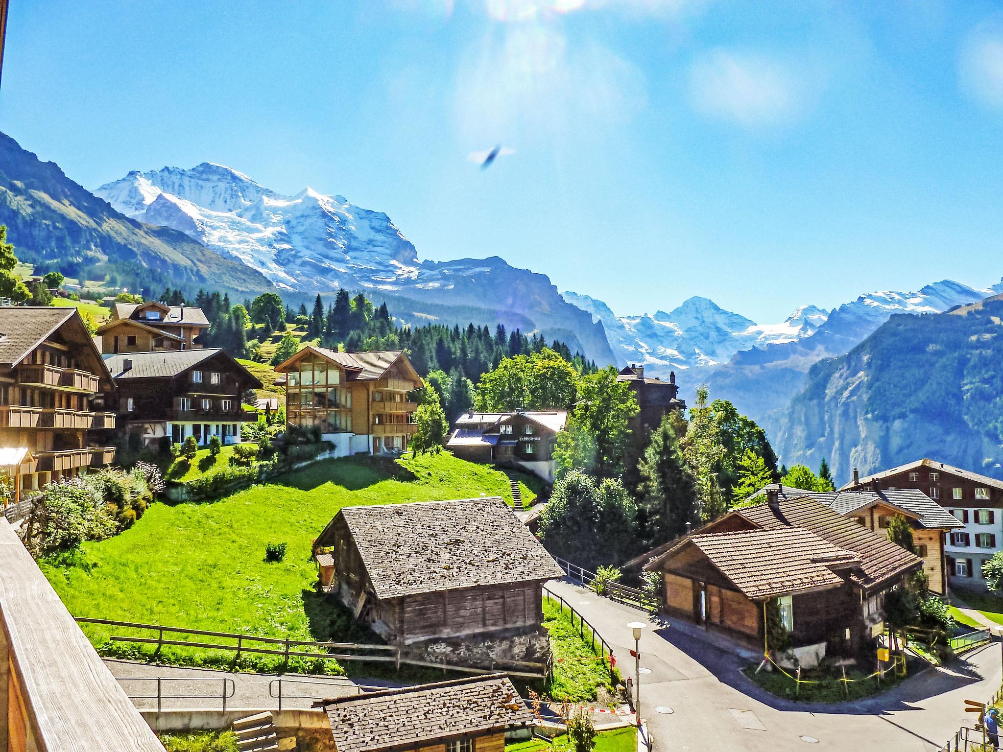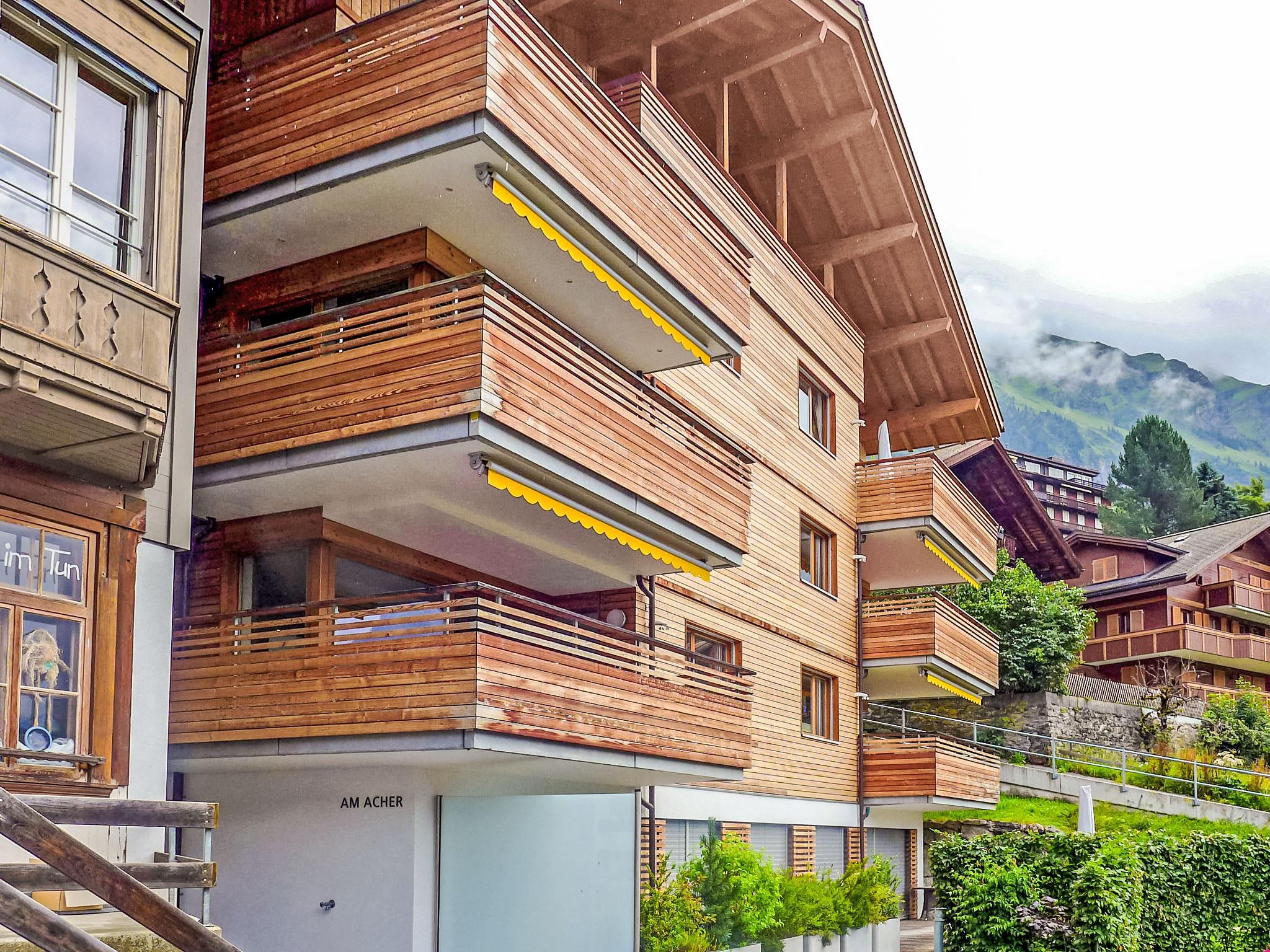 Appartementhaus "Am Acher II", Baujahr 2008. Im Ortsteil Am Acher, 250 m vom Zentrum von Wengen, am Hang, exzellente Lage: Absolut zentral und dennoch ruhig. Im Hause: Fahrstuhl, Zentralheizung. Einkaufsservice vor Anreise möglich. Einkaufsgeschäft, Supermarkt 250 m, Restaurant 100 m, Bar, Bäckerei 250 m, Zentrum zu Fuss in 3 Minuten erreichbar, Bushaltestelle "Lauterbrunnen (by train)" 3.3 km, Bahnstation "Wengen" 250 m, Freibad 600 m. Luftseilbahn, Skisportanlagen 250 m, Kinderspielplatz 100 m. Bekannte Seen in der Umgebung sind gut erreichbar: Thunersee 13 km, Brienzersee 13 km. Bitte beachten: autofreie Ferienanlage. Die Anreise erfolgt mit der Bergbahn. Anreise ist nur mit dem Zug ab Lauterbrunnen möglich – 14 Min. Fahrzeit.