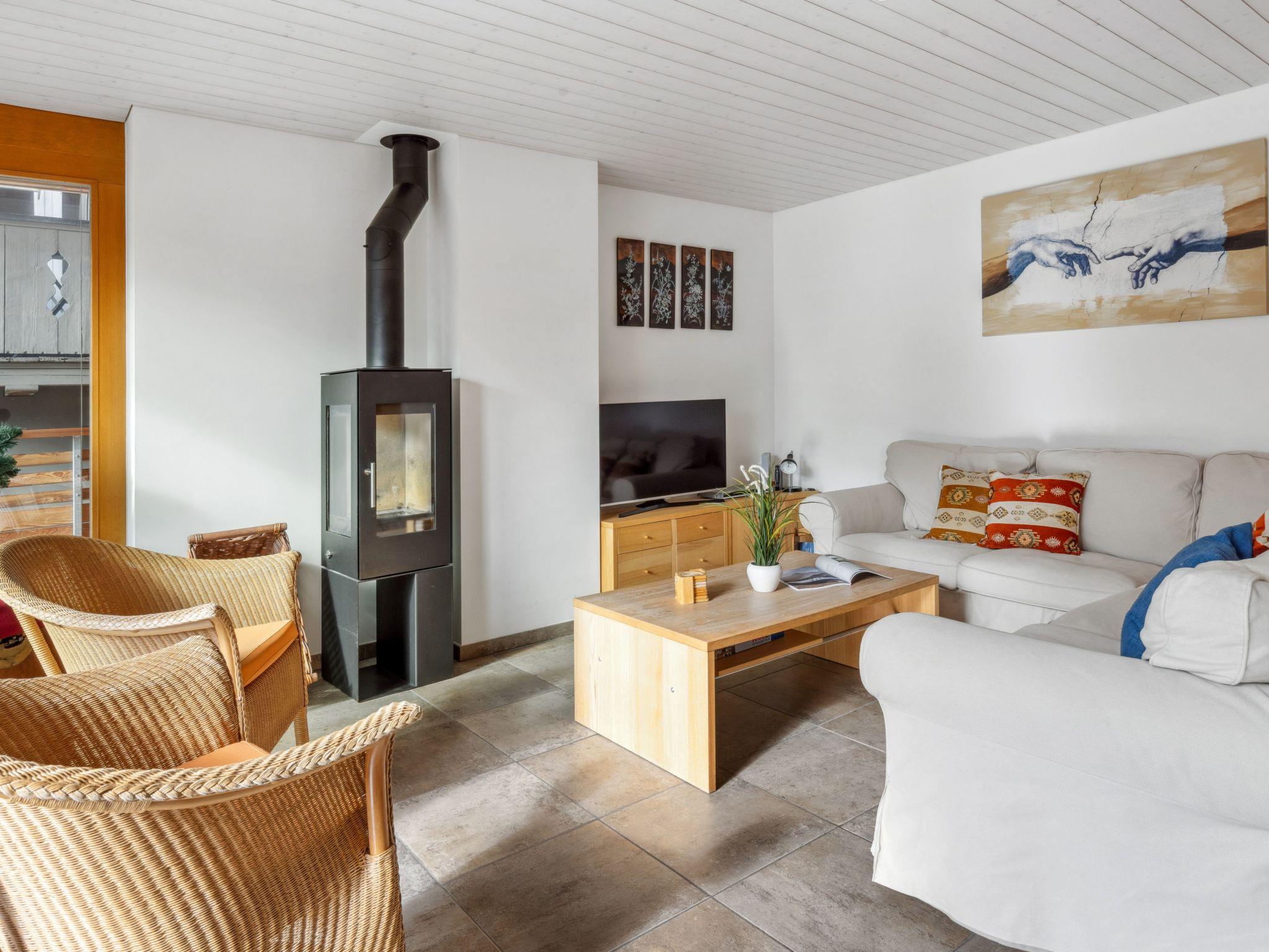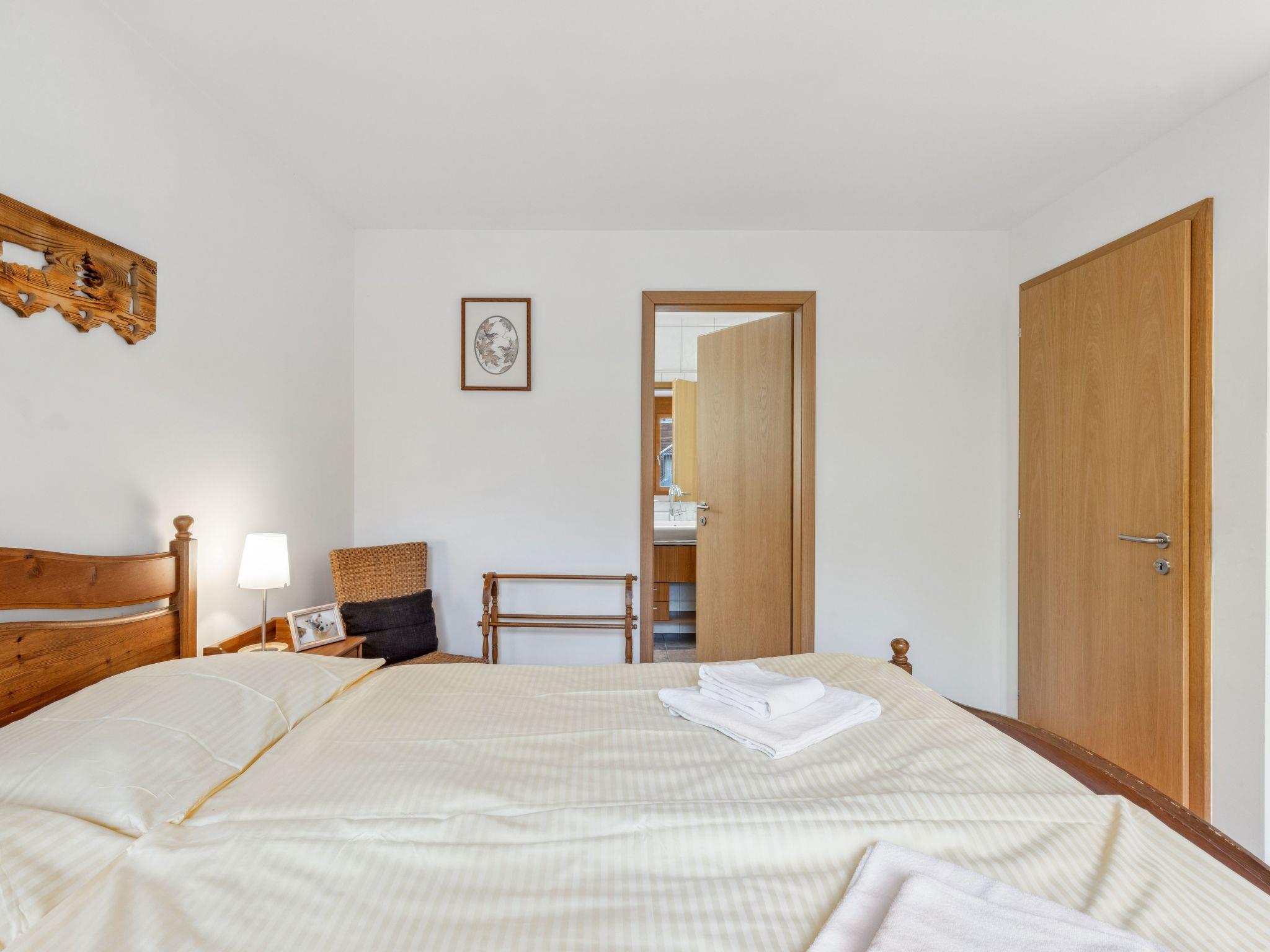 "Am Acher II Apt. F", 3-Zimmer-Wohnung 93 m2 im 3. Stock. Geräumig und hell, modern und stilvoll eingerichtet: Wohn-/Esszimmer mit Schwedenofen, Kabel-TV und DVD. Ausgang zum Balkon. 1 Zimmer mit 1 Doppelbett (1 x 180 cm, Länge 200 cm), Bad/Dusche/WC. 1 Zimmer mit 2 Betten (90 cm, Länge 200 cm). Grosse, offene Küche (Backofen, Geschirrspüler, 4 Induktionskochplatten, Toaster, Wasserkocher, Mikrowelle, elektrische Kaffeemaschine, Kapseln für die Kaffeemaschine (Nespresso) extra, Racletteofen, Fondue Set (Käse)). Dusche/WC. Grosser Balkon, Westlage. Balkonmöbel. Herrliche Panoramasicht auf die Berge. Zur Verfügung: Waschmaschine, Wäschetrockner, Bügeleisen, Haartrockner, Holz (extra). Internet (WLAN, gratis). Bitte beachten: Nichtraucher-Unterkunft.