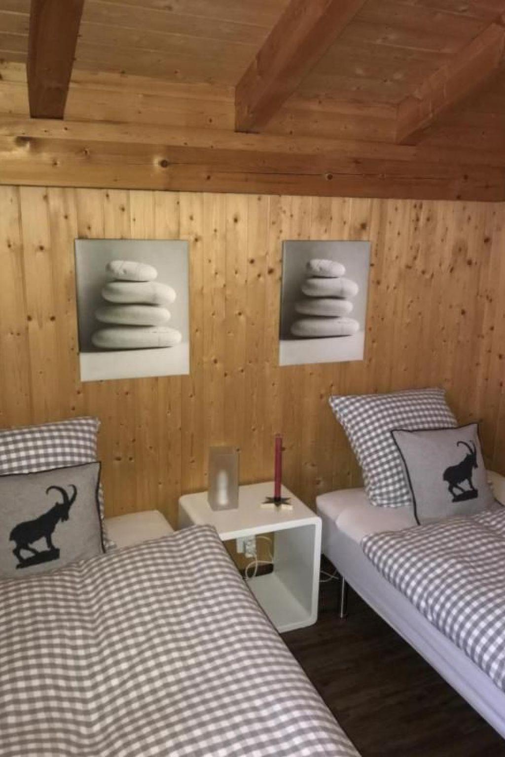 Maximal 1 Haustier/Hund erlaubt. Einseitig angebautes Chalet an ruhiger sonniger Süd-Hanglage mit schöner, unverbauter Panoramaaussicht auf die Churfisten, ein kleines Paradies. Ein grosser, eingezäunter Garten sowie der grosse, gedeckte Balkon wie ein kleiner Balkon im OG geben diesem Haus die besondere Note. Das Chalet ist modern im Alpenchic eingerichtet und bietet alles, was das Herz begehrt. Das Ferienhaus eignet sich für maximal 5 Personen. Das Chalet verfügt im Obergeschoss über 2 Schlafzimmer mit Schlafplätzen für 5 Personen sowie 1 Schlafsofa in der Galerie unten. Die Schlittelpiste (Gamplüt) führt - nur wenige Schritte vom Chalet "Toggi" entfernt - den Hang ins Dorf hinab und der Skibus hält in der Nähe vom Steinrüti-Quartier, einfach genial. Im Winter traumhafte Winterwanderwege und im Sommer Wanderrouten auf alle Hügel und das alles in Fussmarsch erreichbar. Das Dorfzentrum mit Einkaufsmöglichkeiten ist in wenigen Minuten zu Fuss erreichbar. Eine Garage und 3 Parkplätze (2 vor dem Haus, 1 vor der Garage) sowie WLAN stehen kostenlos zur Verfügung. Die Endreinigung wird durch eine Reinigungsfirma gegen Aufpreis ausgeführt. Strom, Heizung, Abfallgebühren, Putzmittel wie auch Brennholz für Cheminée werden vom Vermieter übernommen. Sonstige Kücheneinrichtung (Küche): - 5 Sitzplätze am Tisch - Fondue- und Racletteutensilien. Sportmöglichkeiten in der Umgebung: Angeln, Bergsteigen, Eislaufen, Golfplatz in Haag, Minigolf, Jagd, Klettern, Mountainbiking, Paragliding, Radtouren, Rafting, Reithalle, Reitplatz / Reitmöglichkeiten, Rodeln, Ski (alpin), Ski (Langlauf), Sportcenter, Tennis