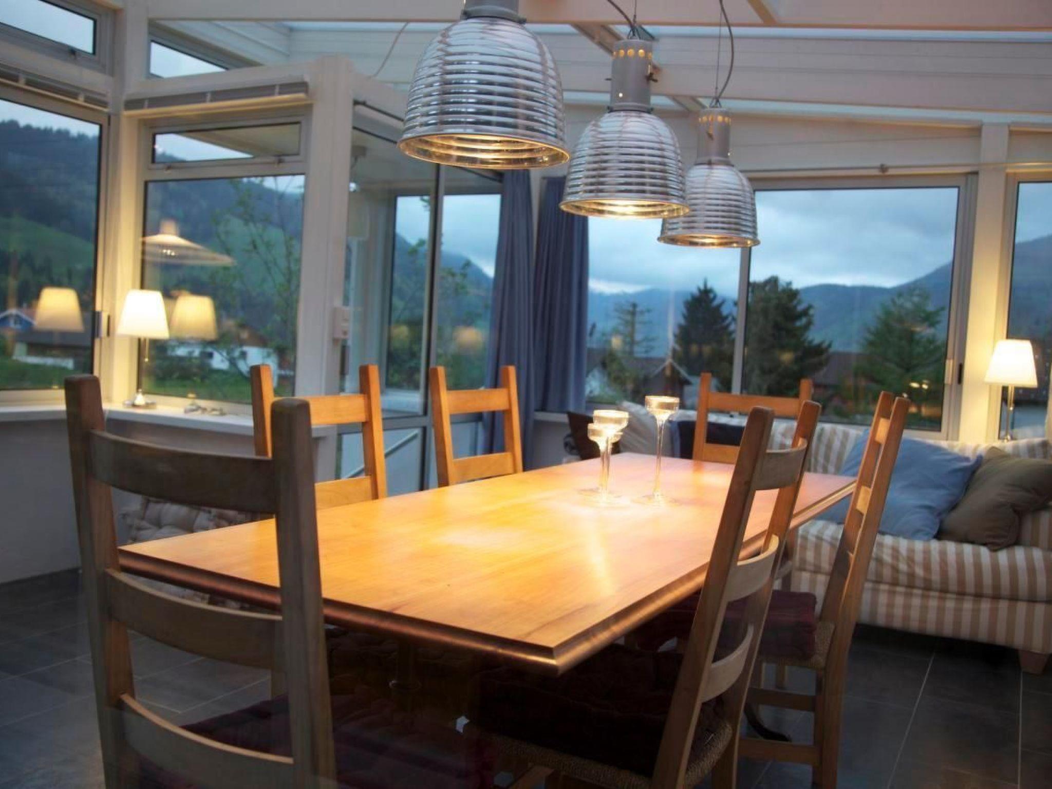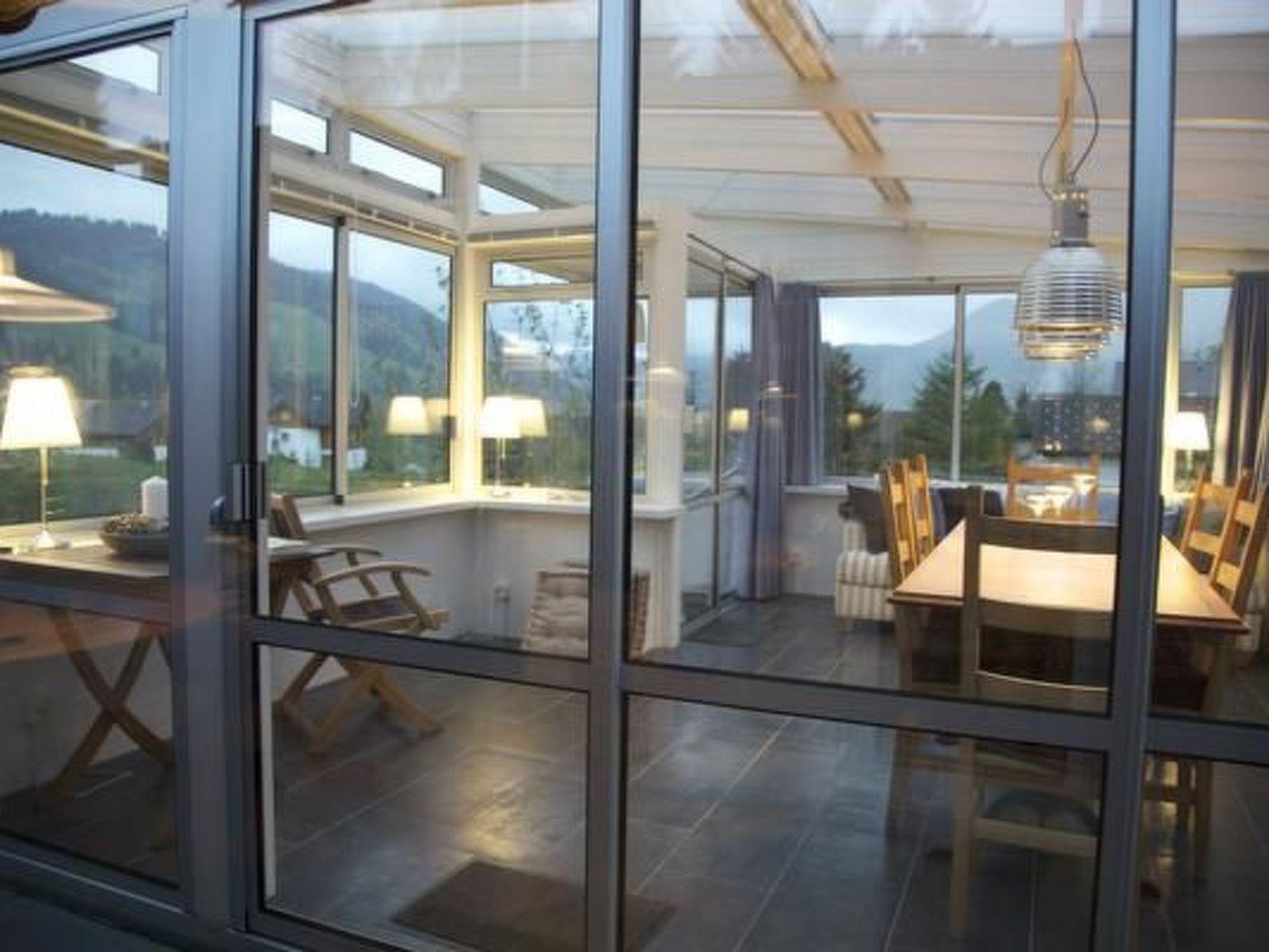 Zum Haus gehört ein grosser Wintergarten, welcher selbst während der kälteren Jahreszeit, dank einem Schwedenofen, zu einem gemütlichen Rückzugsort wird, von wo aus man eine unverbaute, tolle Aussicht auf die herrliche Bergwelt der 7 Churfirsten hat.