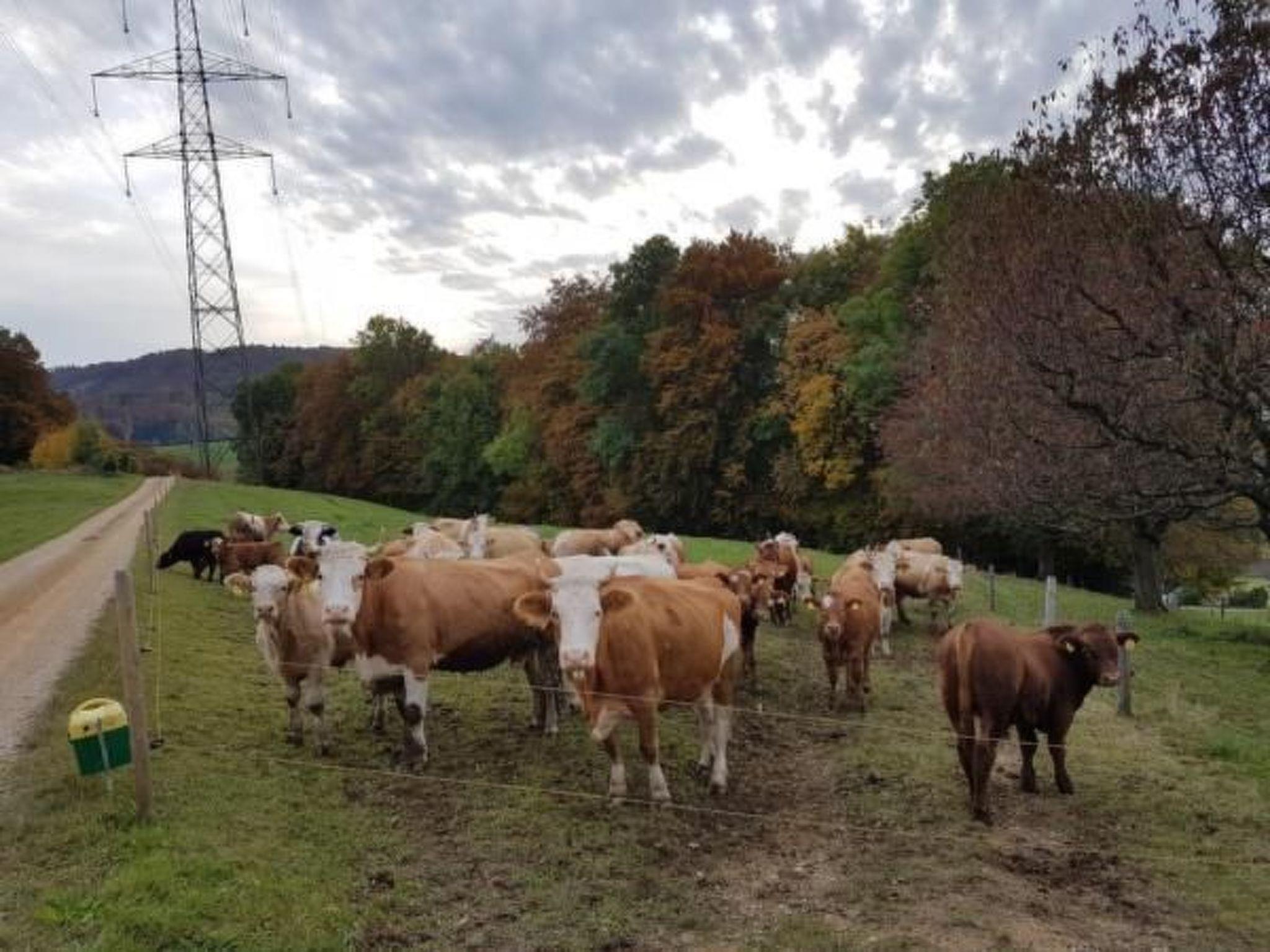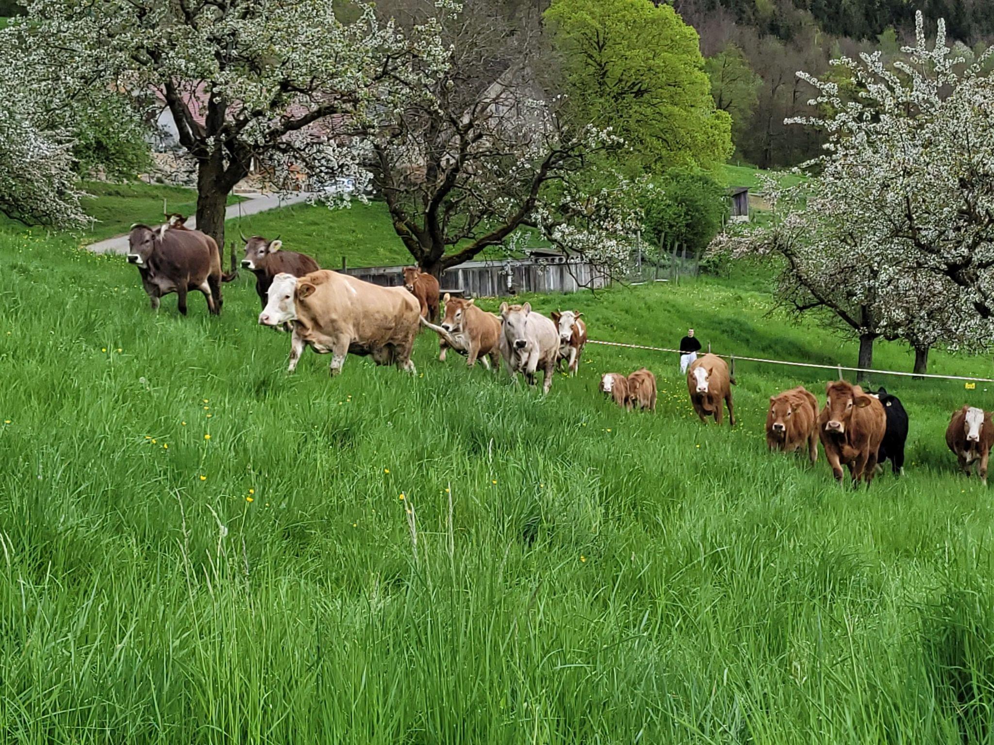 Es darf auch gerne im Kuhstall mit angepackt werden. Der Mutterkuhstall und die beiden Schweineställe sind ca. 80 bis 100 Meter vom Chalet entfernt. So erleben Sie unsere Tiere und die Natur hautnah.
