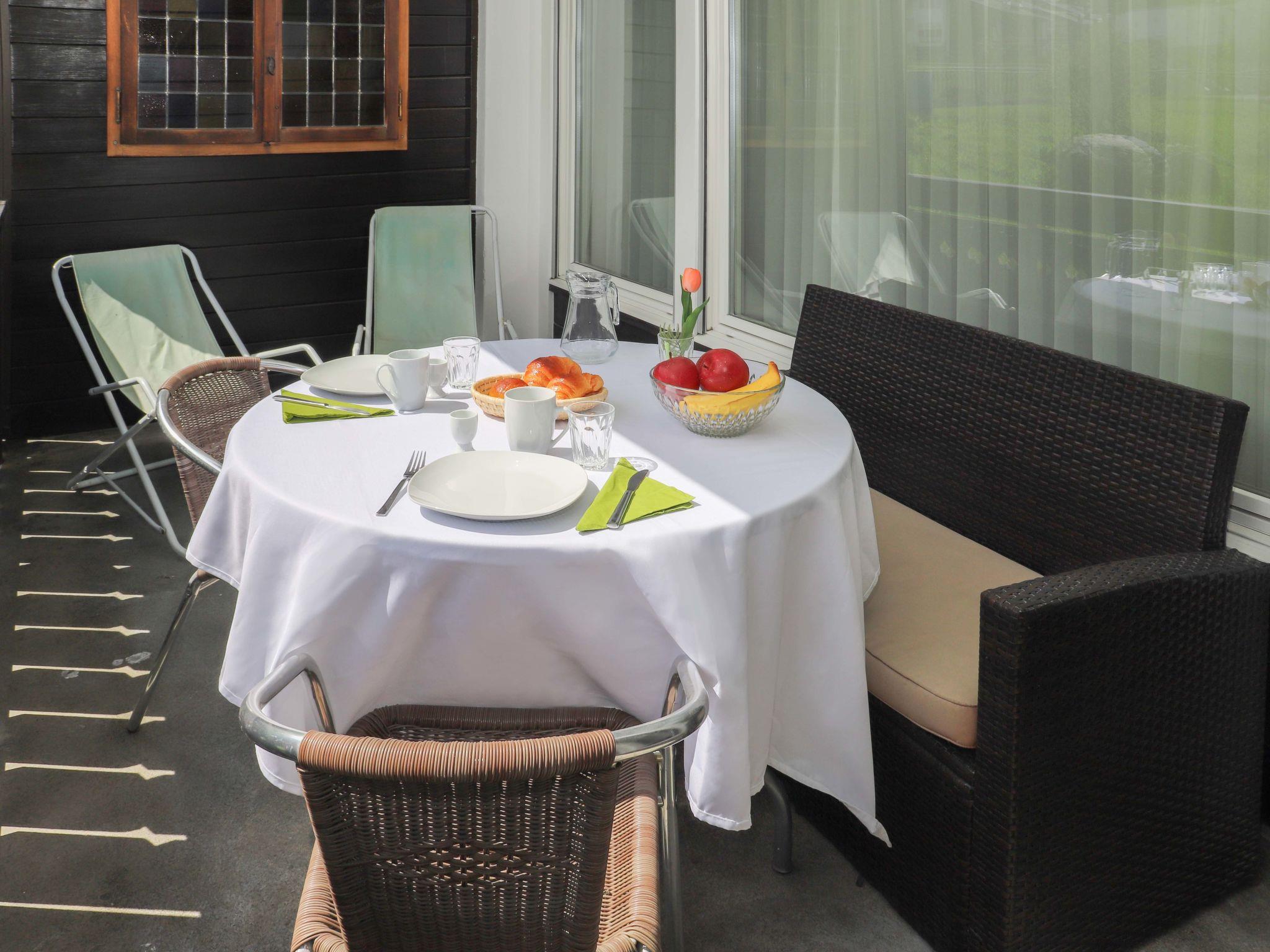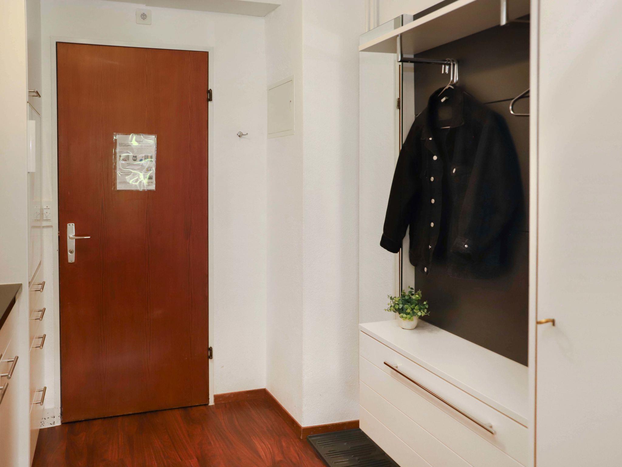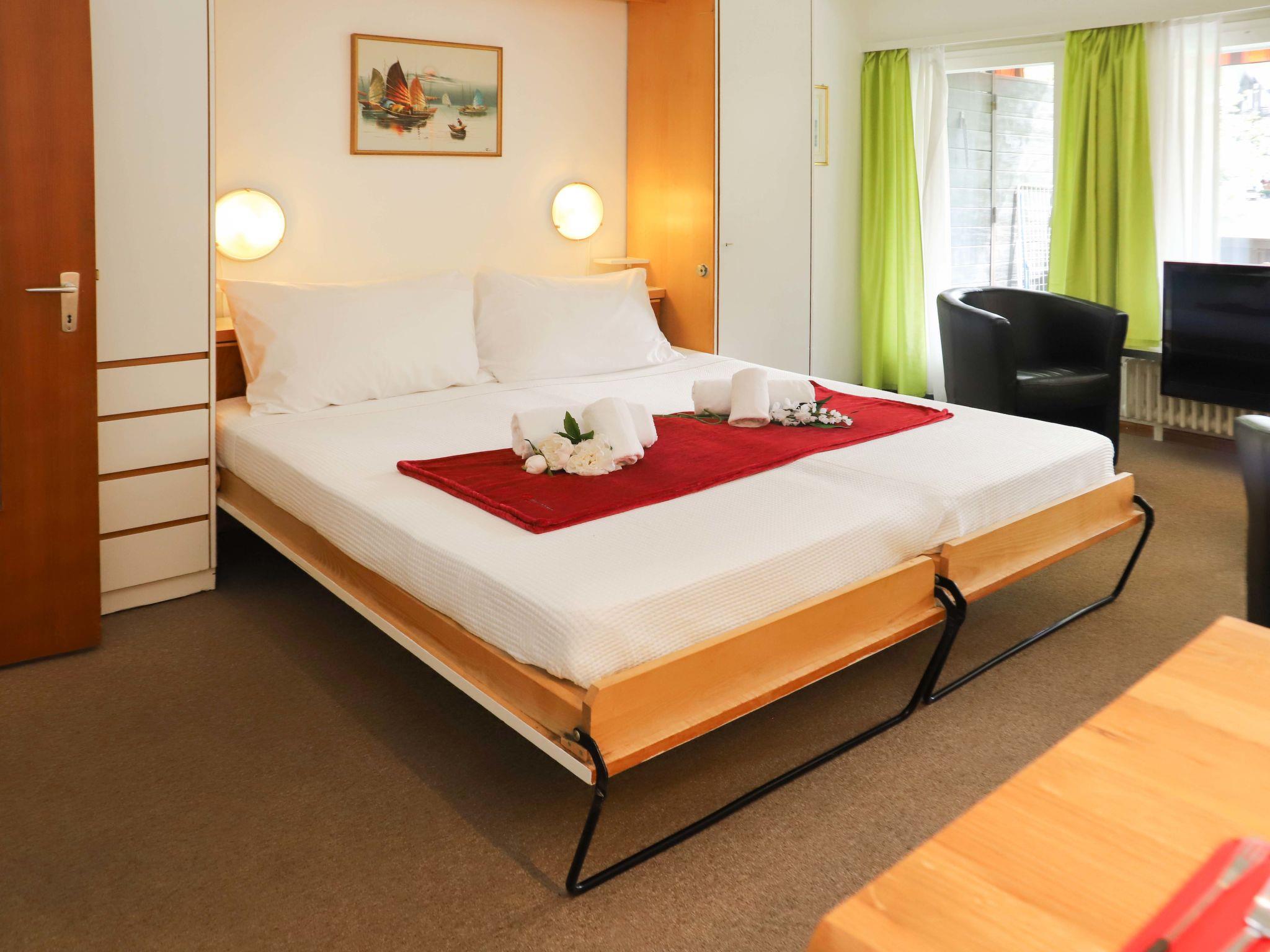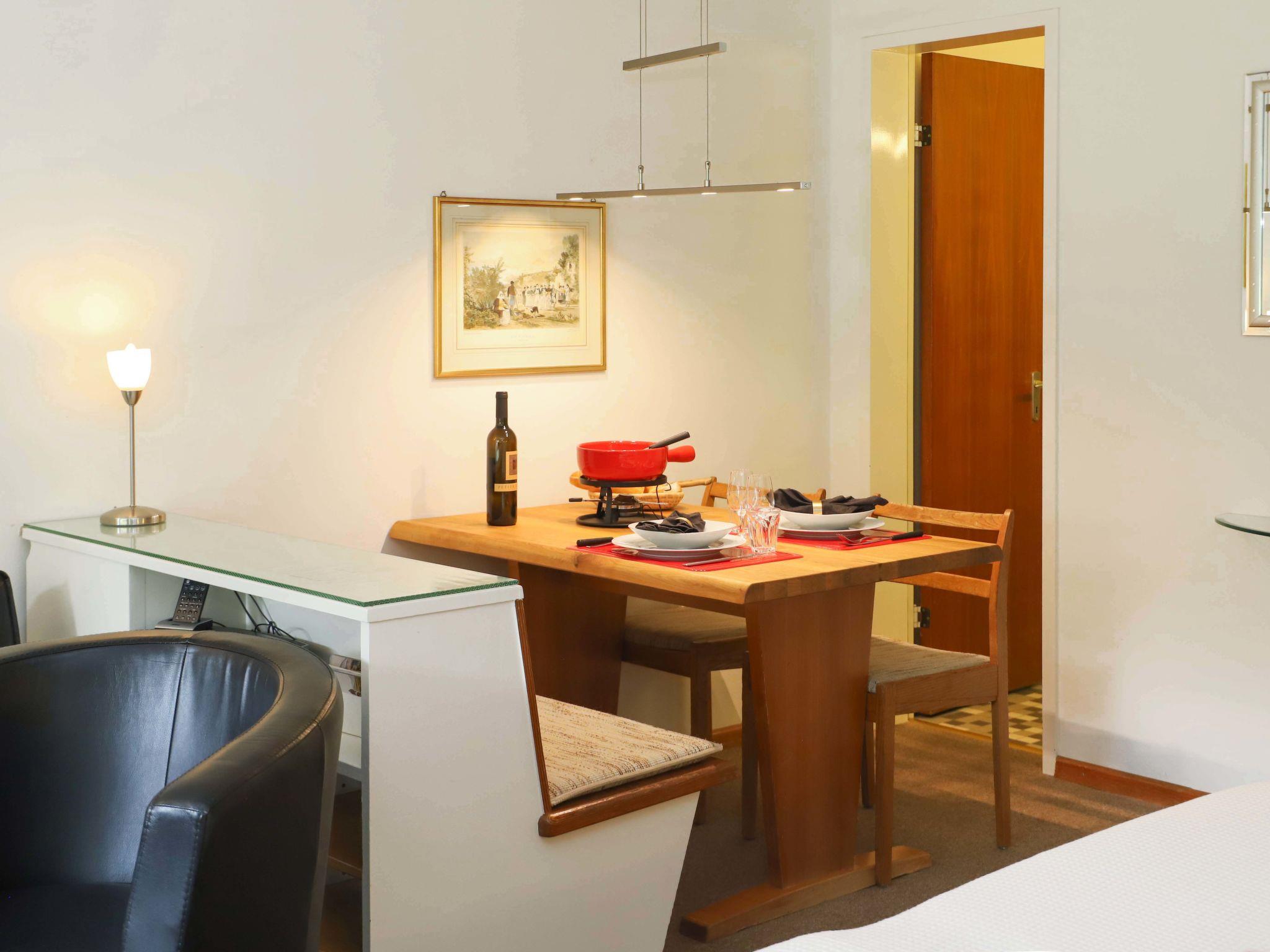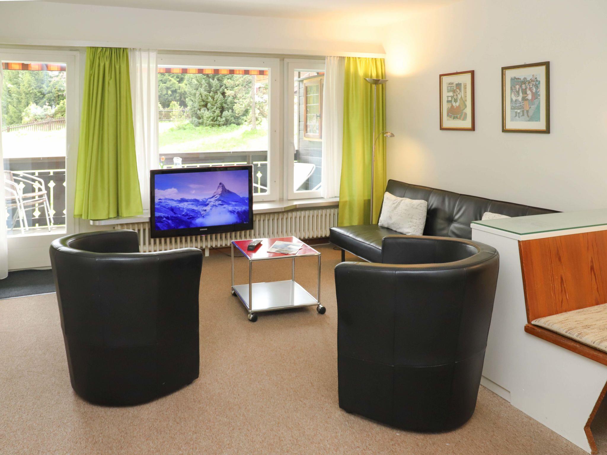 1-Zimmer-Wohnung 33 m2 im 1. Stock, Südlage. Wohn-/Esszimmer mit 2 Wandklappbetten, TV und Radio. Kochnische im Eingang (Backofen, 4 Glaskeramikplatten, elektrische Kaffeemaschine). Bad/WC. Balkon. Terrassenmöbel. Schöne Sicht auf das Matterhorn. Zur Verfügung: Internet (Wireless LAN, gratis). Bitte beachten: Nichtraucher-Unterkunft.