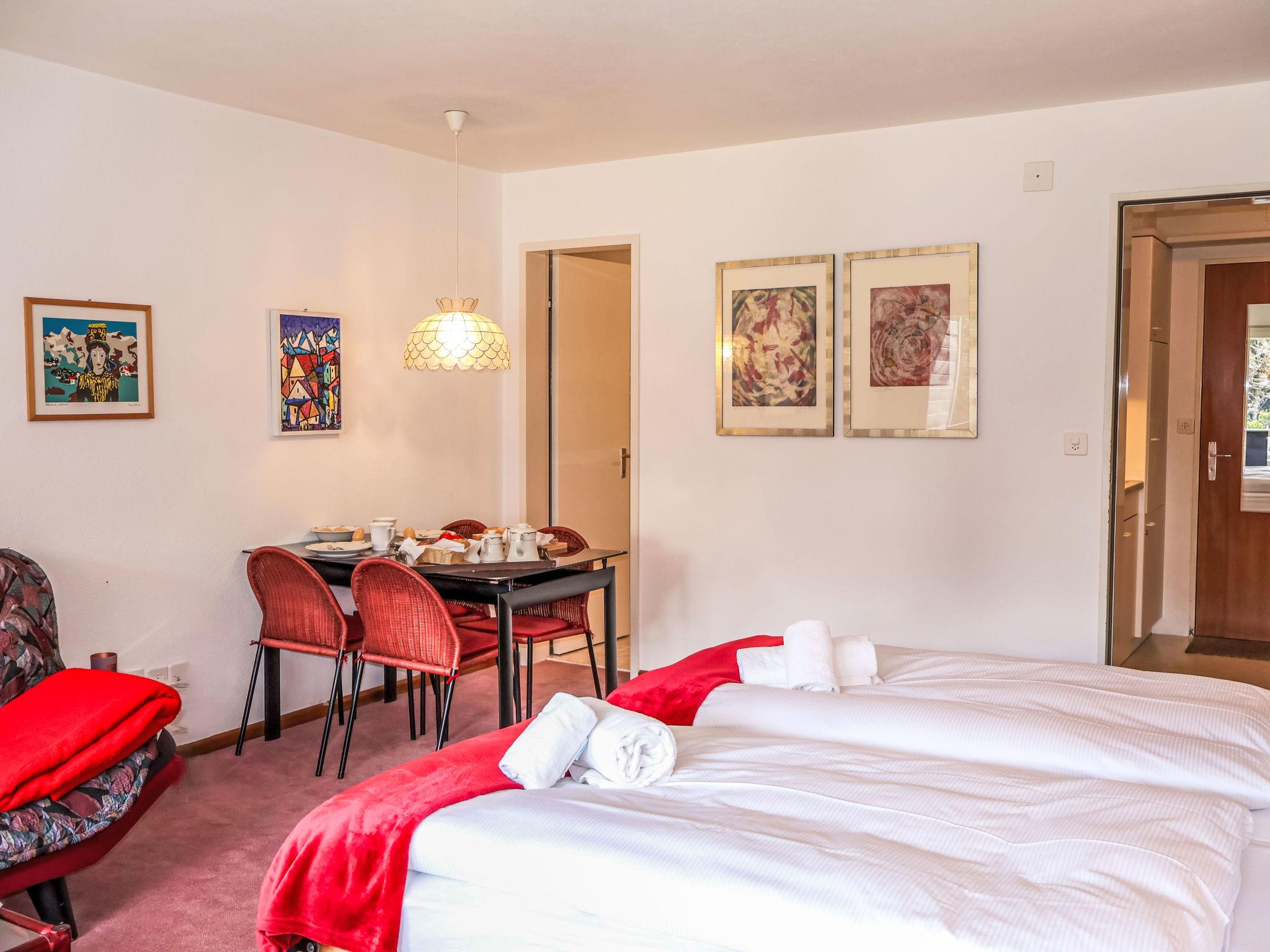 1-Zimmer-Wohnung 33 m2, Südlage. Hell, einfach und gemütlich eingerichtet: Wohn-/Schlafzimmer mit 2 Wandschrankbetten (90 cm, Länge 200 cm), Esstisch und Digital-TV. Ausgang zum Balkon, Richtung Süden. Küche (2 Kochplatten, Backofen, Geschirrspüler, Mikrowelle, Tiefkühler, elektrische Kaffeemaschine). Bad/WC. Heizung. Balkon, Südlage. Balkonmöbel. Schöne Sicht auf das Matterhorn. Bitte beachten: Nichtraucher-Unterkunft.