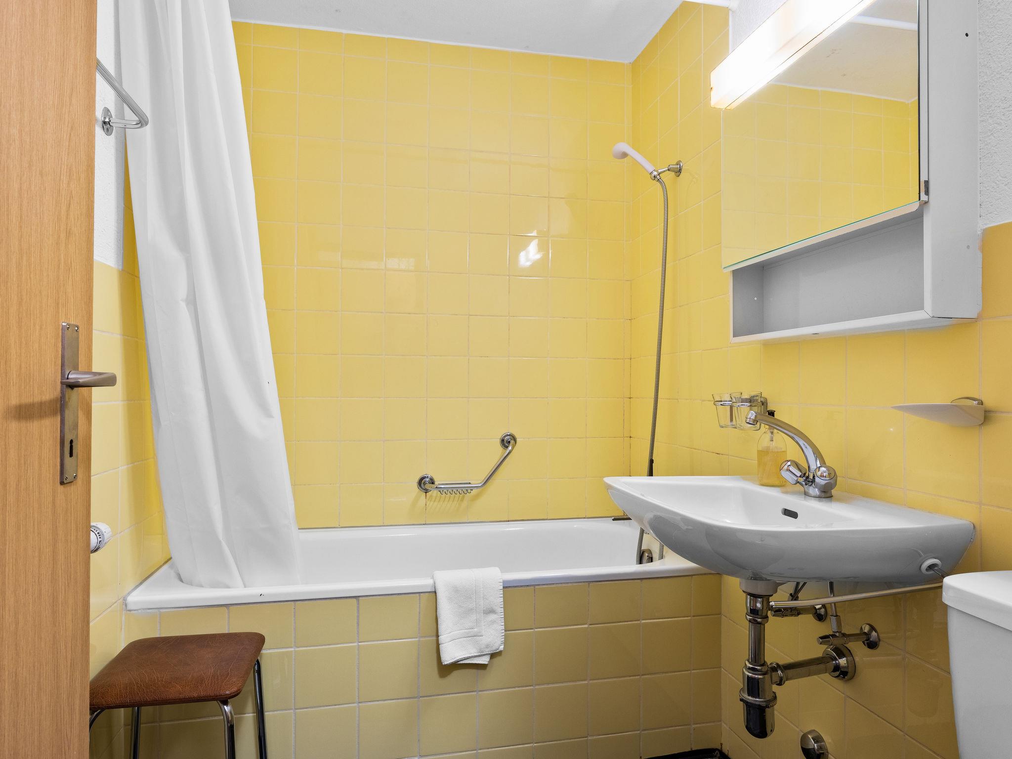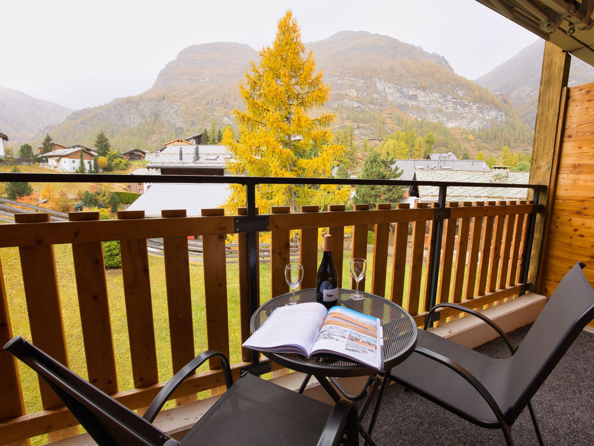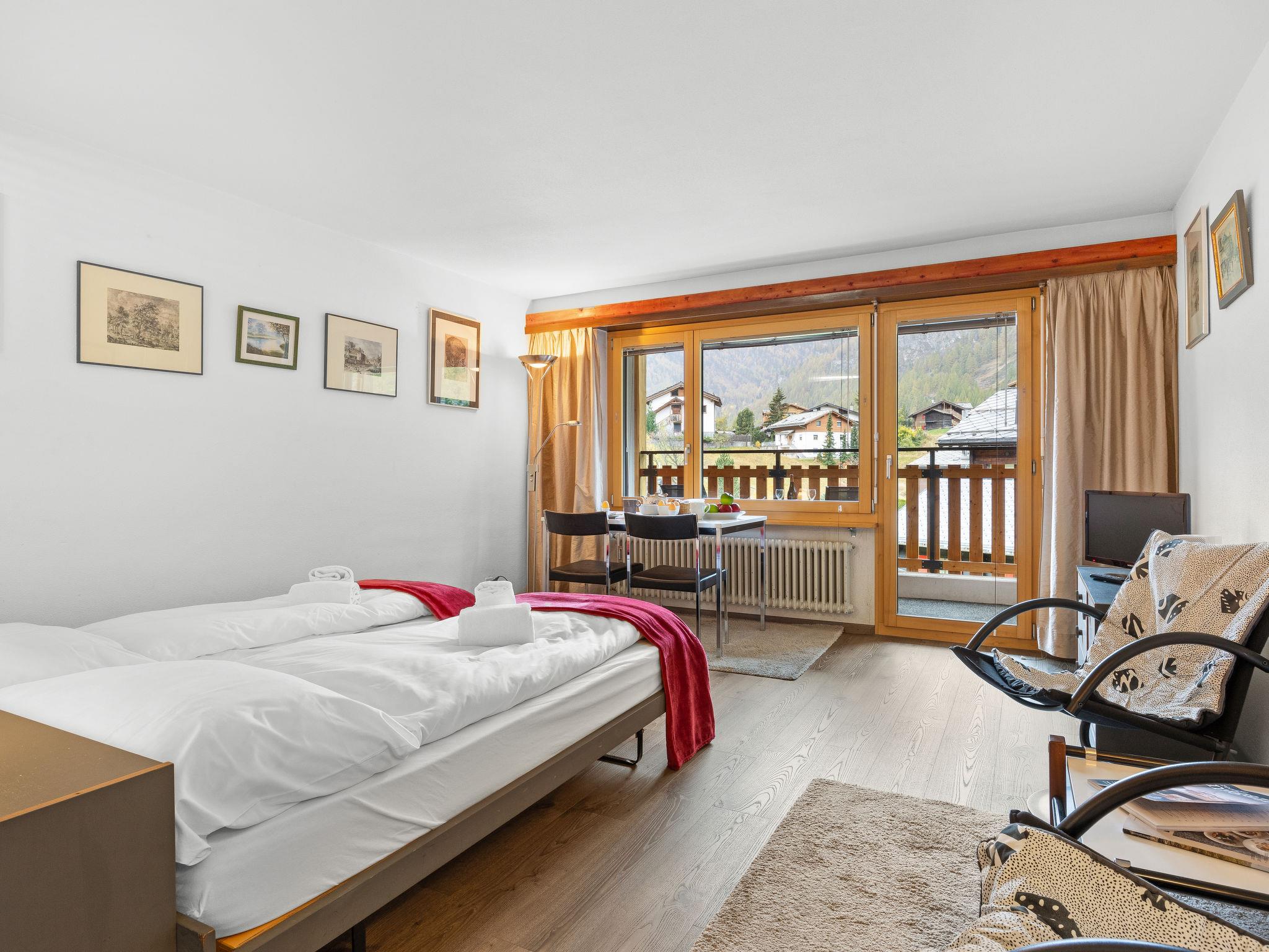 1-Zimmer-Studio 40 m2 im 2. Stock, Südlage. Hell, einfach und komfortabel eingerichtet: Wohn-/Schlafzimmer mit 2 Betten (90 cm, Länge 200 cm), Esstisch und TV. Ausgang zum Balkon, Richtung Süden. Kleine Küche (3 Kochplatten, Backofen, Toaster, Wasserkocher, Mikrowelle, Tiefkühler, elektrische Kaffeemaschine, Racletteofen, Fondue Set (Käse)). Bad/WC. Balkon. Balkonmöbel. Schöne Sicht auf Matterhorn. Zur Verfügung: Haartrockner. Internet (Wireless LAN, gratis). Bitte beachten: Nichtraucher-Unterkunft.
