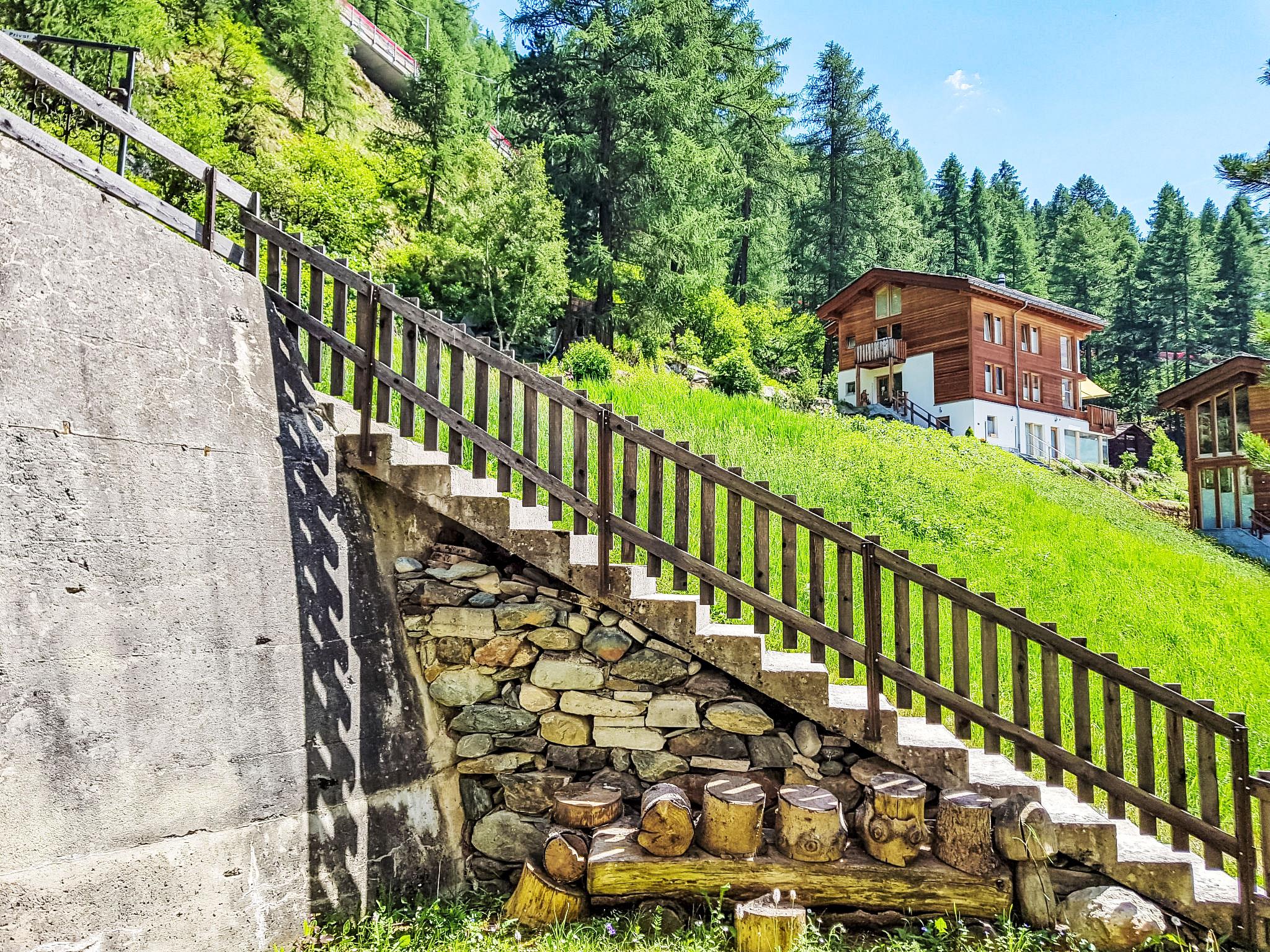 1-Zimmer-Wohnung 40 m2, im erhöhten Erdgeschoss. Einfach und komfortabel eingerichtet: Wohn-/Schlafzimmer mit 2 Wandklappbetten (90 cm, Länge 200 cm), Esstisch und TV. Ausgang zum Balkon. Küche (3 Kochplatten, Backofen, Toaster, Wasserkocher, Tiefkühler, elektrische Kaffeemaschine). Bad/WC. Balkon 8 m2, Südlage. Balkonmöbel. Eingeschränkte Sicht auf die Berge und das Matterhorn. Zur Verfügung: Haartrockner. Internet (WLAN, gratis). Bitte beachten: Nichtraucher-Unterkunft. Maximal 1 Haustier/Hund erlaubt. Die Sicht auf das Matterhorn, wird durch 2 Bäume behindert.