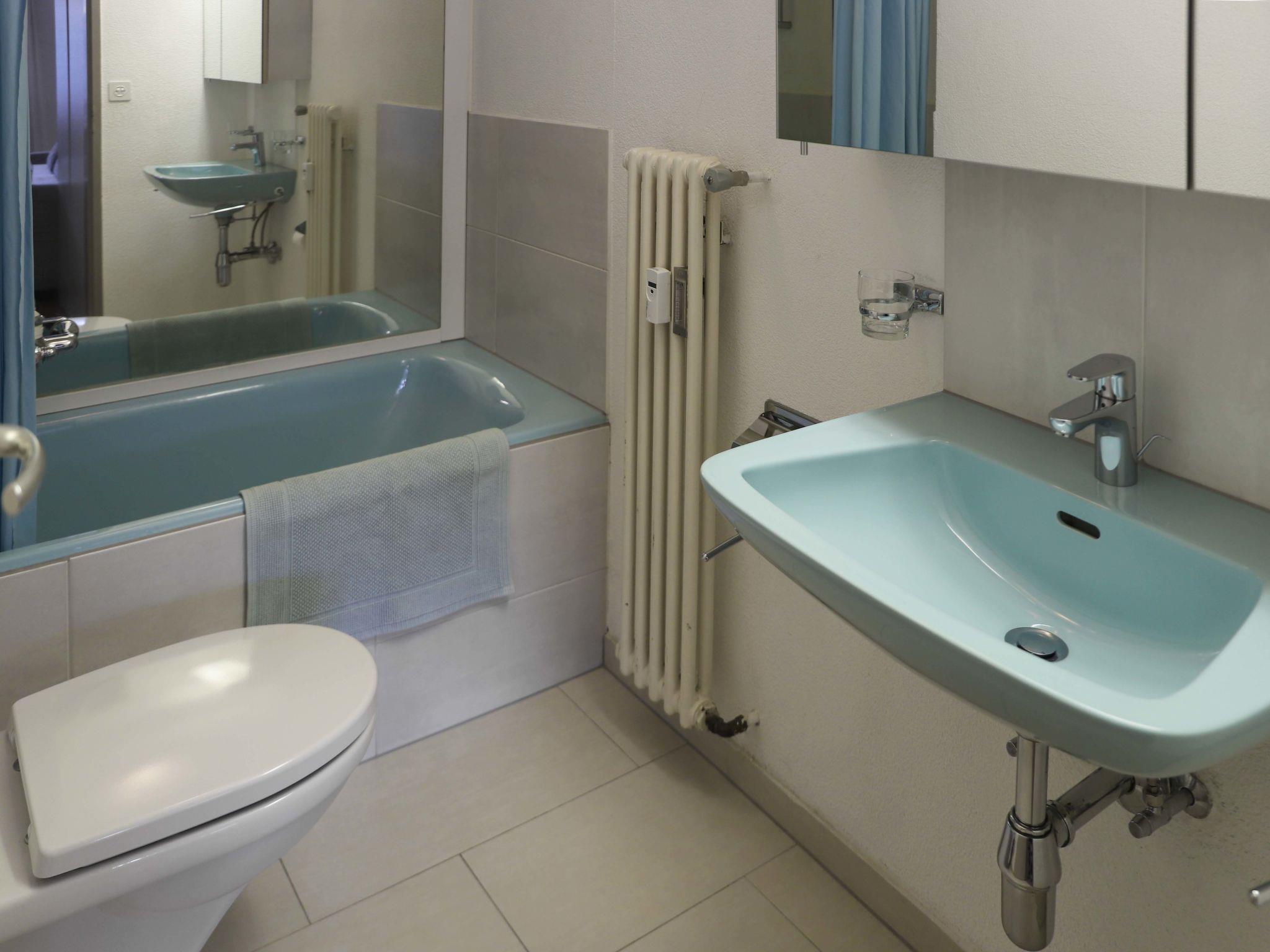 1-Zimmer-Wohnung 25 m2 im 4. Stock, Südlage. Teilweise renoviert im Jahre 2021, einfach und gemütlich eingerichtet: Wohn-/Schlafzimmer mit 1 Diwanbett (140 cm, Länge 200 cm), Esstisch und TV. Ausgang zum Balkon. Küche (3 Kochplatten, Backofen, Toaster, Wasserkocher, Tiefkühler, elektrische Kaffeemaschine, Racletteofen, Fondue Set (Chinoise)). Bad/WC. Balkon, Südlage. Balkonmöbel. Schöne Sicht auf das Matterhorn. Zur Verfügung: Haartrockner. Internet (Wireless LAN, gratis). Bitte beachten: Nichtraucher-Unterkunft.