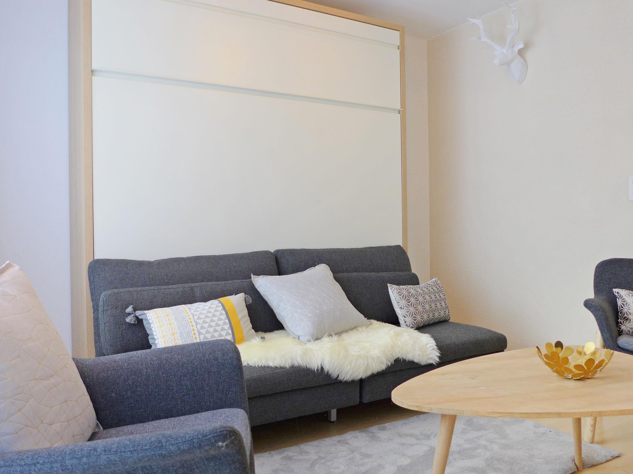 2-Zimmer-Wohnung 49 m2, im Erdgeschoss. Hell, renoviert im Jahre 2019, schön und modern eingerichtet: Wohn-/Schlafzimmer mit 1 Doppelwandschrankbett (2 x 90 cm, Länge 180 cm), Esstisch und TV. Ausgang zur Terrasse, Richtung Süden. 1 Doppelzimmer mit 1 Doppelbett (1 x 160 cm, Länge 200 cm). Offene Küche (Backofen, Geschirrspüler, 4 Glaskeramikplatten, Toaster, Wasserkocher, Mikrowelle, Tiefkühler, elektrische Kaffeemaschine) mit Esstisch. Dusche/WC. Heizung. Terrasse, Südlage. Eingeschränkte Sicht auf das Matterhorn. Zur Verfügung: Haartrockner. Internet (Wireless LAN, gratis). Bitte beachten: Nichtraucher-Unterkunft.