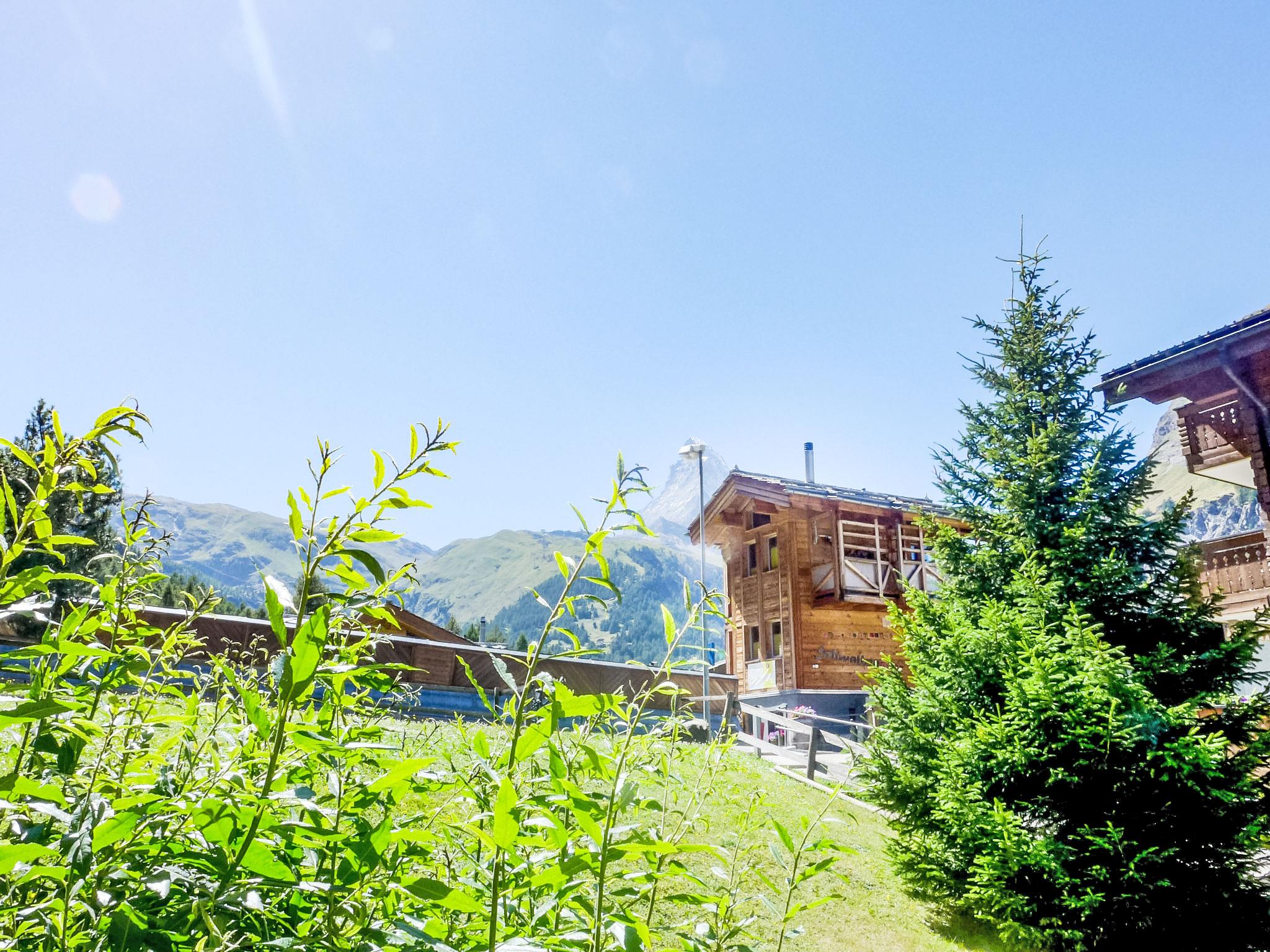 2-Zimmer-Wohnung 70 m2, im Erdgeschoss. Einfach und gemütlich eingerichtet: Wohn-/Esszimmer mit 1 Doppeldiwanbett (1 x 140 cm, Länge 200 cm), Essecke und TV. Ausgang zur Terrasse. 1 Doppelzimmer mit 1 Doppelbett (2 x 90 cm, Länge 200 cm). Küche (3 Kochplatten, Backofen, Geschirrspüler, Toaster, Wasserkocher, Tiefkühler, elektrische Kaffeemaschine, Racletteofen, Fondue Set (Käse)) mit Durchreiche. Bad/WC. Bodenheizung. Terrasse 20 m2, Südlage. Terrassenmöbel. Sicht auf das Matterhorn. Zur Verfügung: Haartrockner. Internet (Wireless LAN, gratis). Bitte beachten: Nichtraucher-Unterkunft.