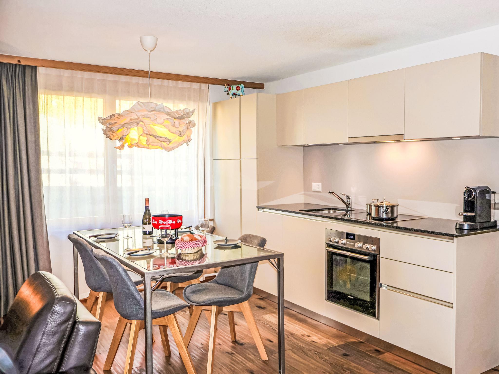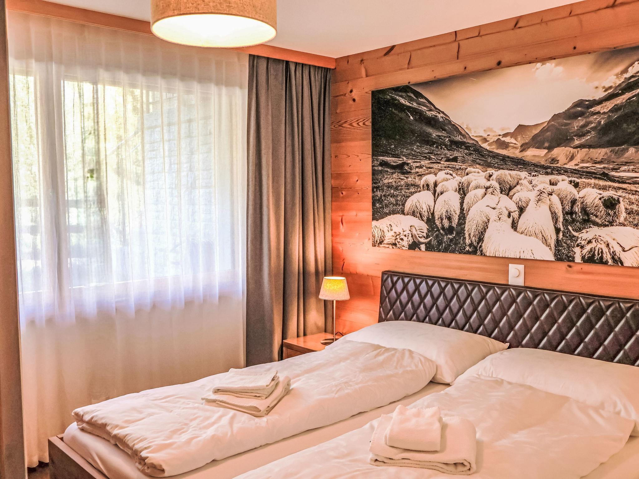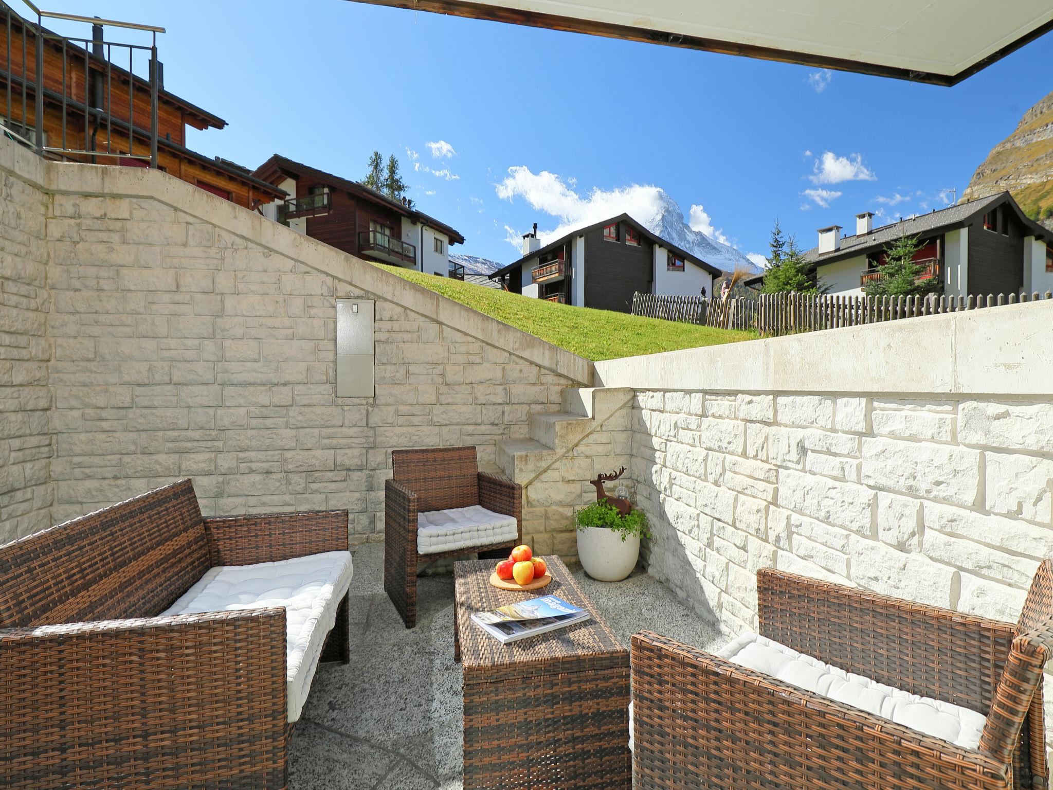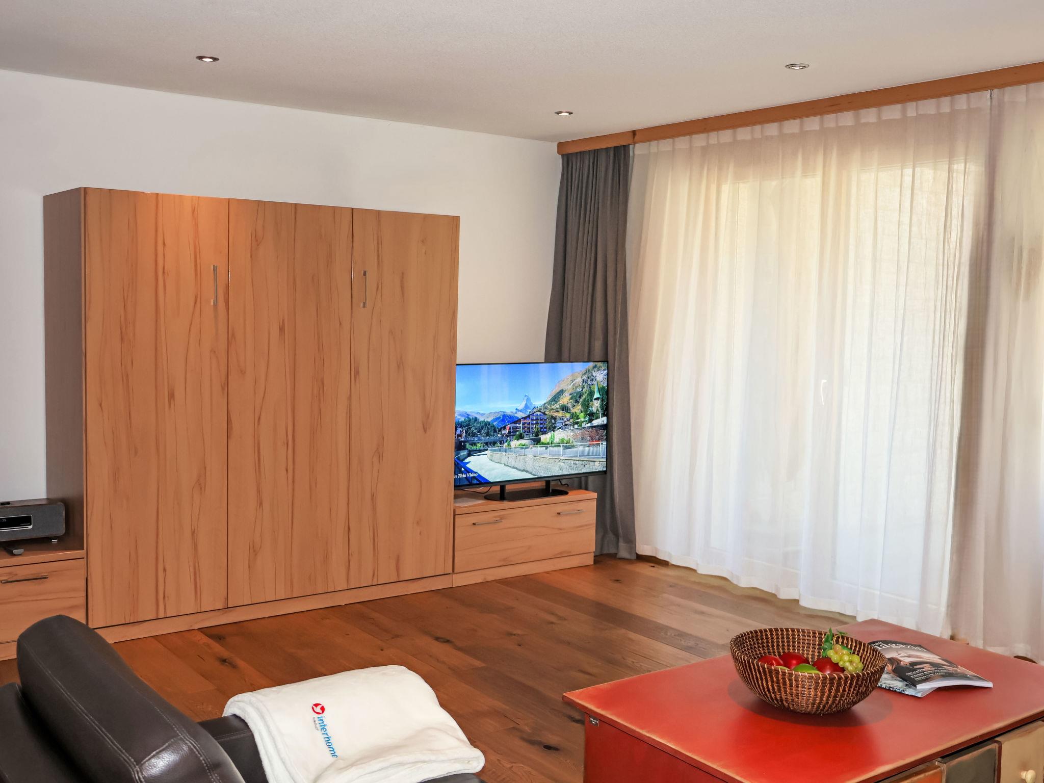 "Haus Findelbach / Apt. Happy Lily", 2-Zimmer-Wohnung 70 m2, unteres Geschoss, Südwestlage. Geräumig und hell, schön und modern eingerichtet: Wohn-/Schlafzimmer mit 1 Doppelwandschrankbett (2 x 90 cm, Länge 200 cm), Flachbildschirm, Radio und DVD. Ausgang zur Terrasse, Richtung Süden. 1 Zimmer mit 1 Doppelbett (2 x 90 cm, Länge 200 cm). Offene Küche (Backofen, Geschirrspüler, 4 Glaskeramikplatten, Toaster, Wasserkocher, Tiefkühler, elektrische Kaffeemaschine, Fondue Set (Käse)) mit Esstisch. Dusche/WC, Hydromassage-Dusche. Fussbodenheizung. Parkettboden. Terrasse, Südlage. Terrassenmöbel, Gartengrill. Schöne Sicht auf das Matterhorn. Zur Verfügung: Haartrockner. Internet (Wireless LAN). Bitte beachten: Nichtraucher-Unterkunft. CH3920.75.2