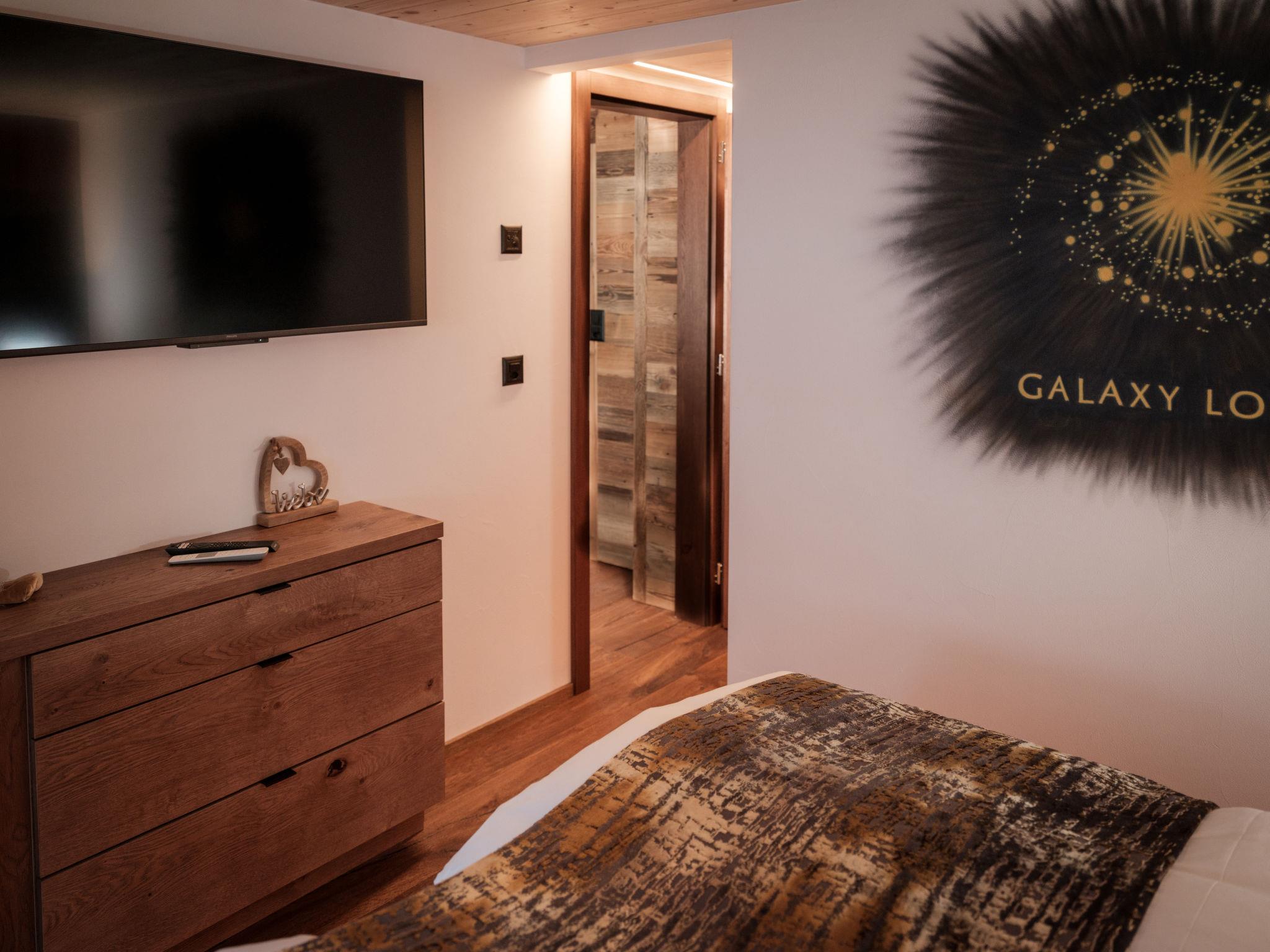 "Galaxy Lodge", 3-Zimmer-Wohnung 52 m2 auf 2 Stockwerken im 1. Stock, Ostlage. Vollständig renoviert im Jahre 2023, schön und modern eingerichtet: Wohnzimmer mit 1 Doppeldiwanbett (160 cm, Länge 200 cm), TV. Ausgang zum Balkon. 1 Zimmer mit 1 Doppelbett (1 x 180 cm, Länge 200 cm). Küche (Backofen, Geschirrspüler, 4 Glaskeramikplatten, Toaster, Wasserkocher, Tiefkühler, elektrische Kaffeemaschine). Dusche/WC. Heizung. Obergeschoss: 1 Zimmer mit 1 Doppelbett (1 x 180 cm, Länge 200 cm). Kleiner Balkon, Westlage. Eingeschränkte Sicht auf die Berge. Zur Verfügung: Haartrockner. Internet (Wireless LAN, gratis). Bitte beachten: Nichtraucher-Unterkunft.