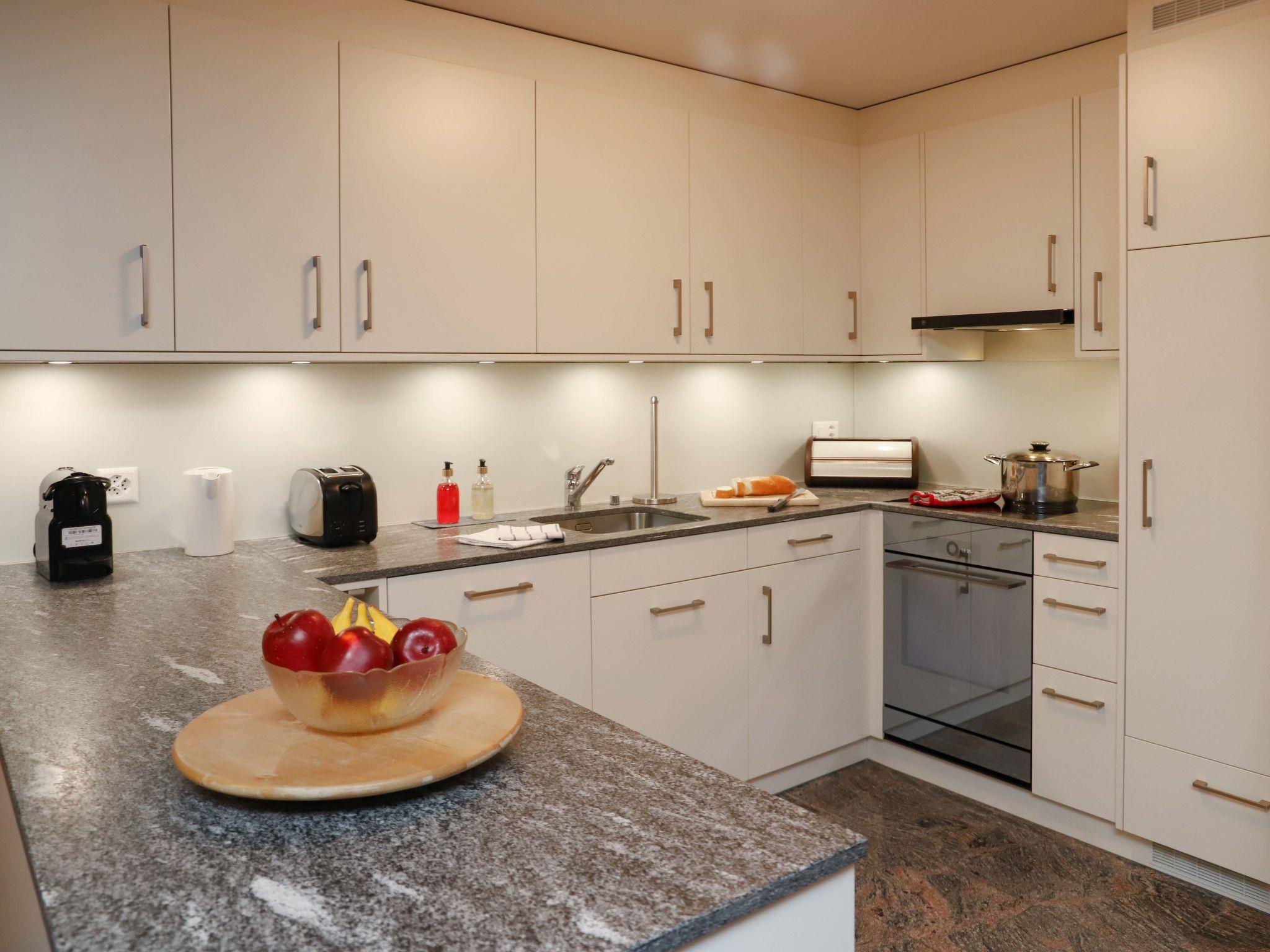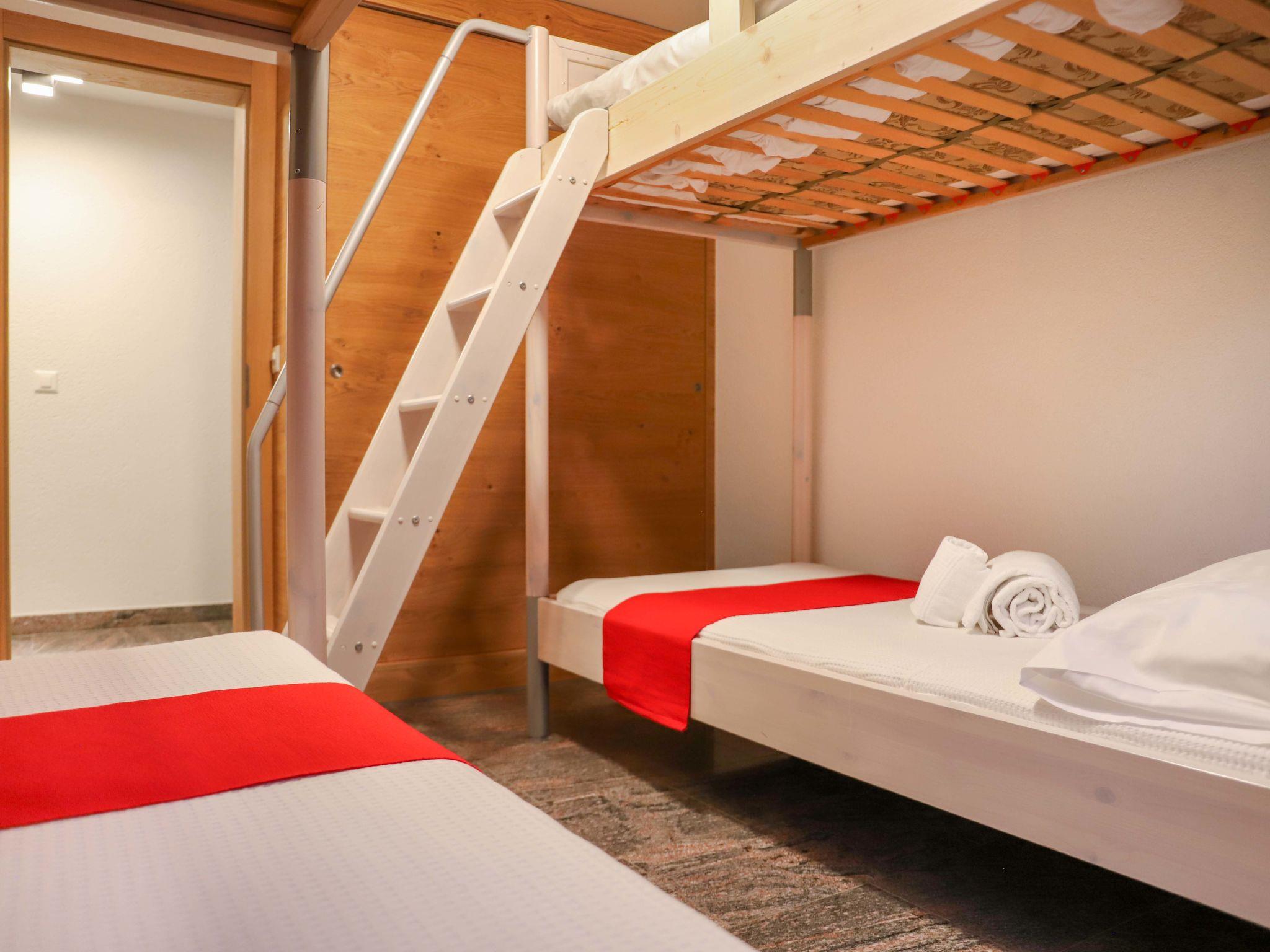 3-Zimmer-Wohnung 100 m2, im Erdgeschoss. Renoviert im Jahre 2021, einfach und komfortabel eingerichtet: Wohn-/Esszimmer mit Esstisch und TV. Ausgang zur Terrasse. 1 Zimmer mit 2 x 2 Etagenbetten (90 cm, Länge 200 cm). 1 Doppelzimmer mit 1 Doppelbett (1 x 140 cm, Länge 200 cm). Offene Küche (Backofen, Geschirrspüler, 4 Glaskeramikplatten, Toaster, Wasserkocher, Tiefkühler, elektrische Kaffeemaschine, Fondue Set (Käse)). Dusche/WC. Heizung. Terrasse. Terrassenmöbel. Sicht auf die Berge. Zur Verfügung: Internet (Wireless LAN, gratis). Bitte beachten: Nichtraucher-Unterkunft.