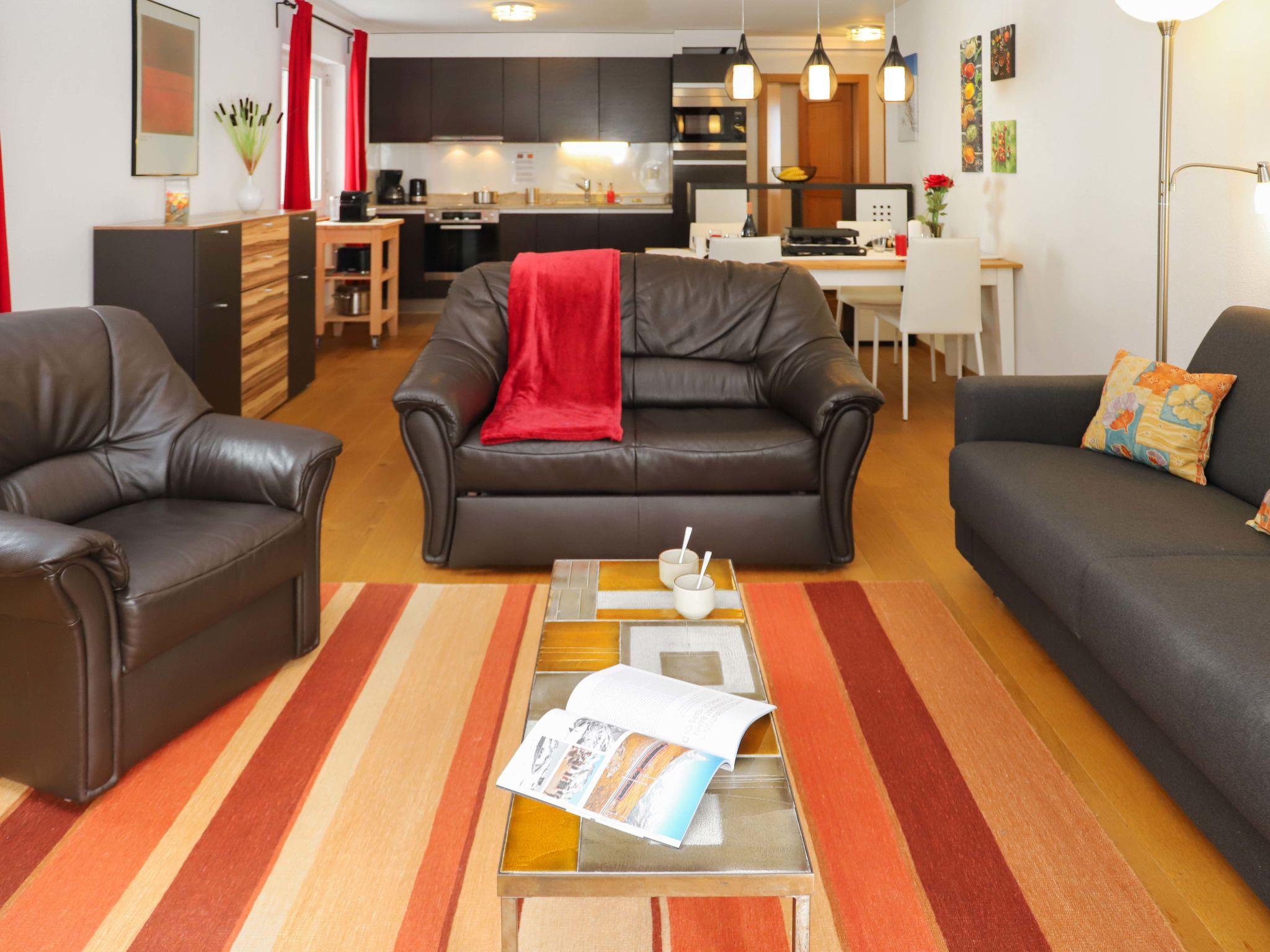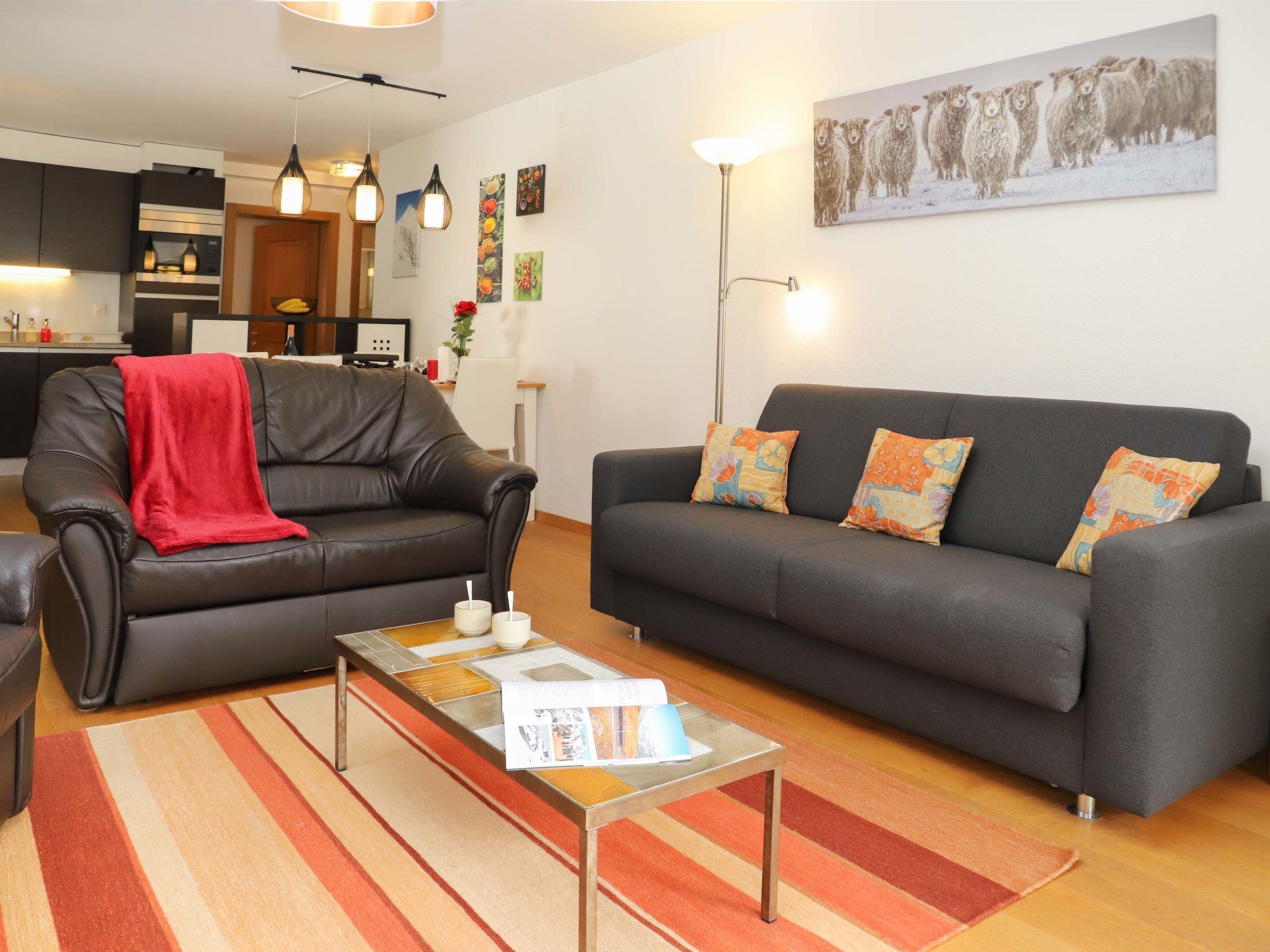3-Zimmer-Wohnung 82 m2 im 3. Stock, Südwestlage. Hell, komfortabel und gemütlich eingerichtet: Wohn-/Esszimmer mit Essecke, TV, Stereoanlage und DVD. Ausgang zum Balkon, Richtung Süden und Richtung Westen. 1 Doppelzimmer mit 2 Betten (90 cm, Länge 200 cm). 1 Doppelzimmer mit 1 Doppelbett (140 cm, Länge 200 cm). Offene Küche (Backofen, Geschirrspüler, 4 Glaskeramikplatten, Toaster, Wasserkocher, Tiefkühler, elektrische Kaffeemaschine, Racletteofen, Kombinationsmikrowelle, Fondue Set (Chinoise, Käse)). Bad/WC. Balkon, Südlage und Westlage. Balkonmöbel. Sehr schöne Sicht auf das Matterhorn. Zur Verfügung: Haartrockner. Internet (Wireless LAN, gratis). Bitte beachten: Nichtraucher-Unterkunft.